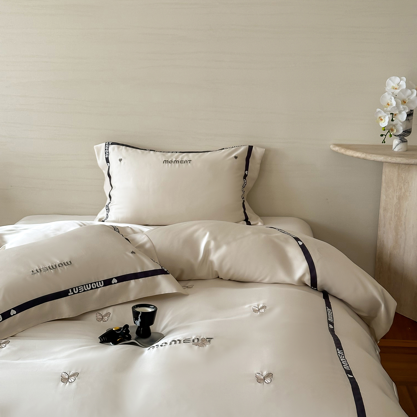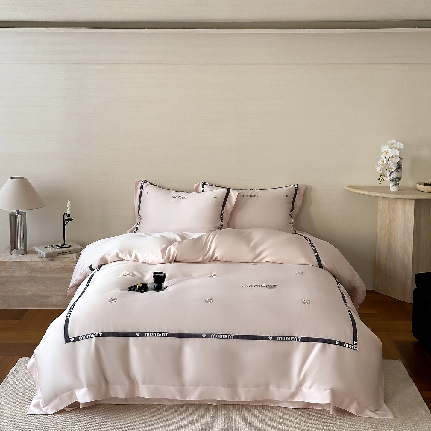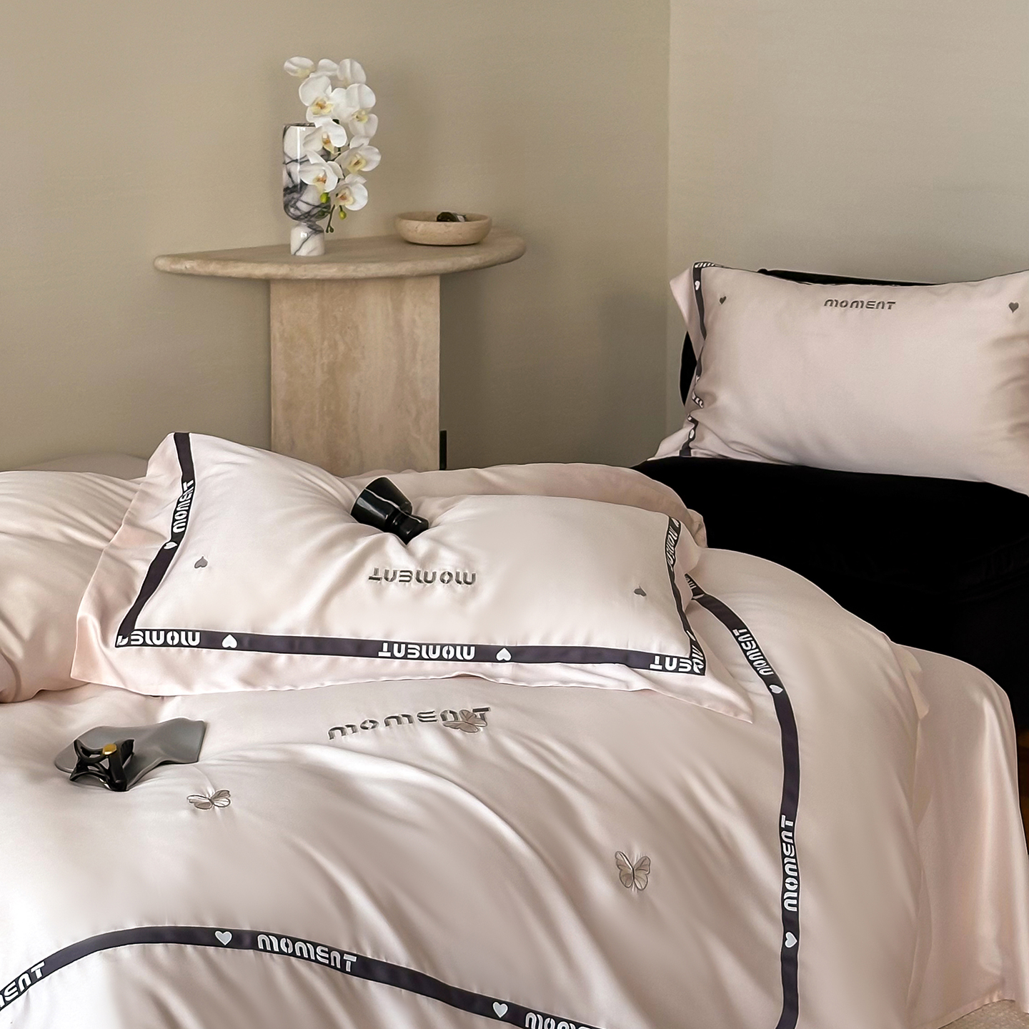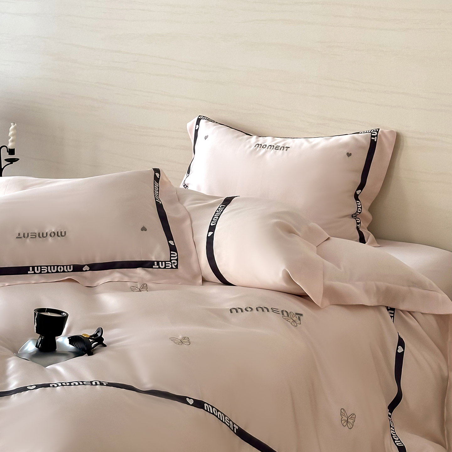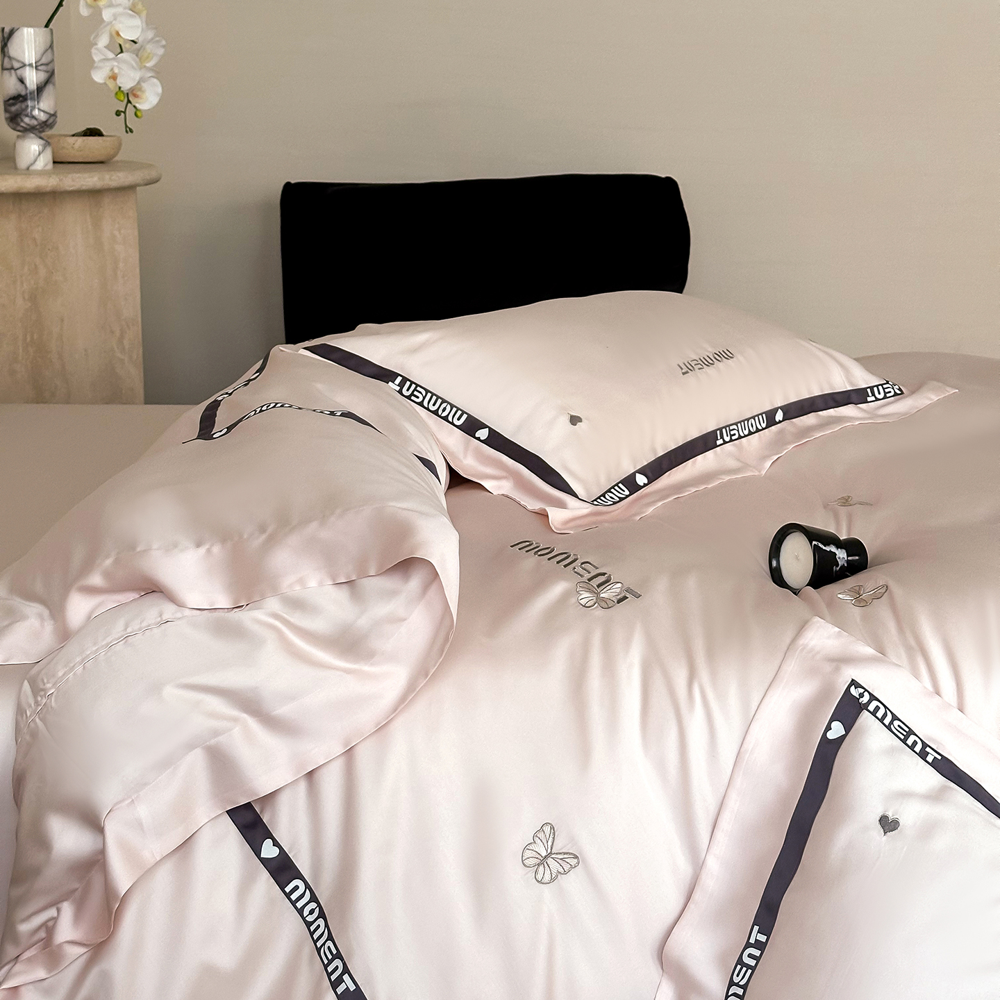 60S奥地利进口兰精天丝绣花黑边四件套