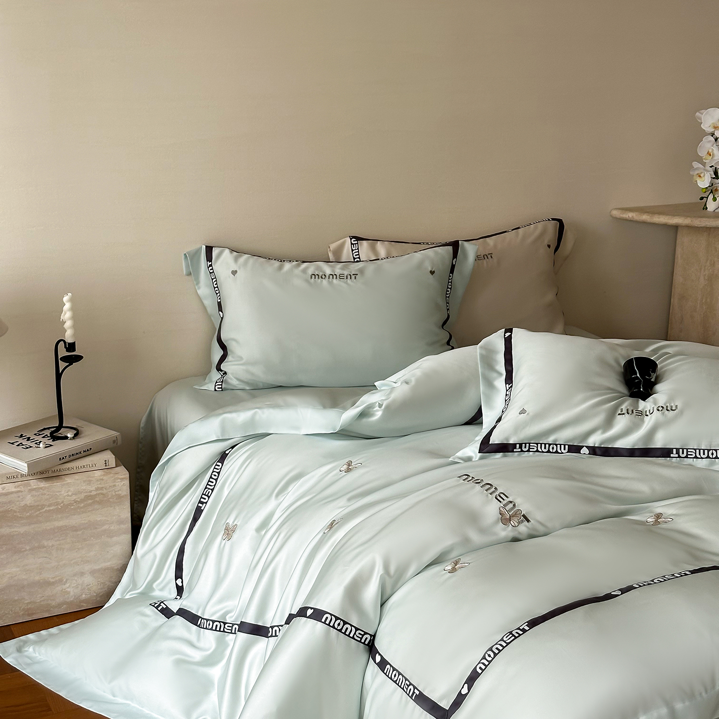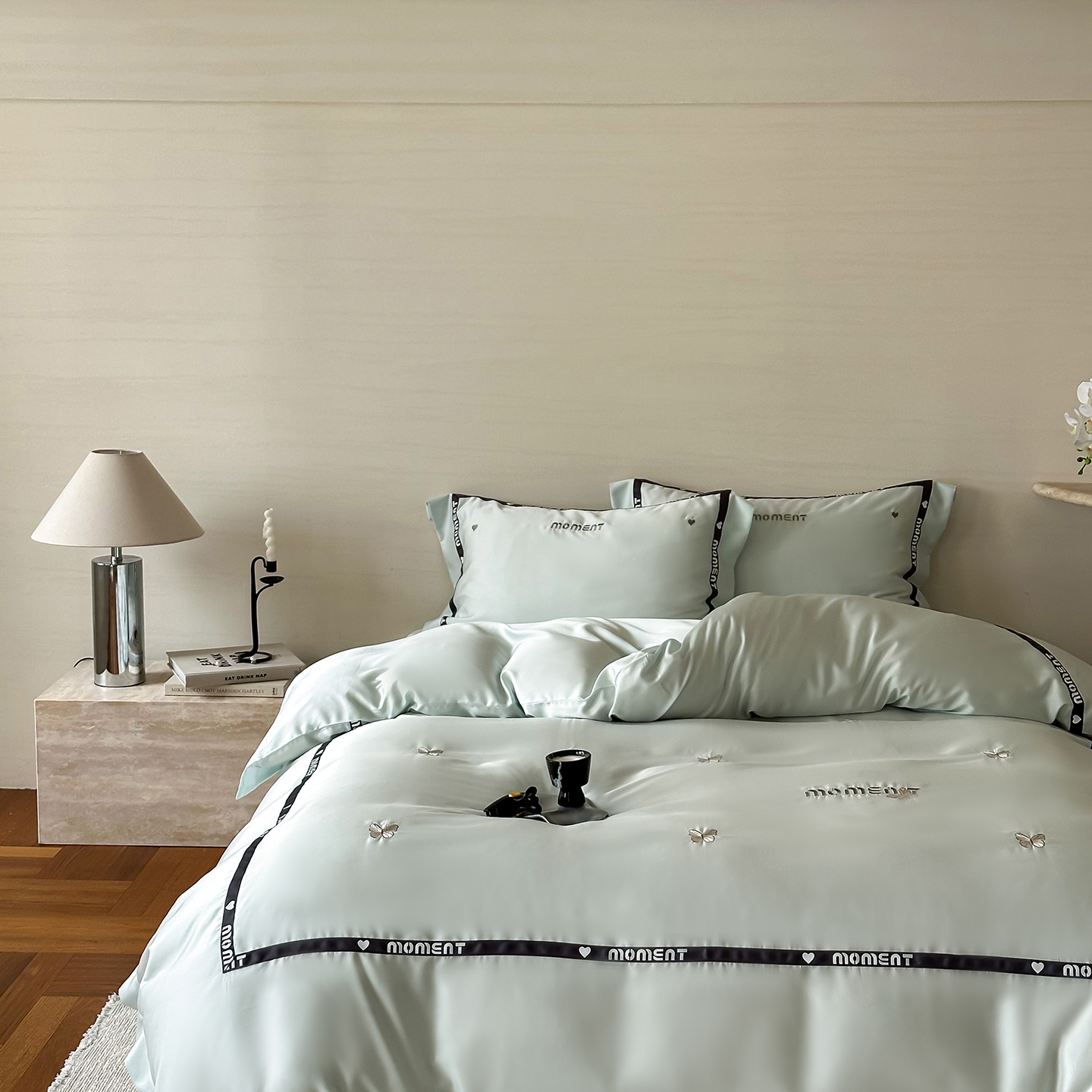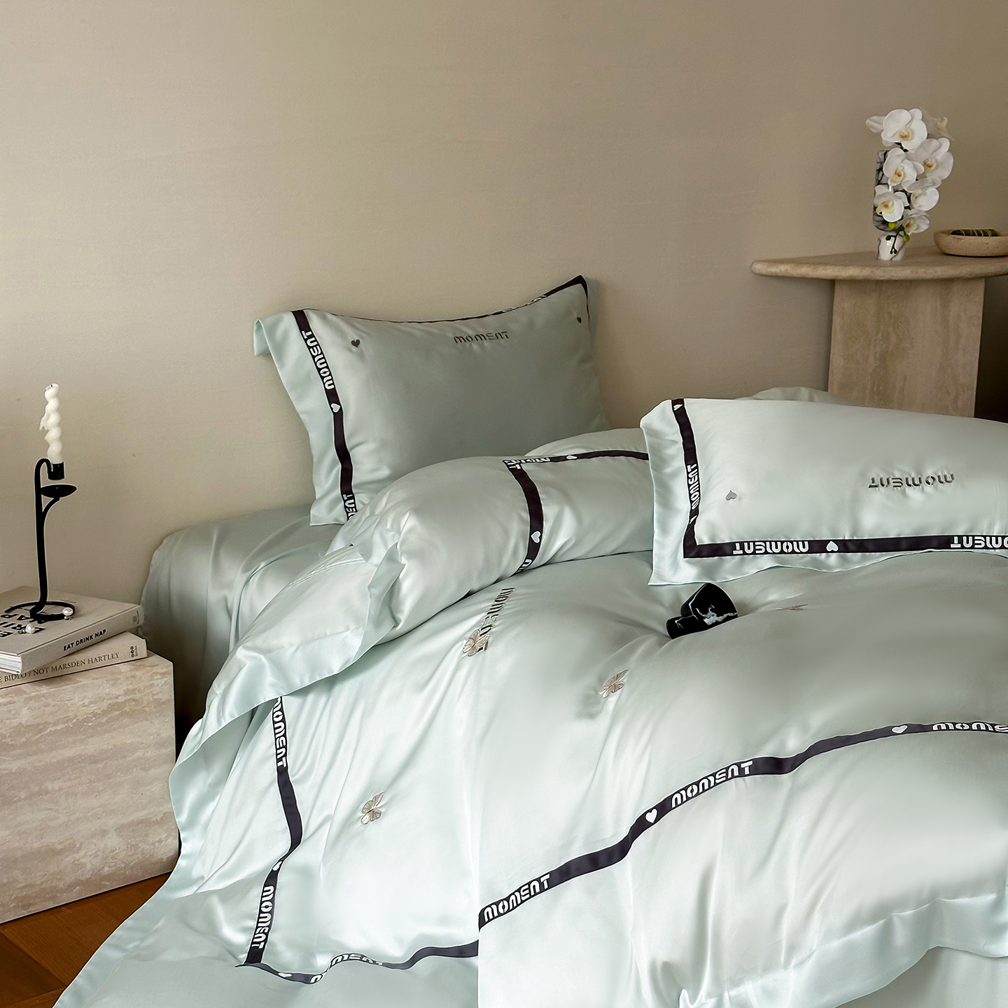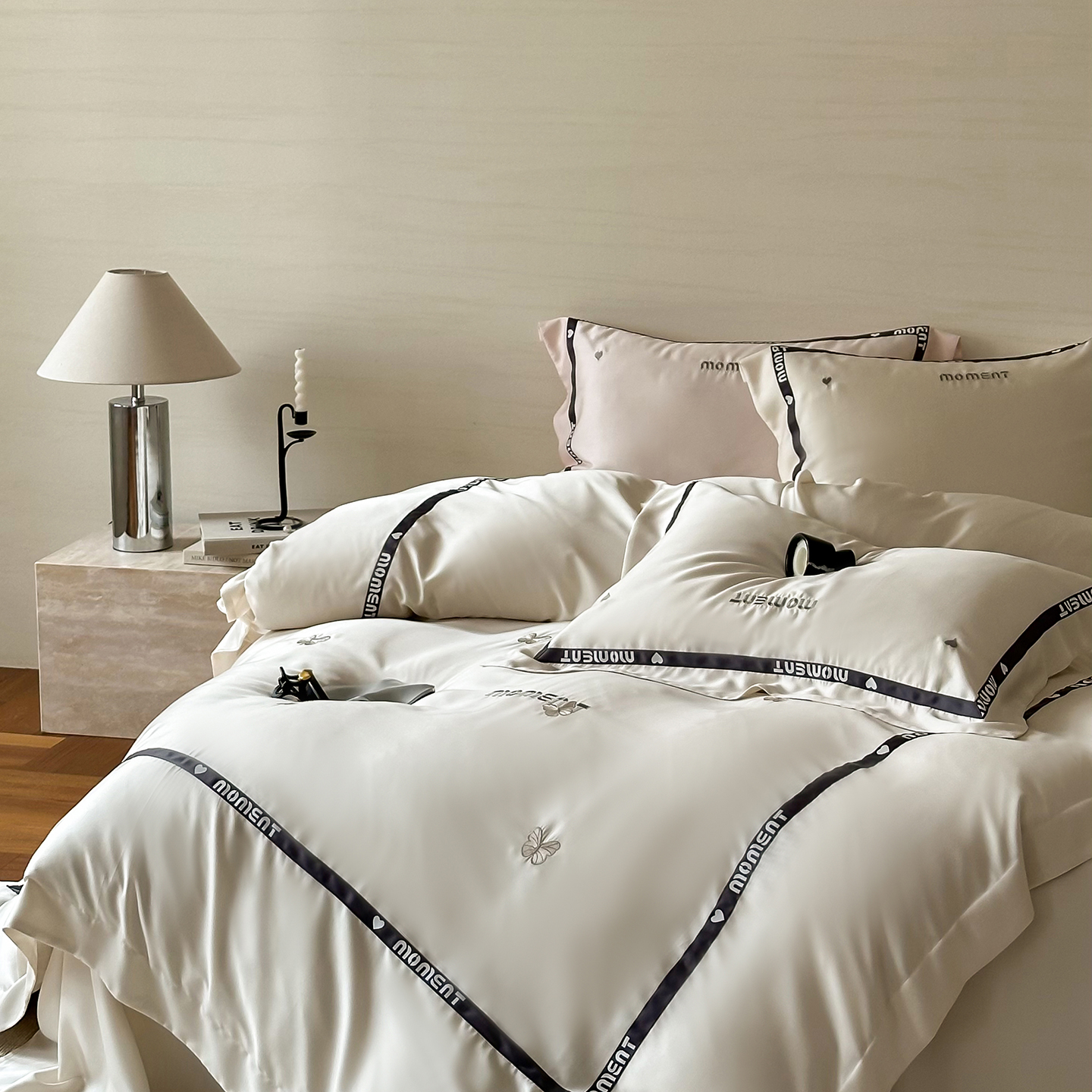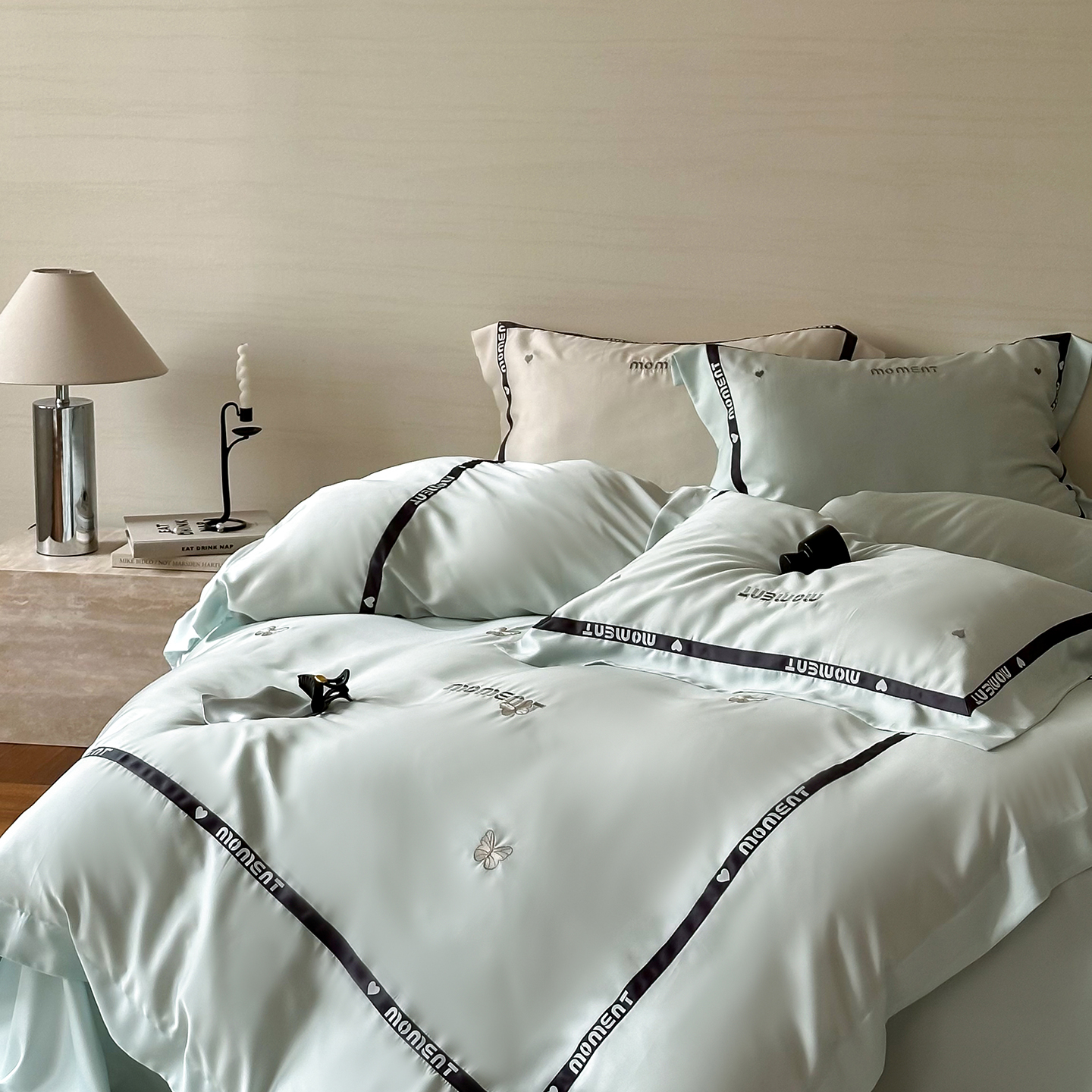 60S奥地利进口兰精天丝绣花黑边四件套