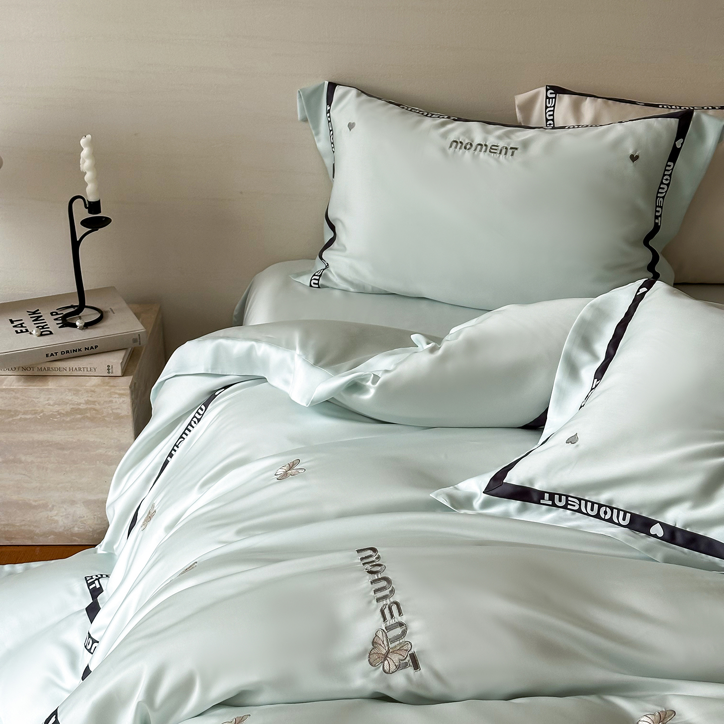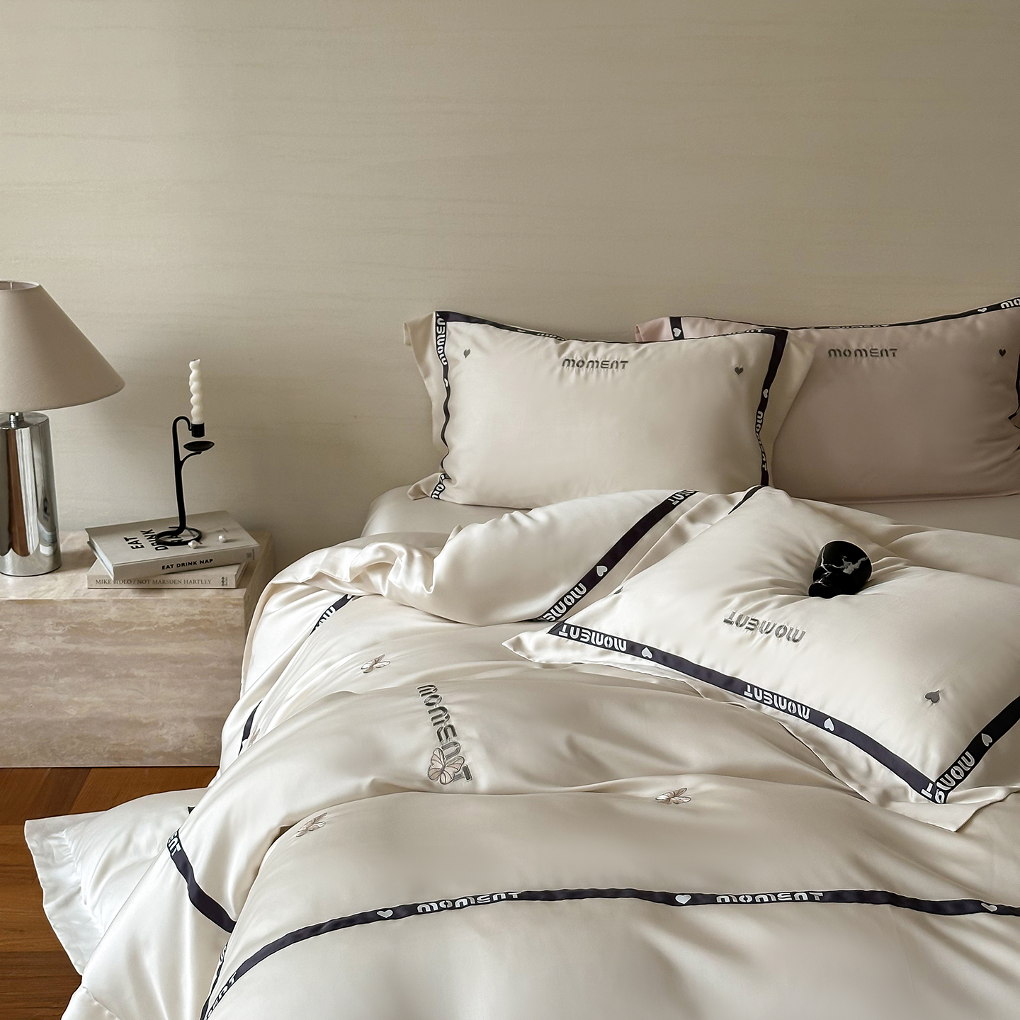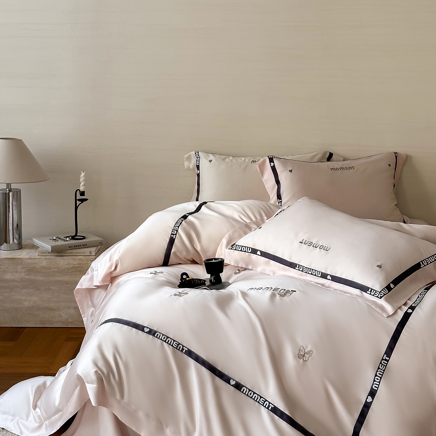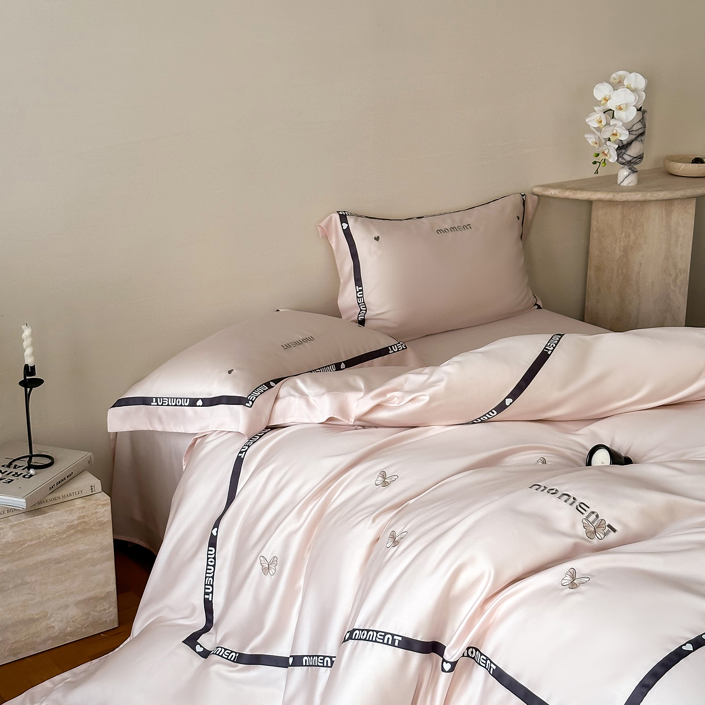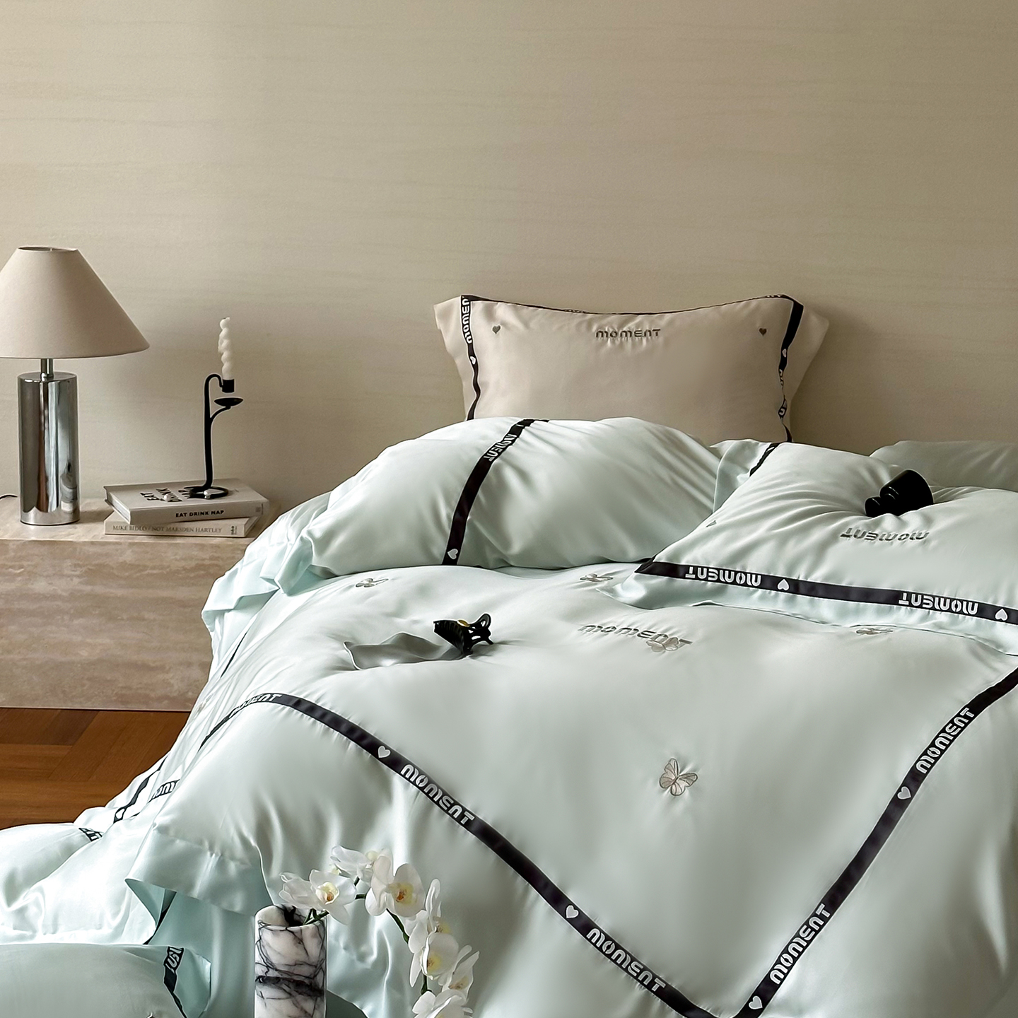 60S奥地利进口兰精天丝绣花黑边四件套