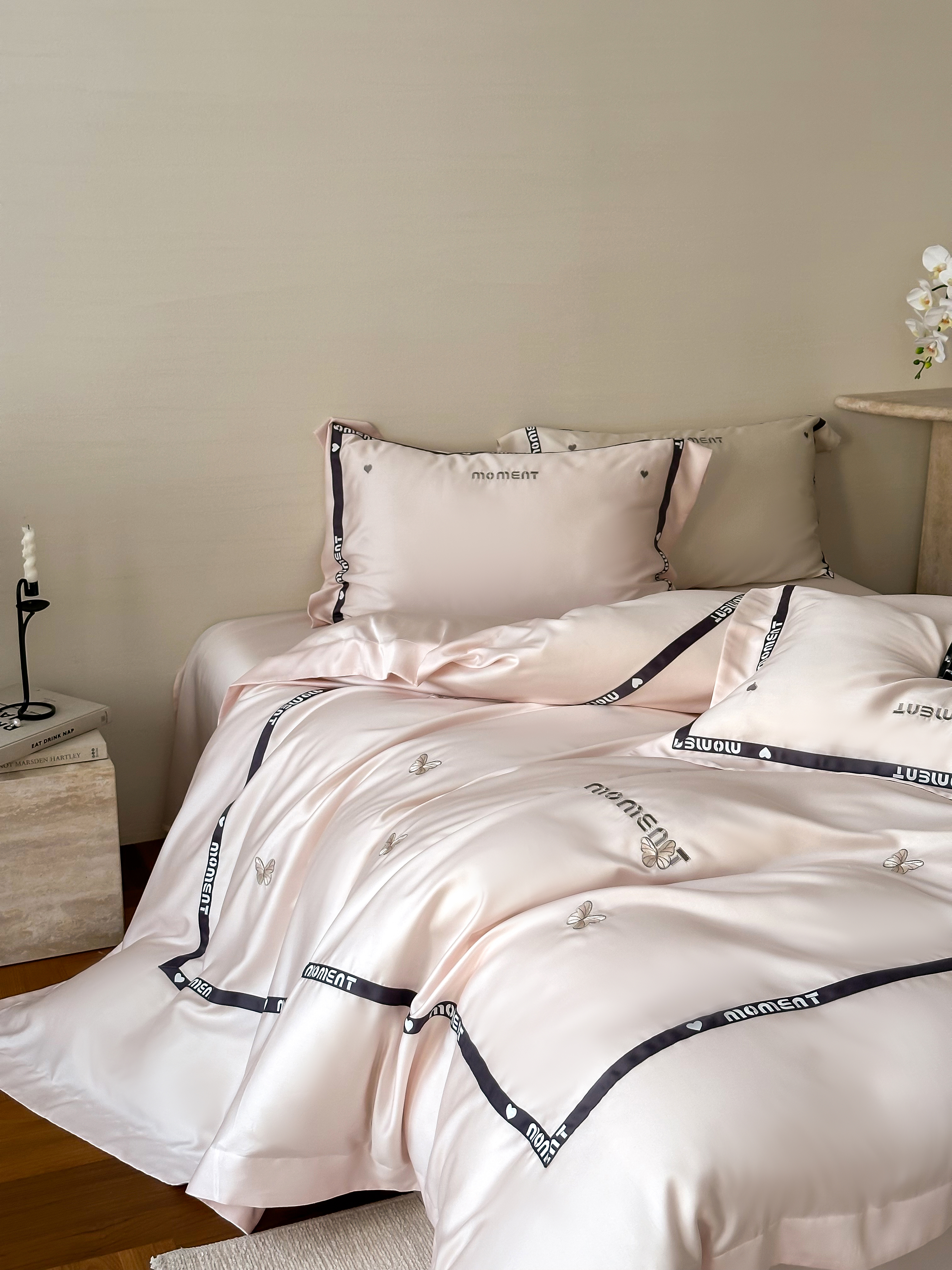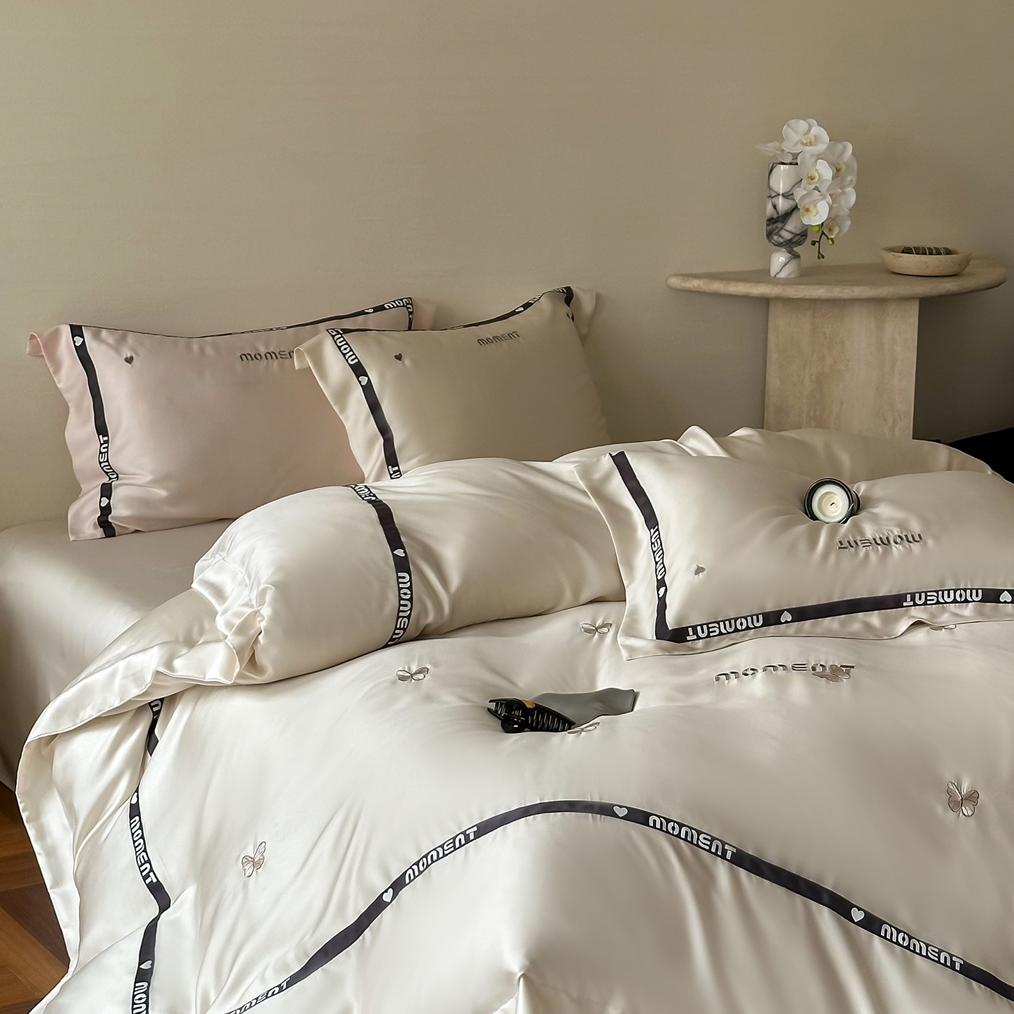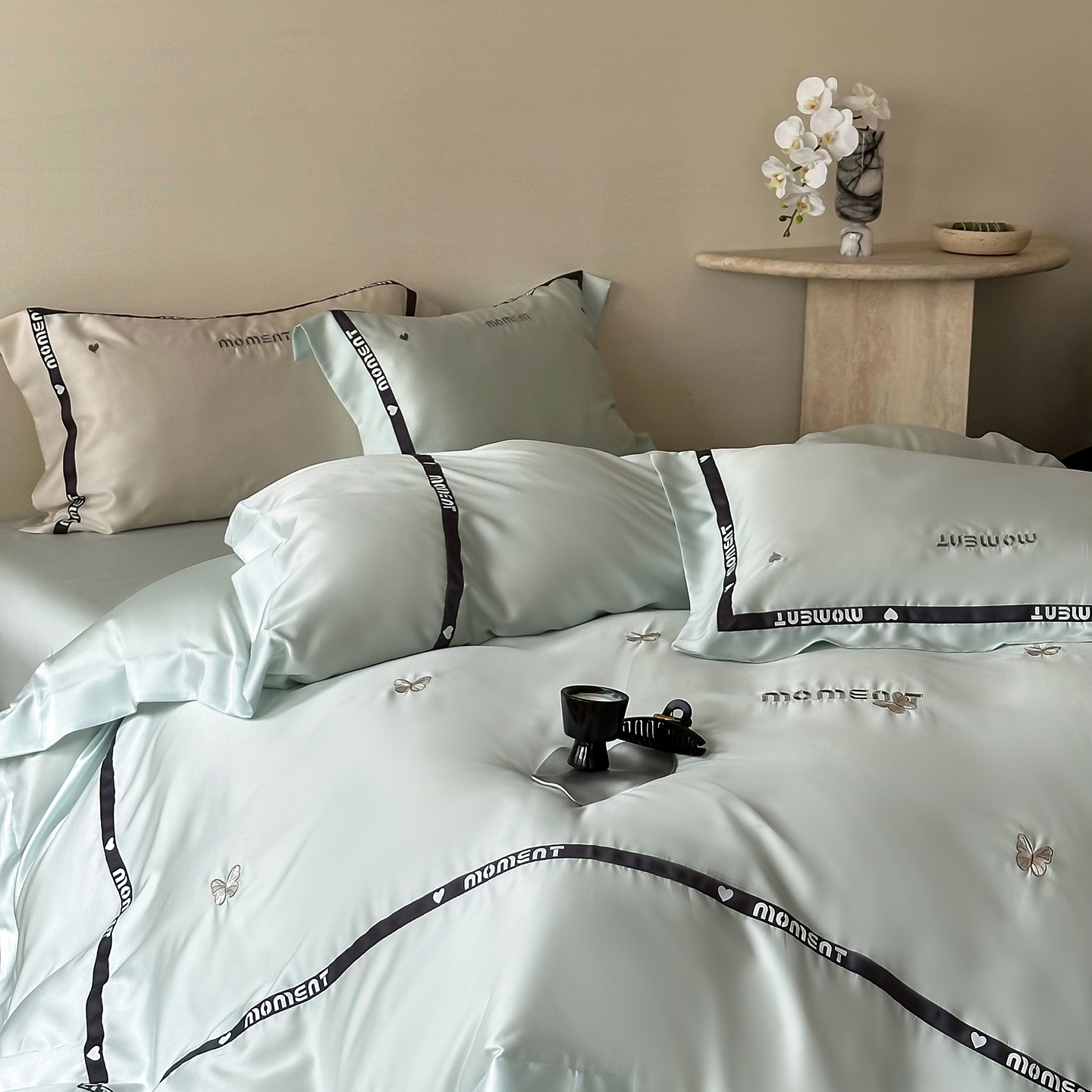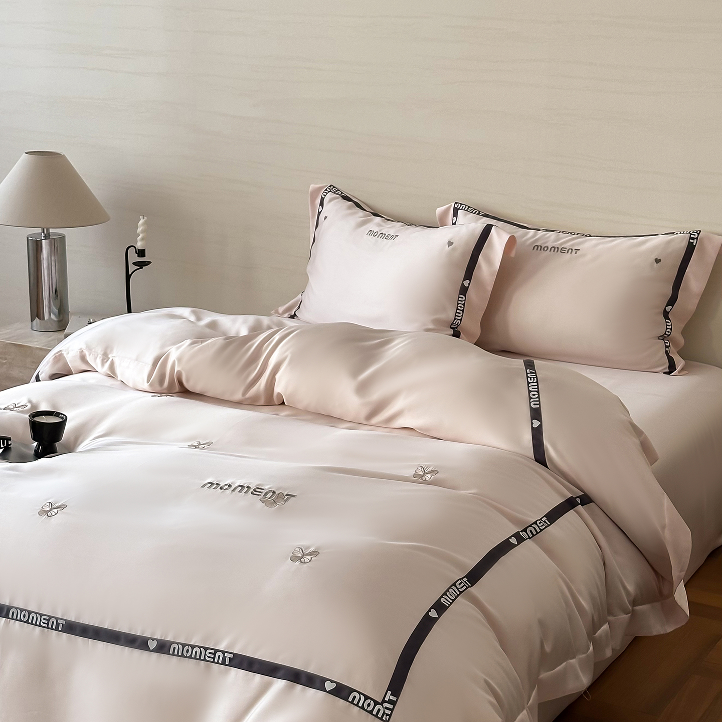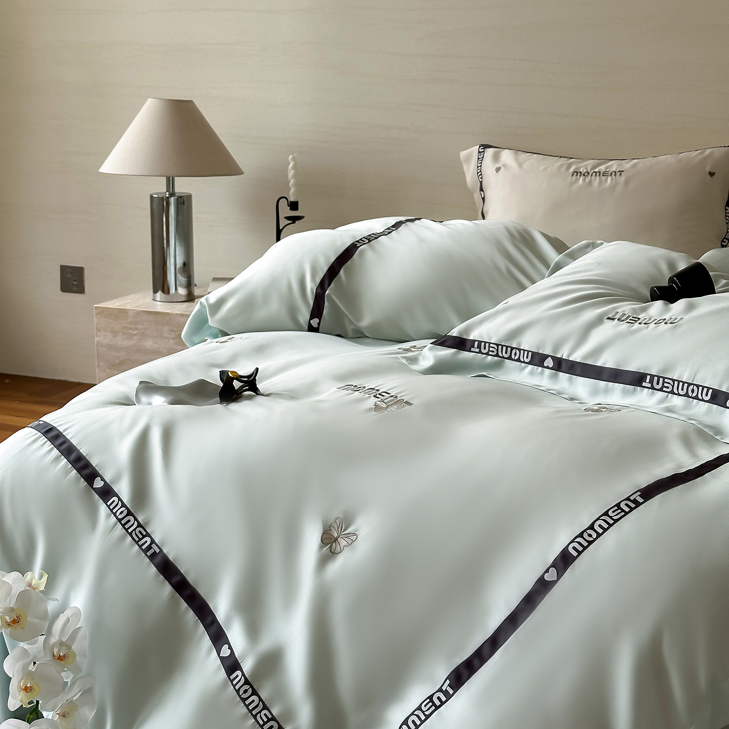 100%莱赛尔纤维,源自自然的纯净纤维,触感丝滑如绸,却又比丝绸更加透气吸湿。每一寸面料,都经过精心挑选与织造,只为给你最细腻的呵护。