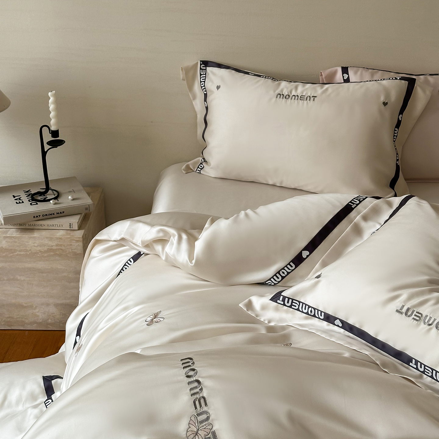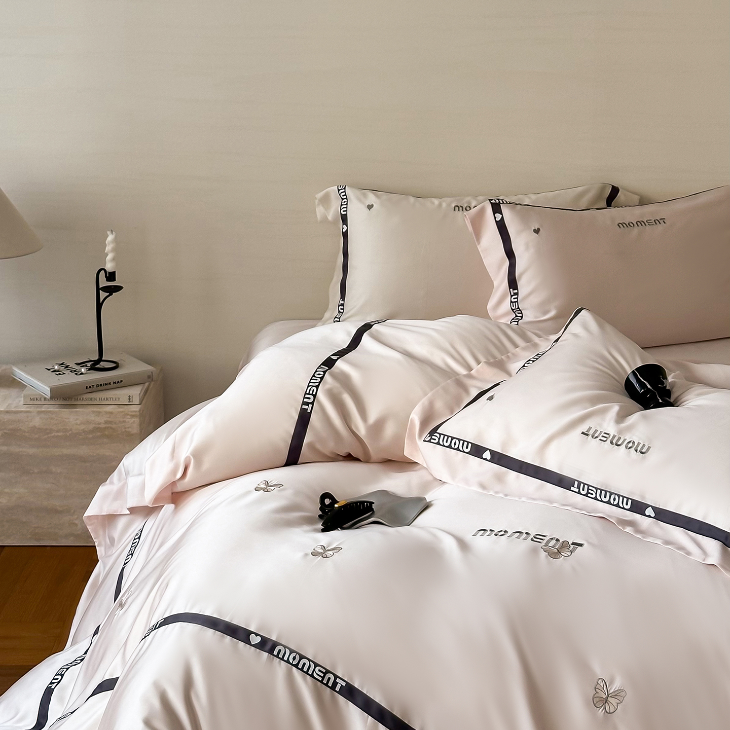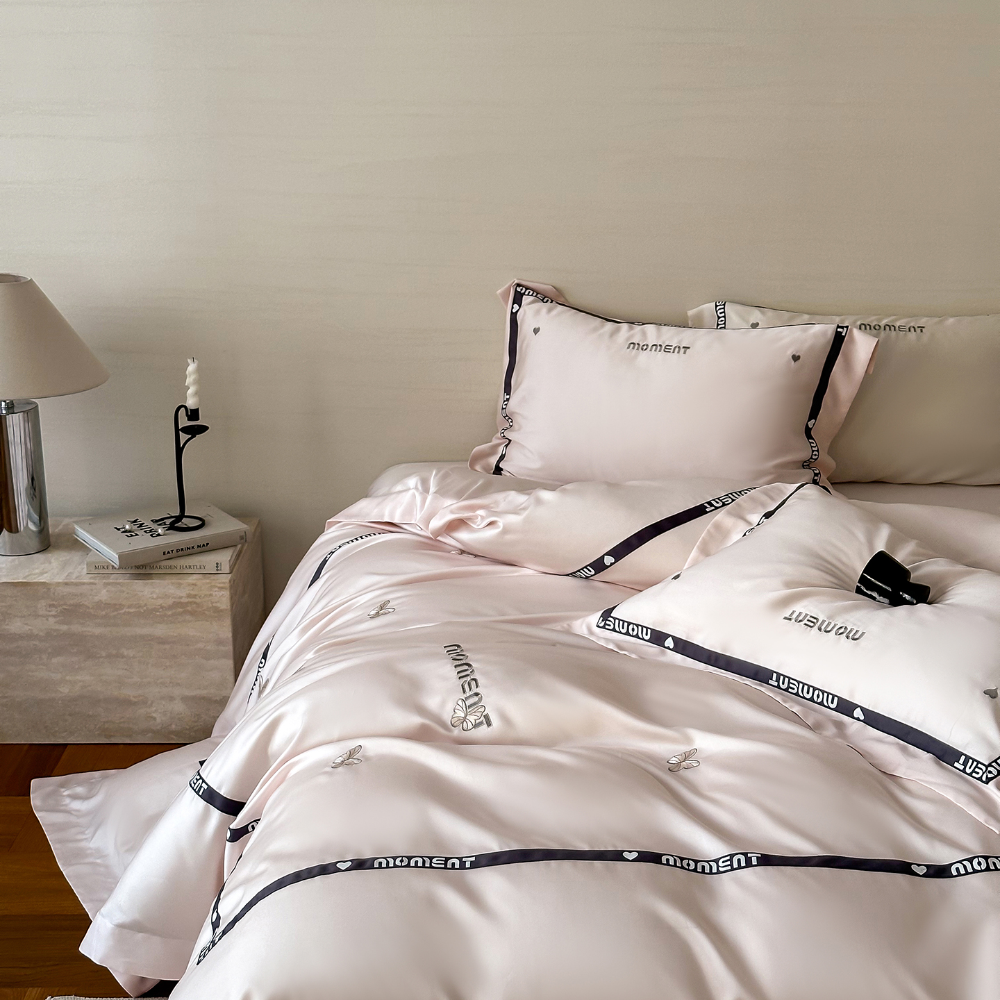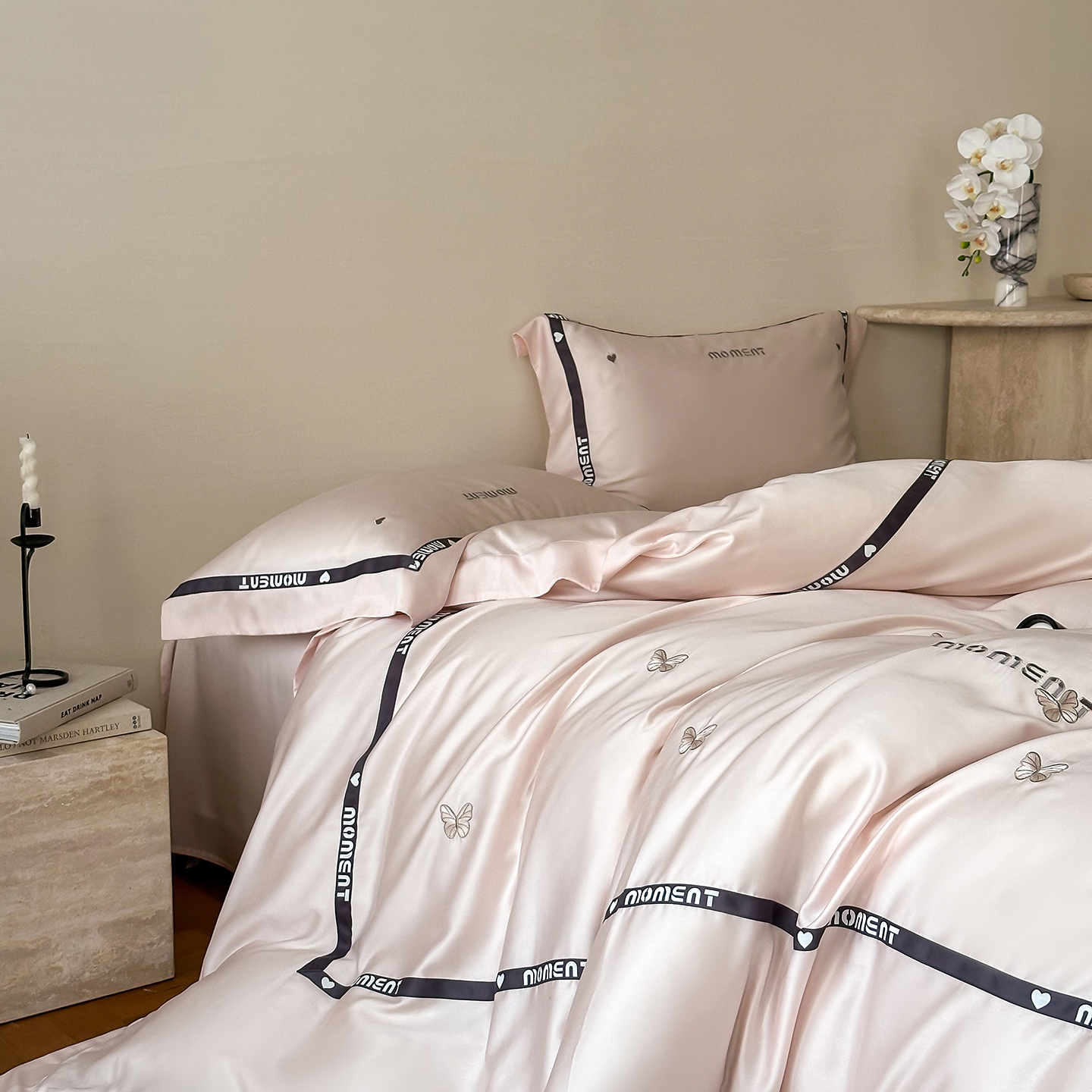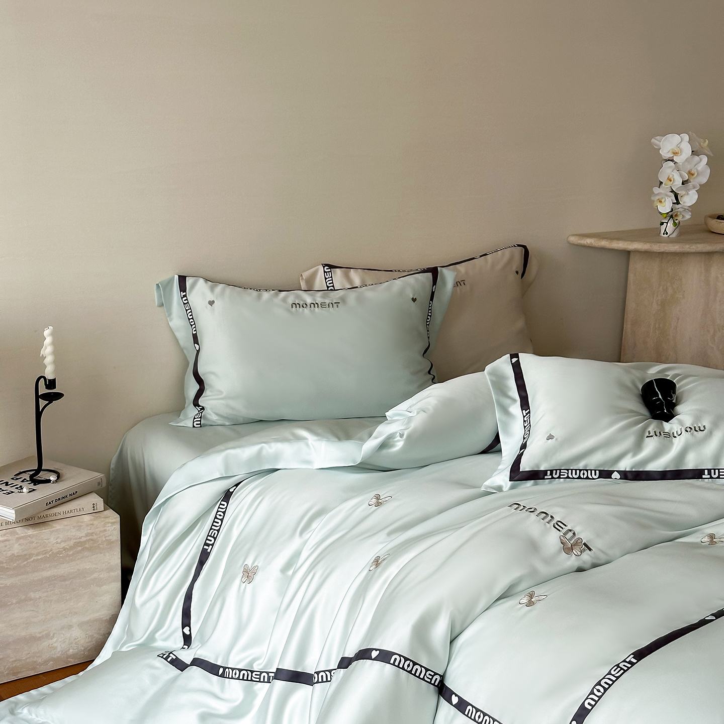 100%莱赛尔纤维,源自自然的纯净纤维,触感丝滑如绸,却又比丝绸更加透气吸湿。每一寸面料,都经过精心挑选与织造,只为给你最细腻的呵护。