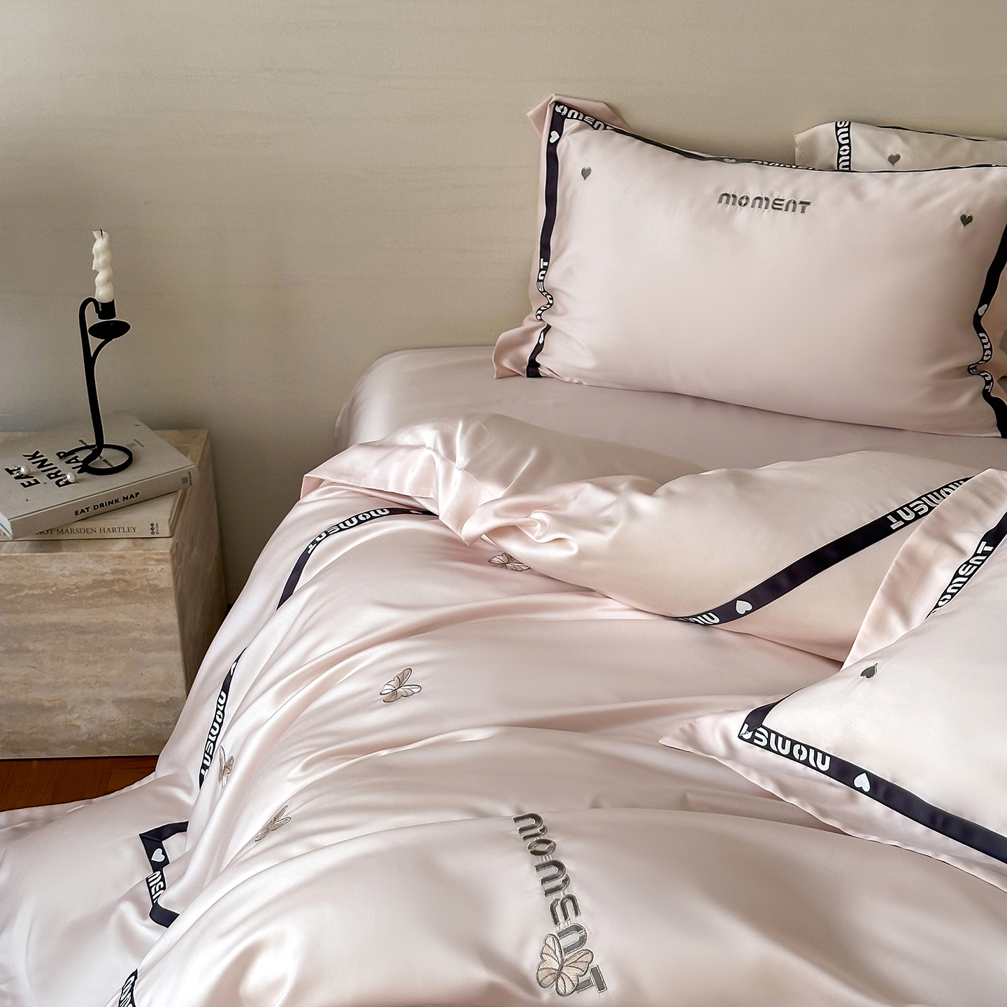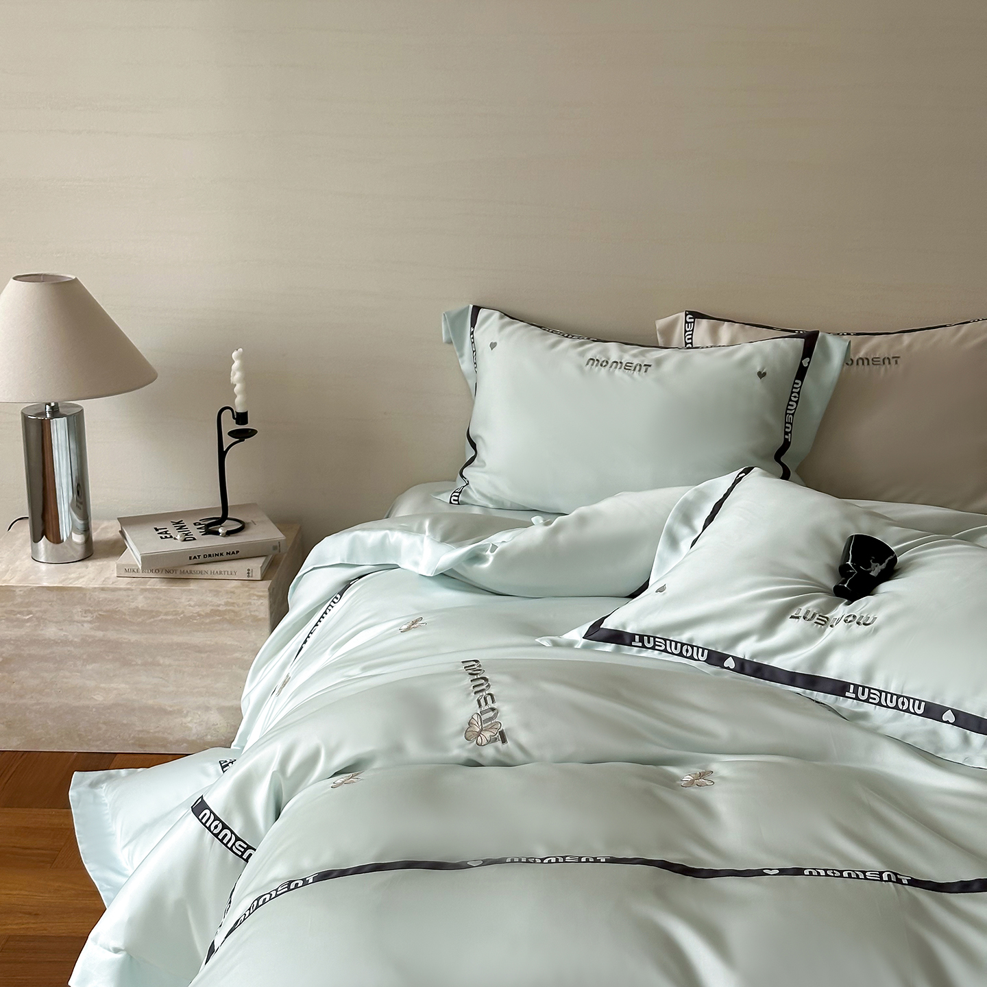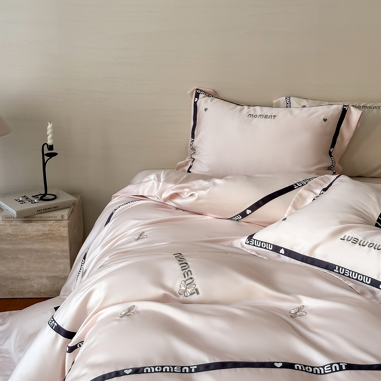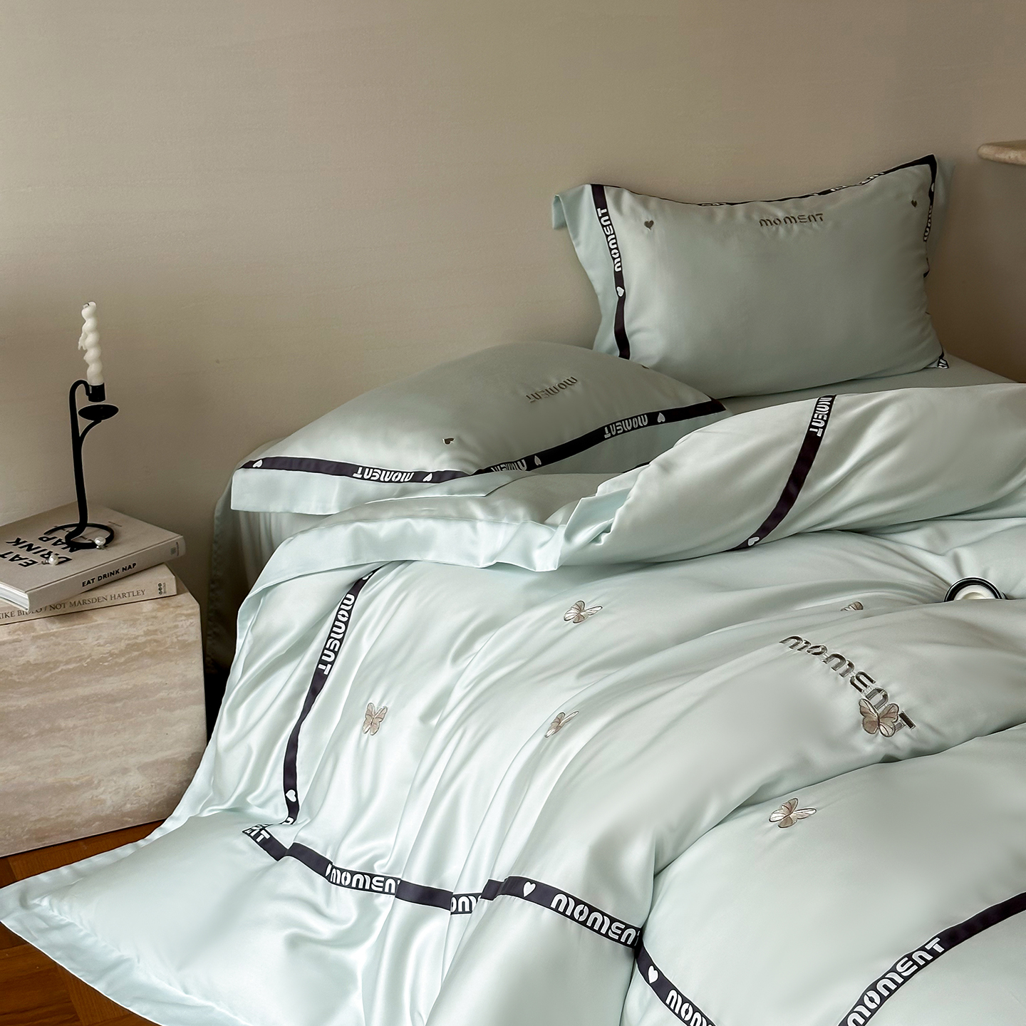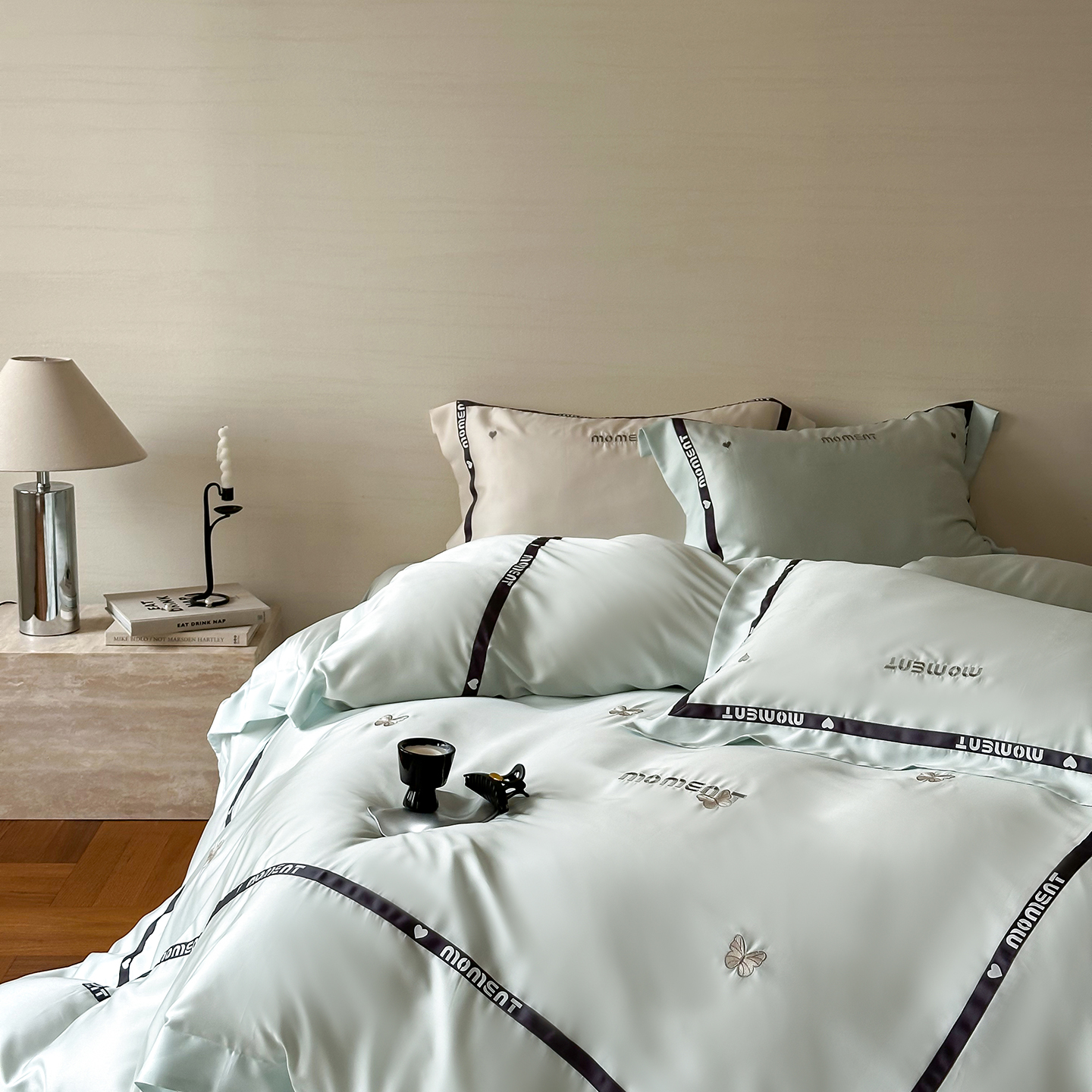 100%莱赛尔纤维,源自自然的纯净纤维,触感丝滑如绸,却又比丝绸更加透气吸湿。每一寸面料,都经过精心挑选与织造,只为给你最细腻的呵护。