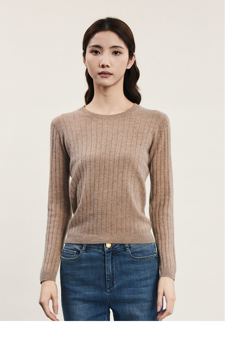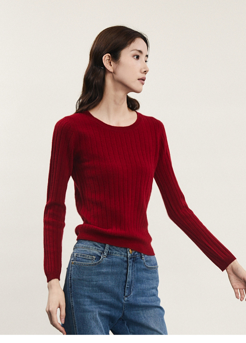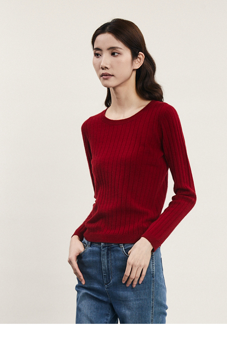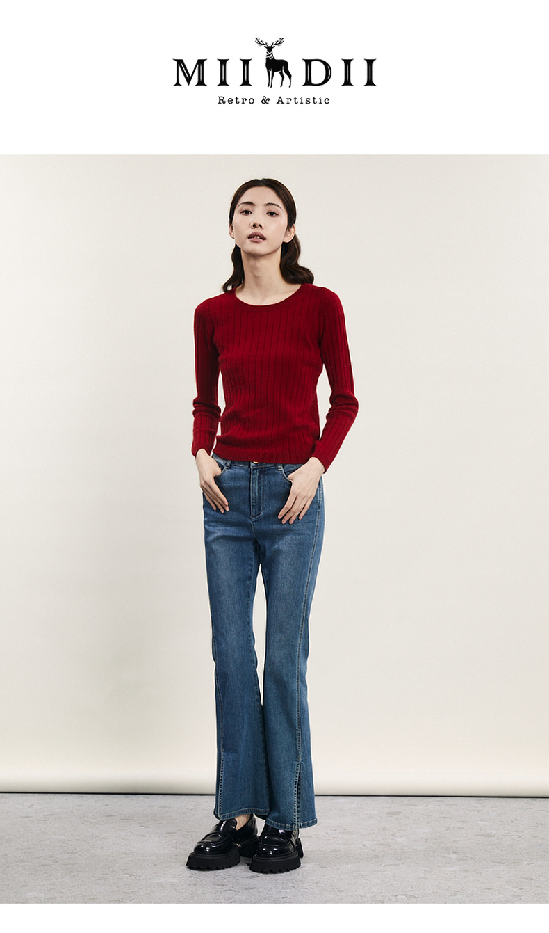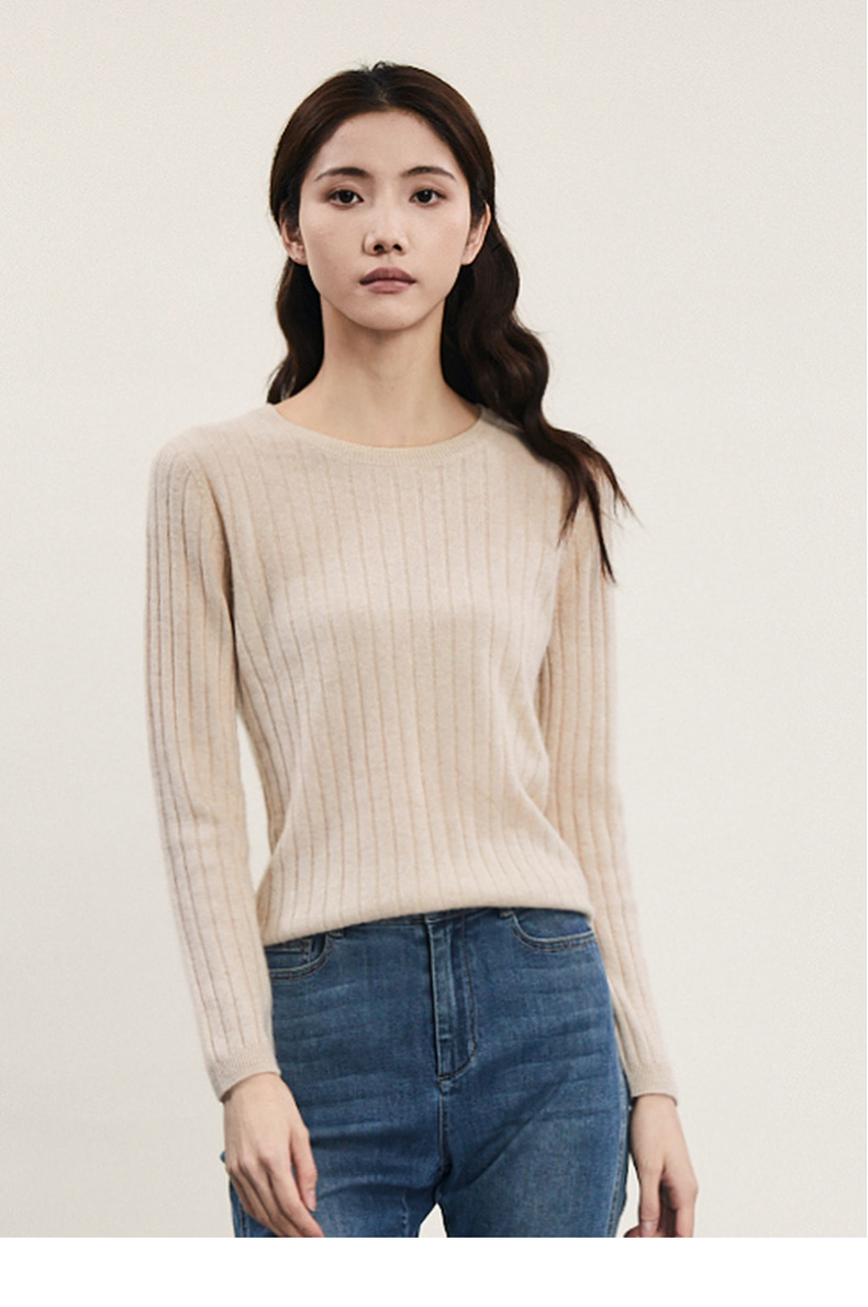 谜底圆领套头针织衫女2023冬款亲肤纯色打底山羊绒毛衫239MZ7501