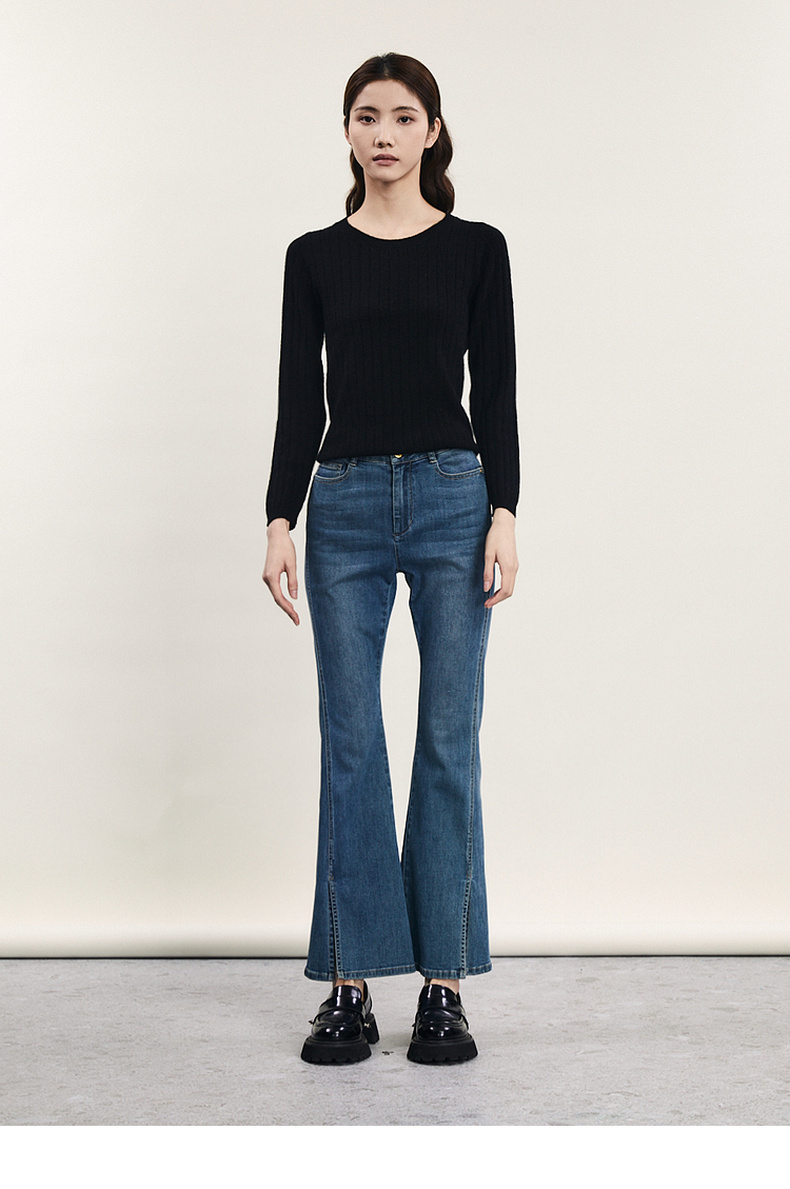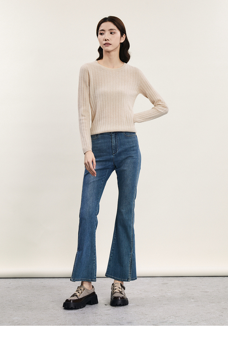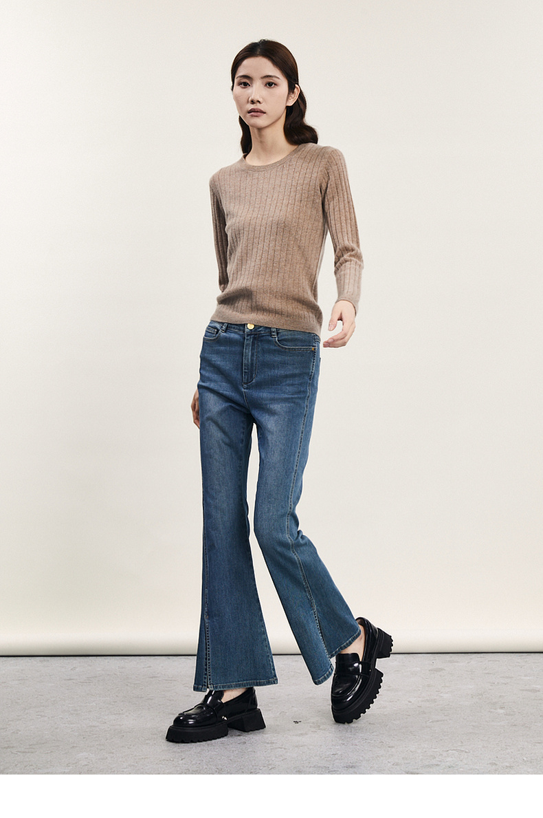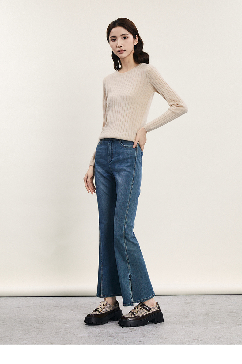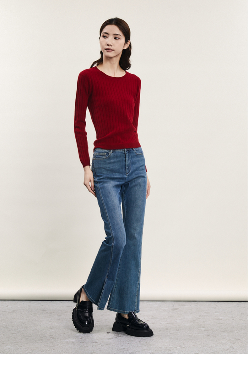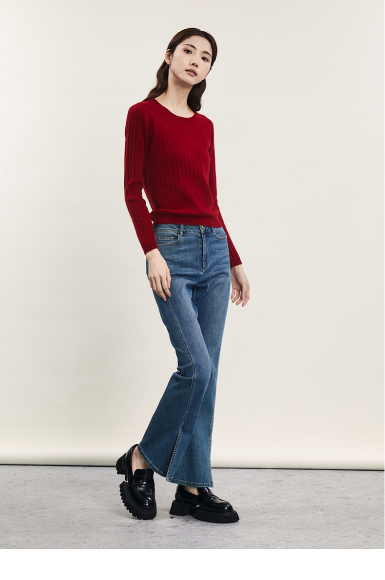 谜底圆领套头针织衫女2023冬款亲肤纯色打底山羊绒毛衫239MZ7501