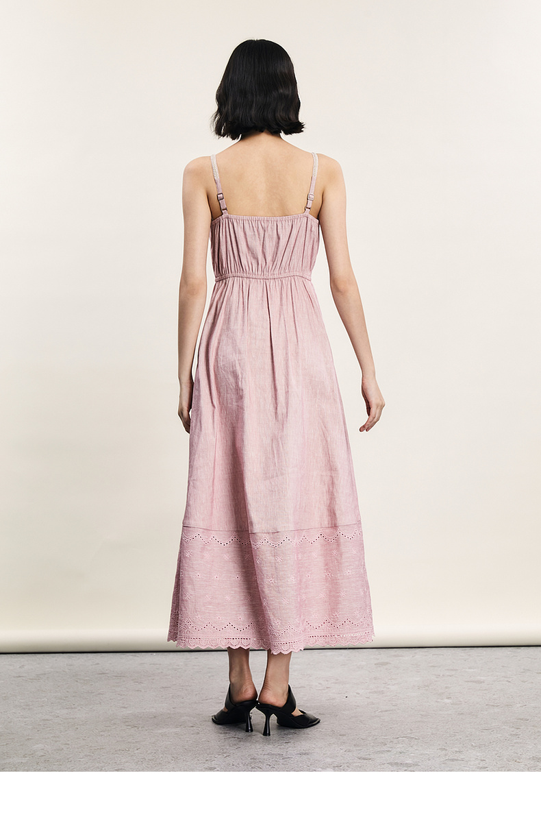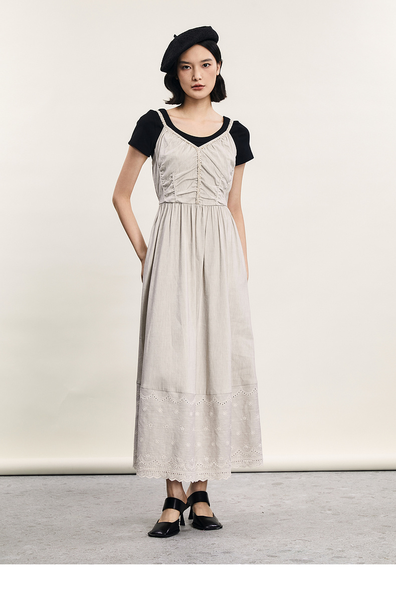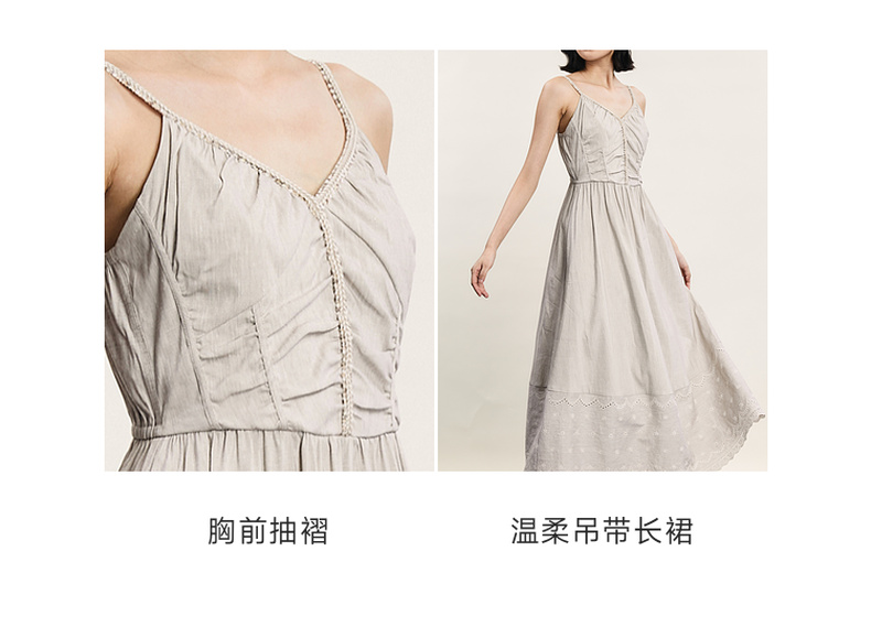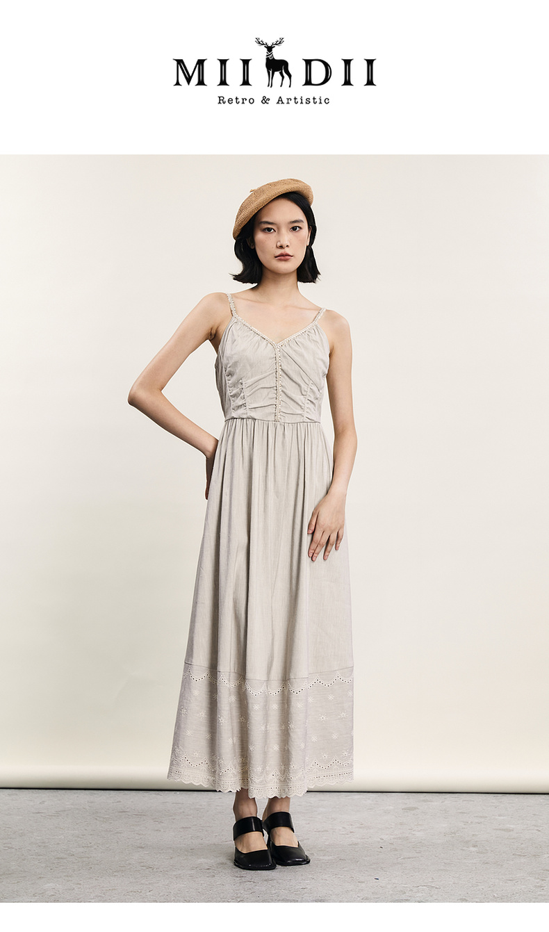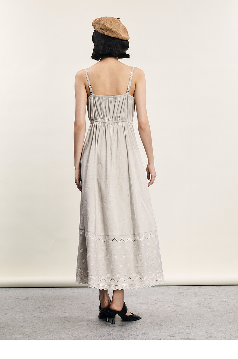 谜底吊带连衣裙2024夏新品优雅度假风设计感大摆裙长裙242ML0646