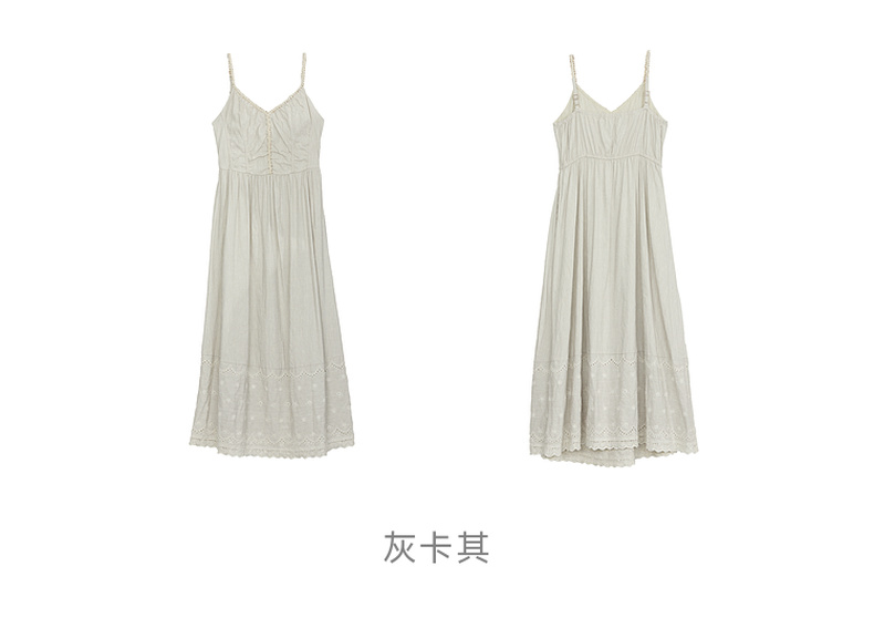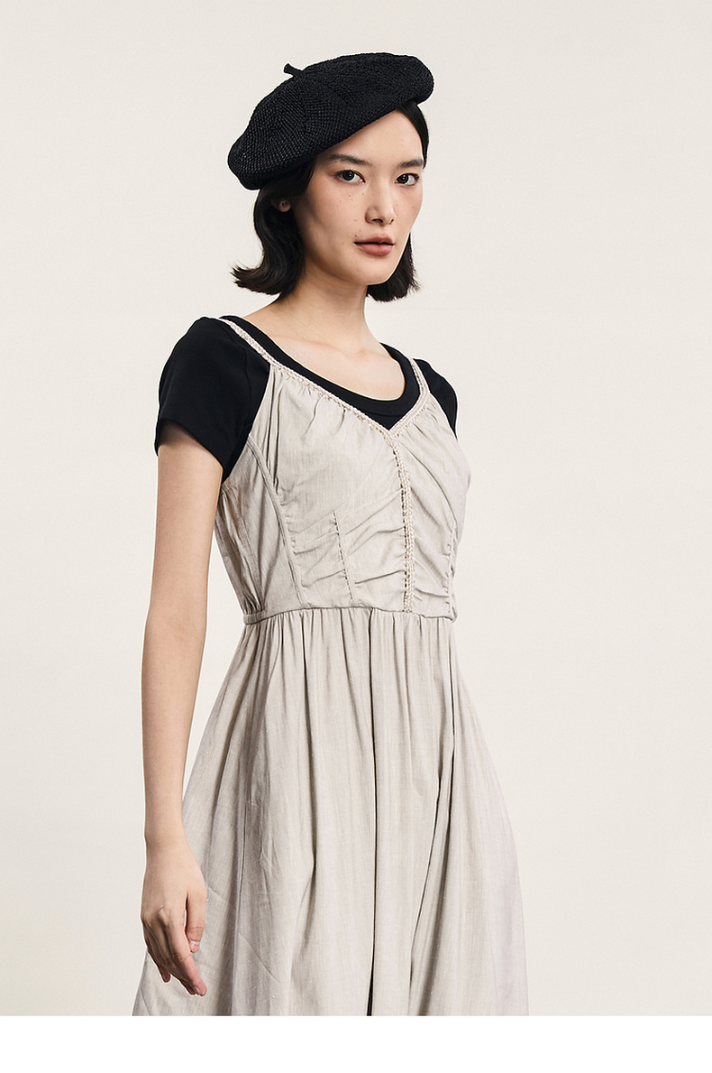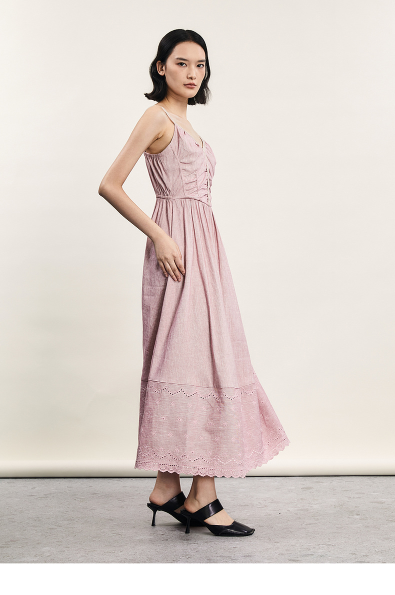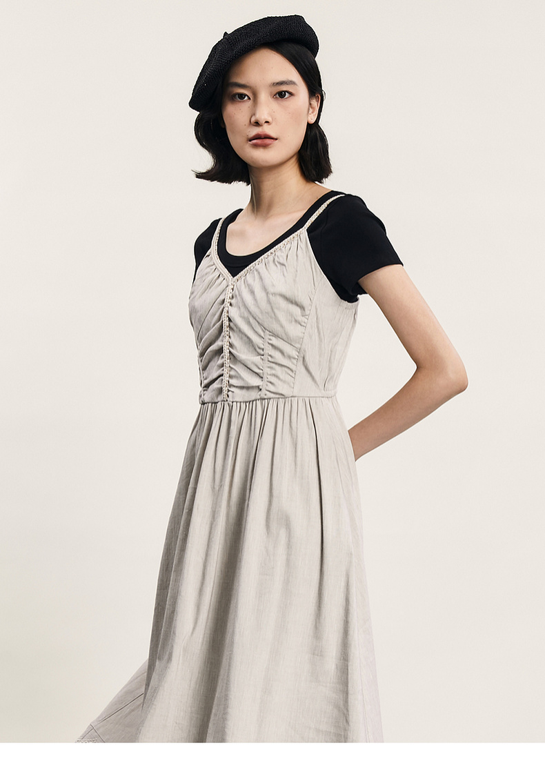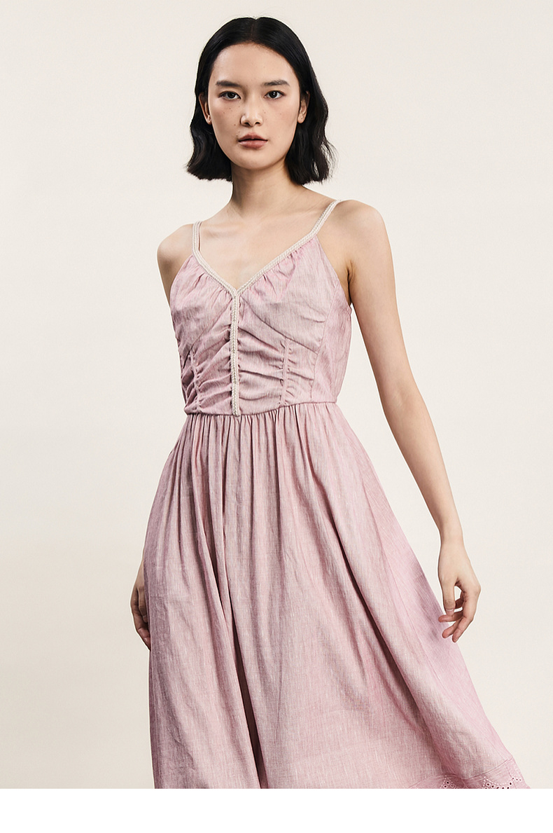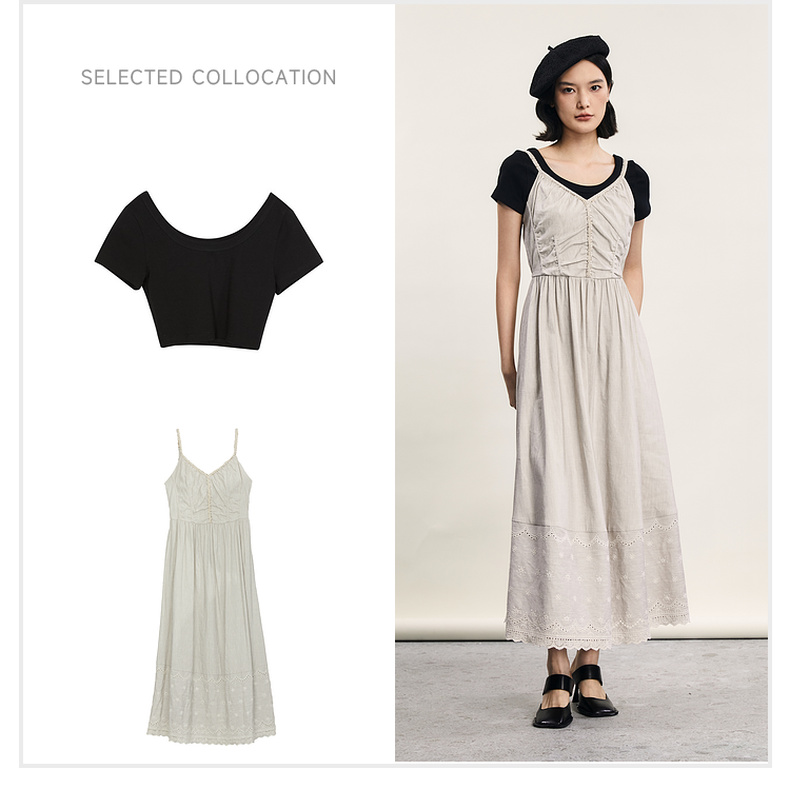 谜底吊带连衣裙2024夏新品优雅度假风设计感大摆裙长裙242ML0646