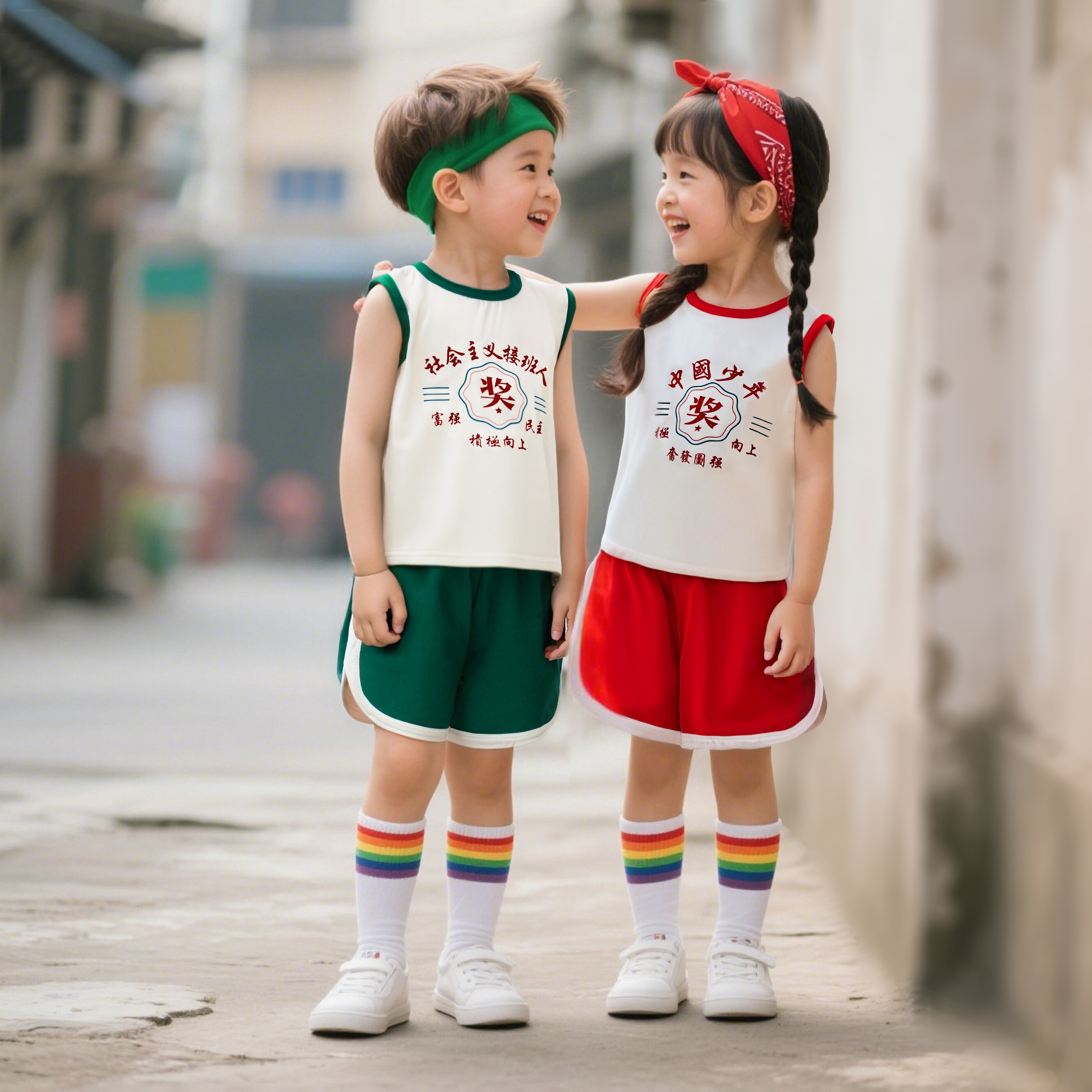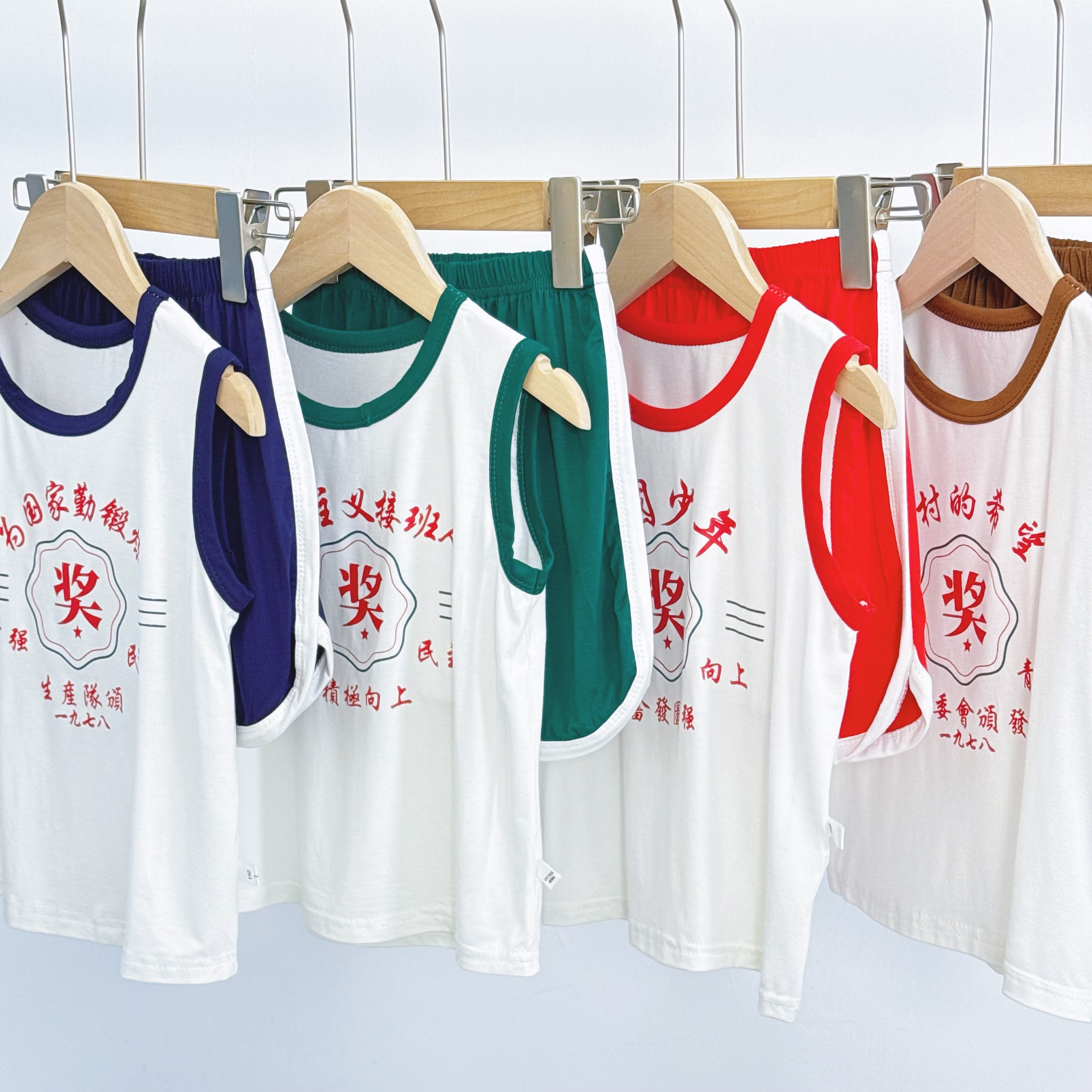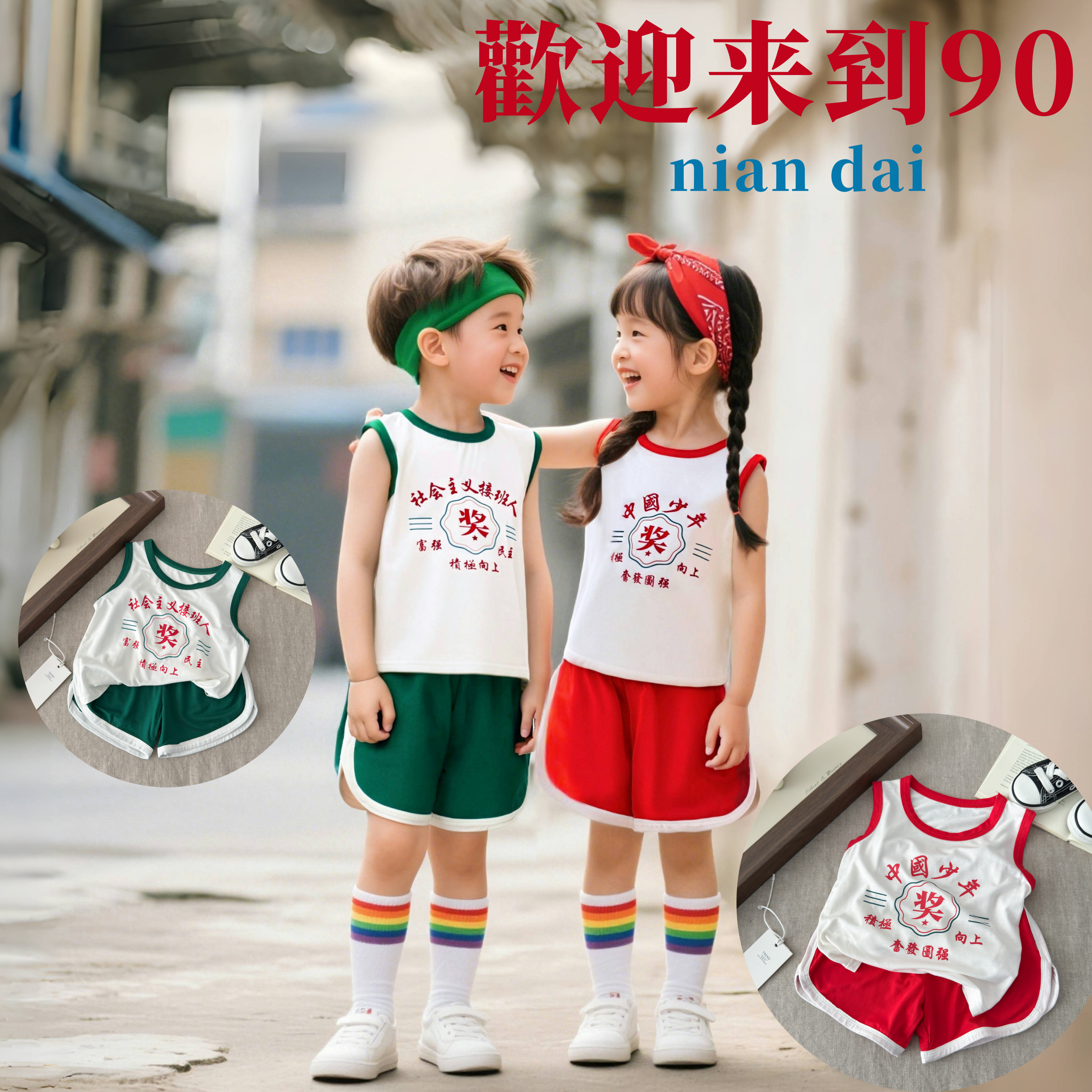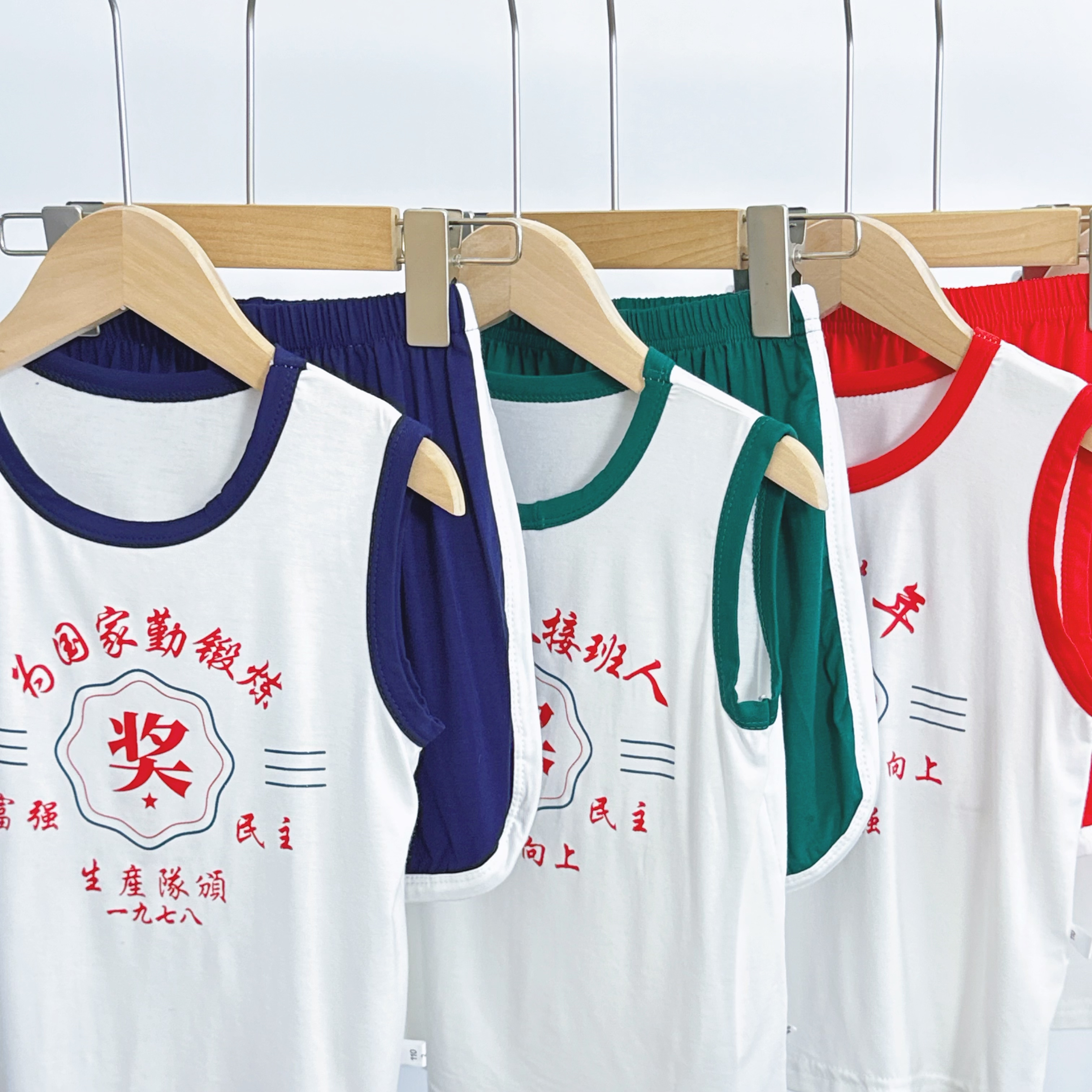 追忆千禧年代!【爱国少年背心儿童套装】国民女儿瑶yi瑶同款 混纺面料超级舒服 家居 外穿都非常适合