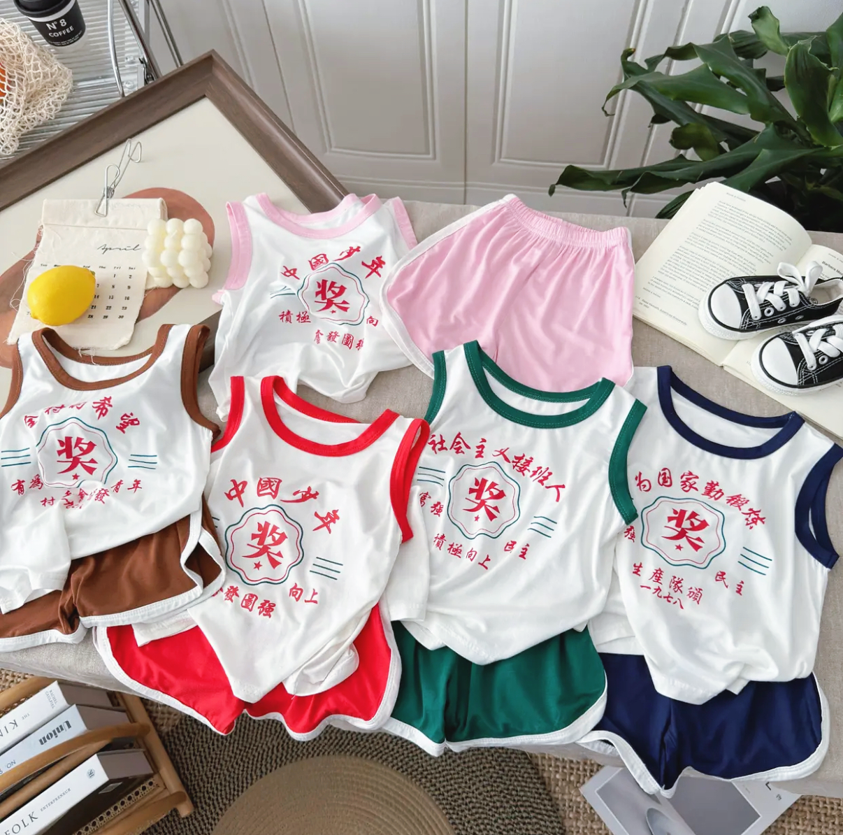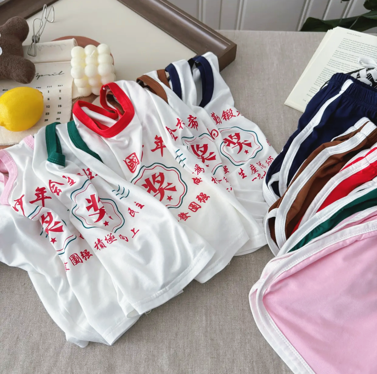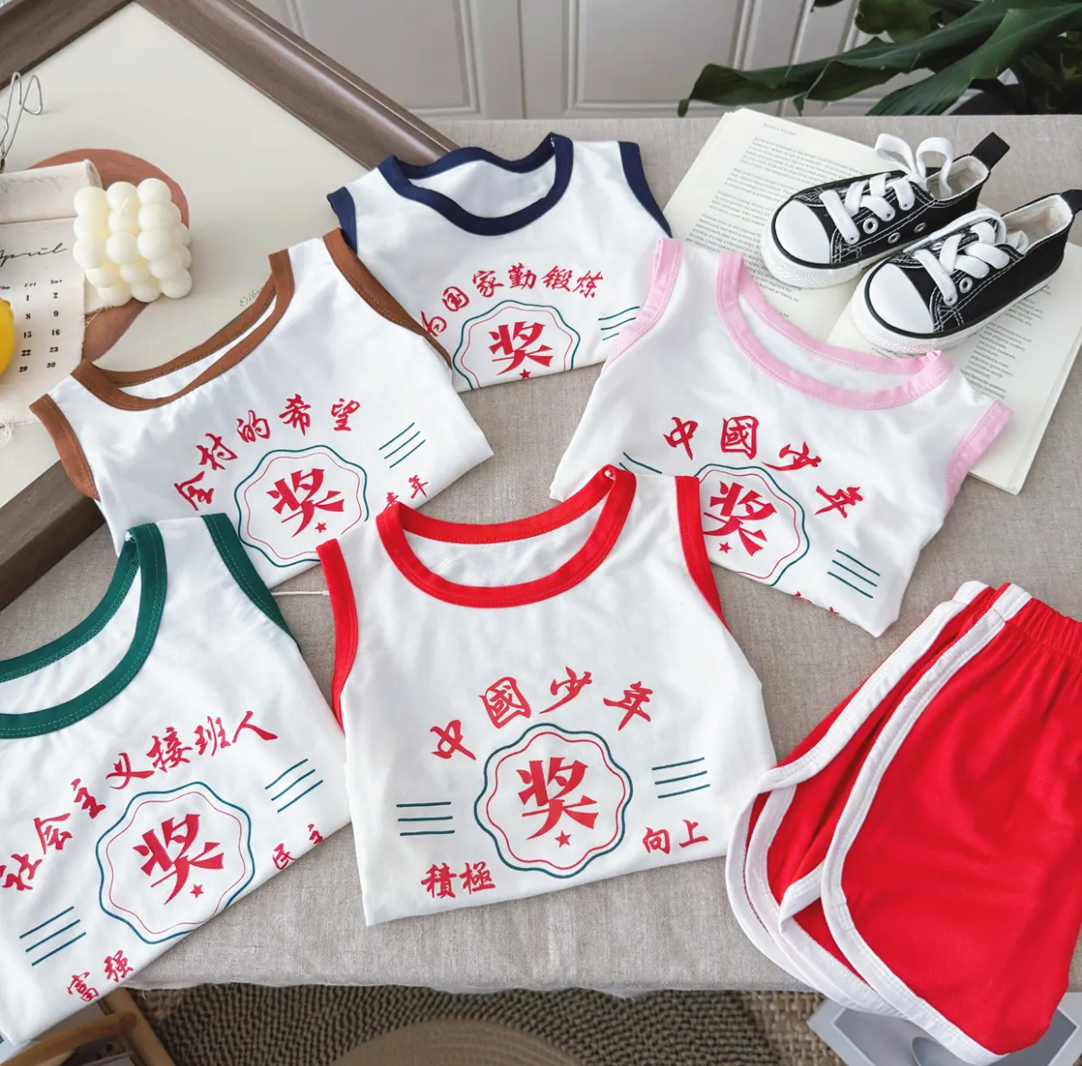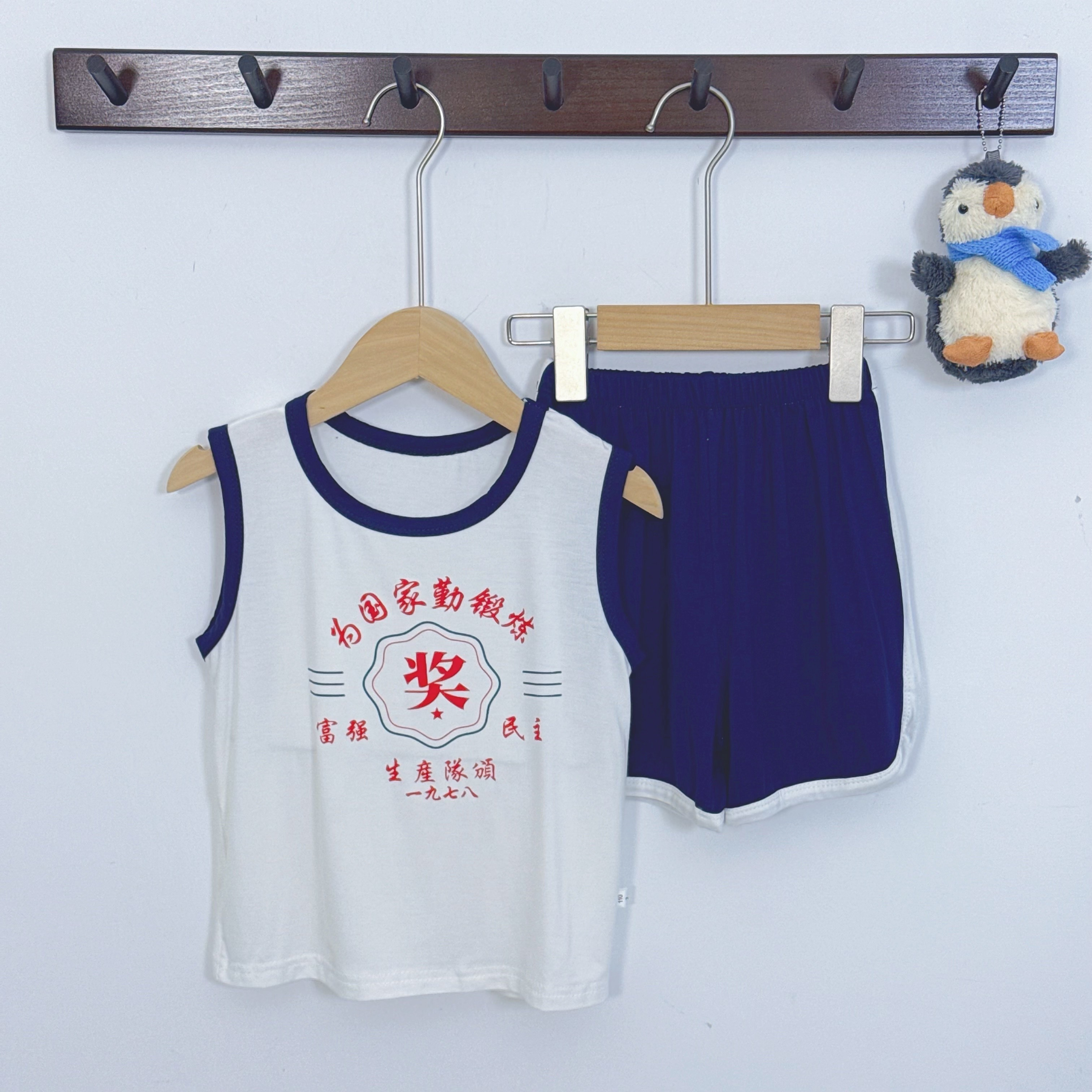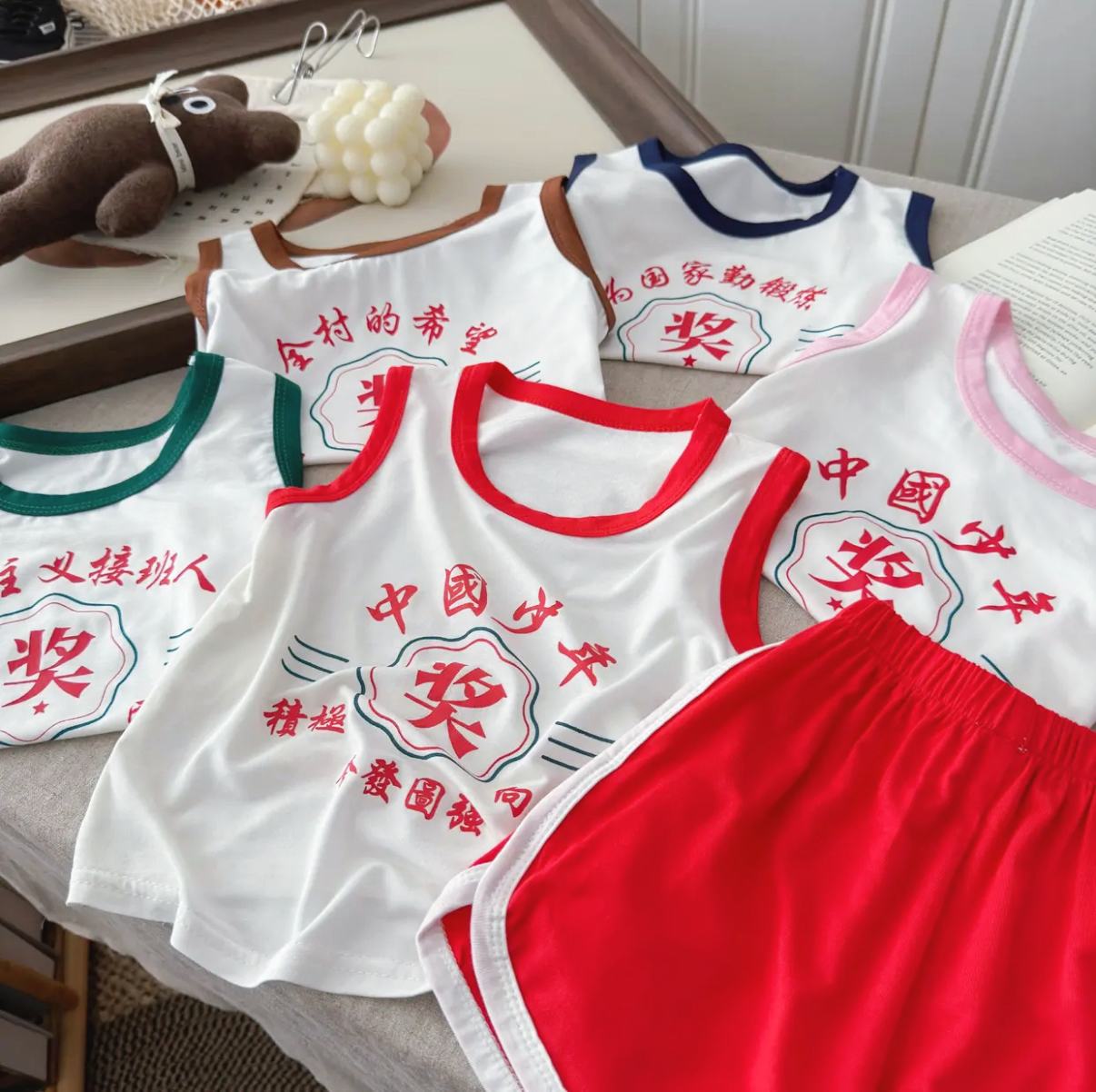 追忆千禧年代!【爱国少年背心儿童套装】国民女儿瑶yi瑶同款 混纺面料超级舒服 家居 外穿都非常适合