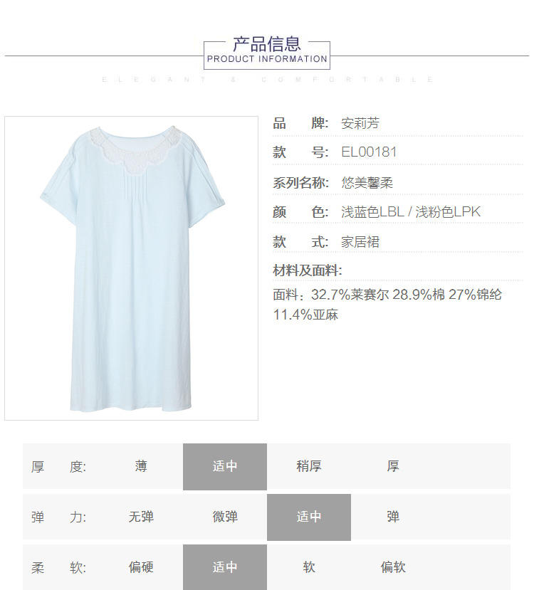 安莉芳纯色短袖宽松休闲家居睡衣睡裙EL00181