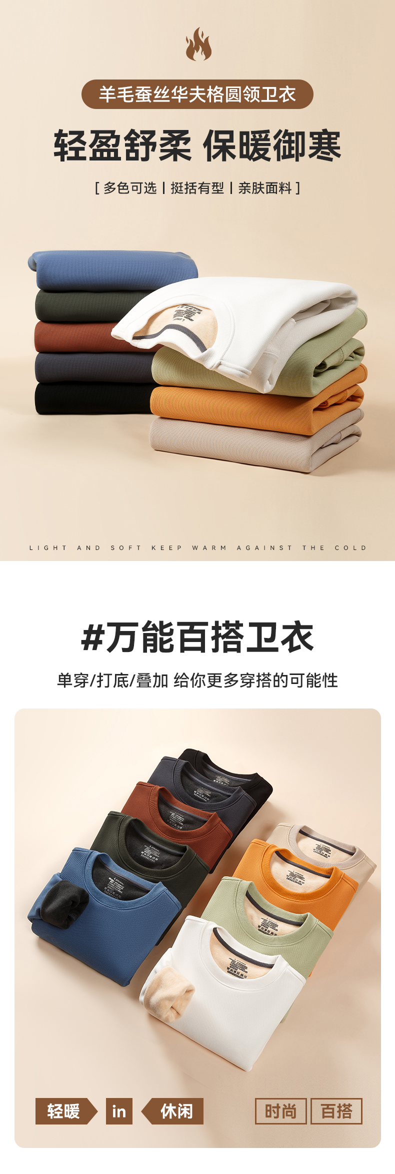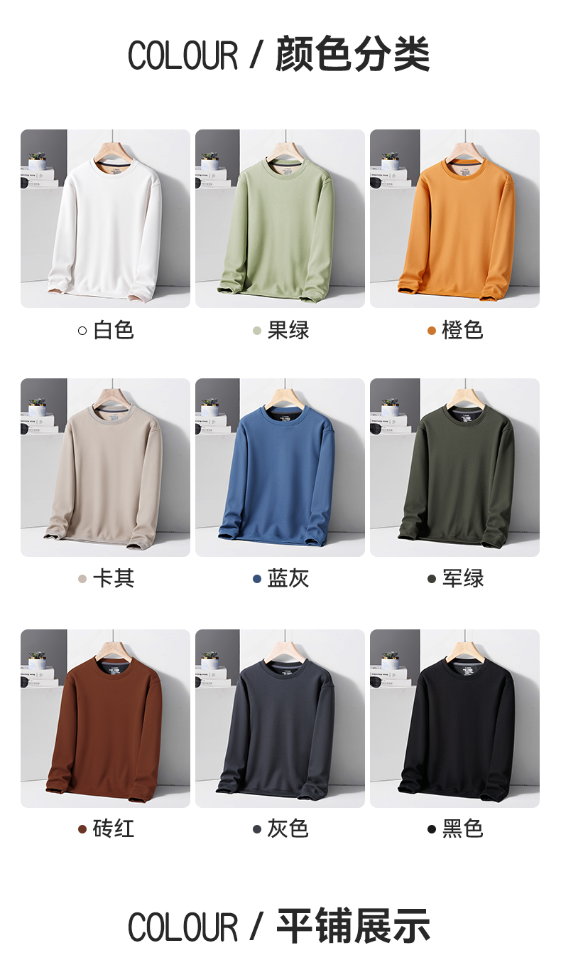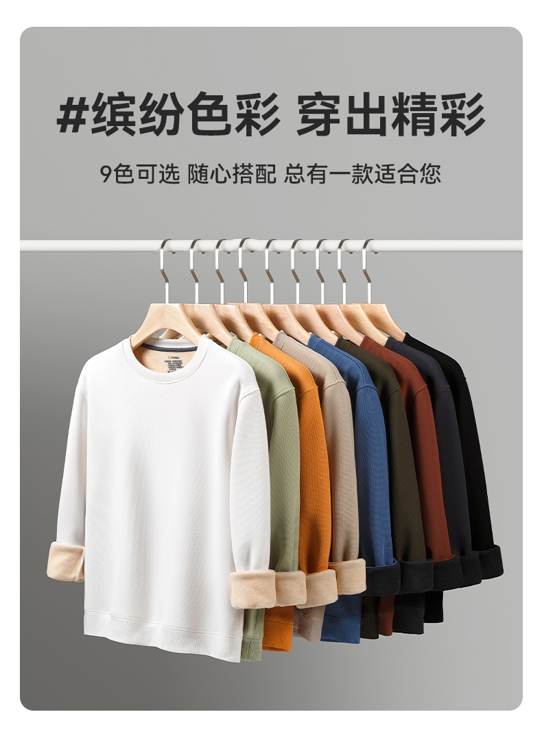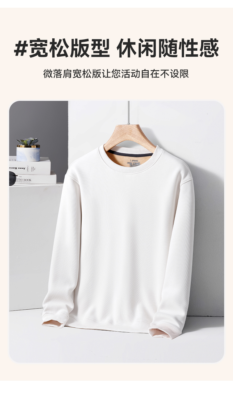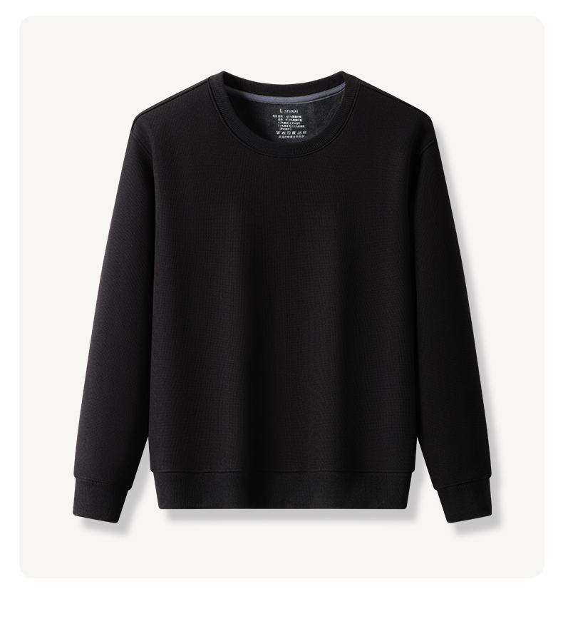 半身缘男装 春秋简约百搭华夫格圆领加薄绒卫衣PY25