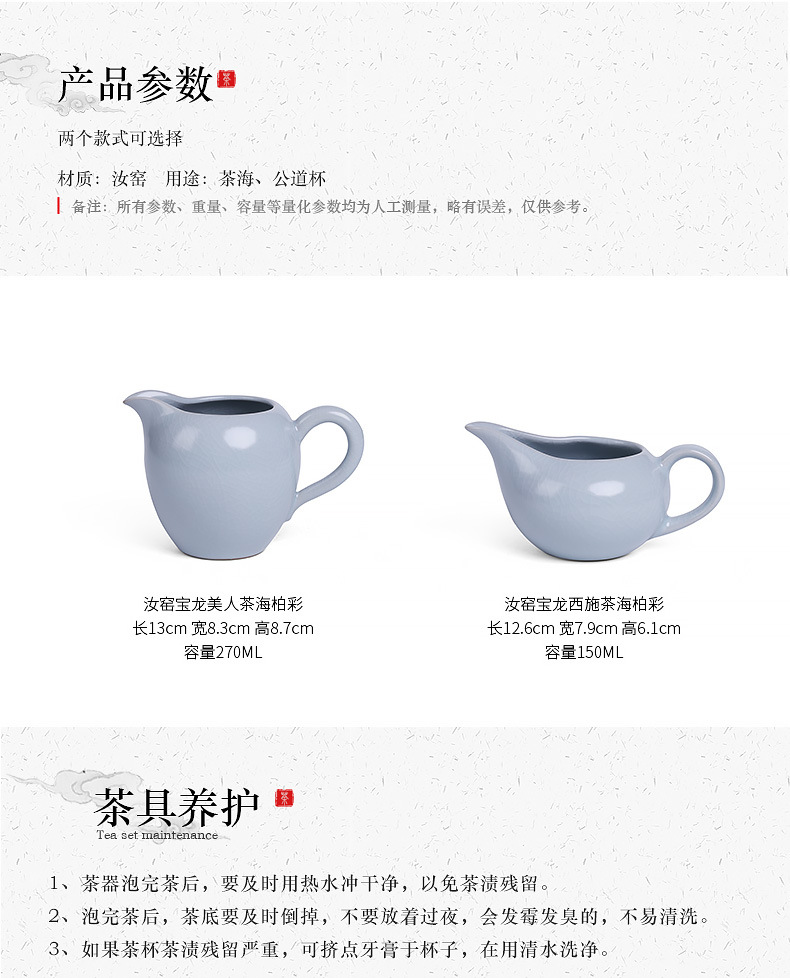 公道杯汝窑开片家用陶瓷大号倒茶公杯分茶器功夫茶具配件单个可养