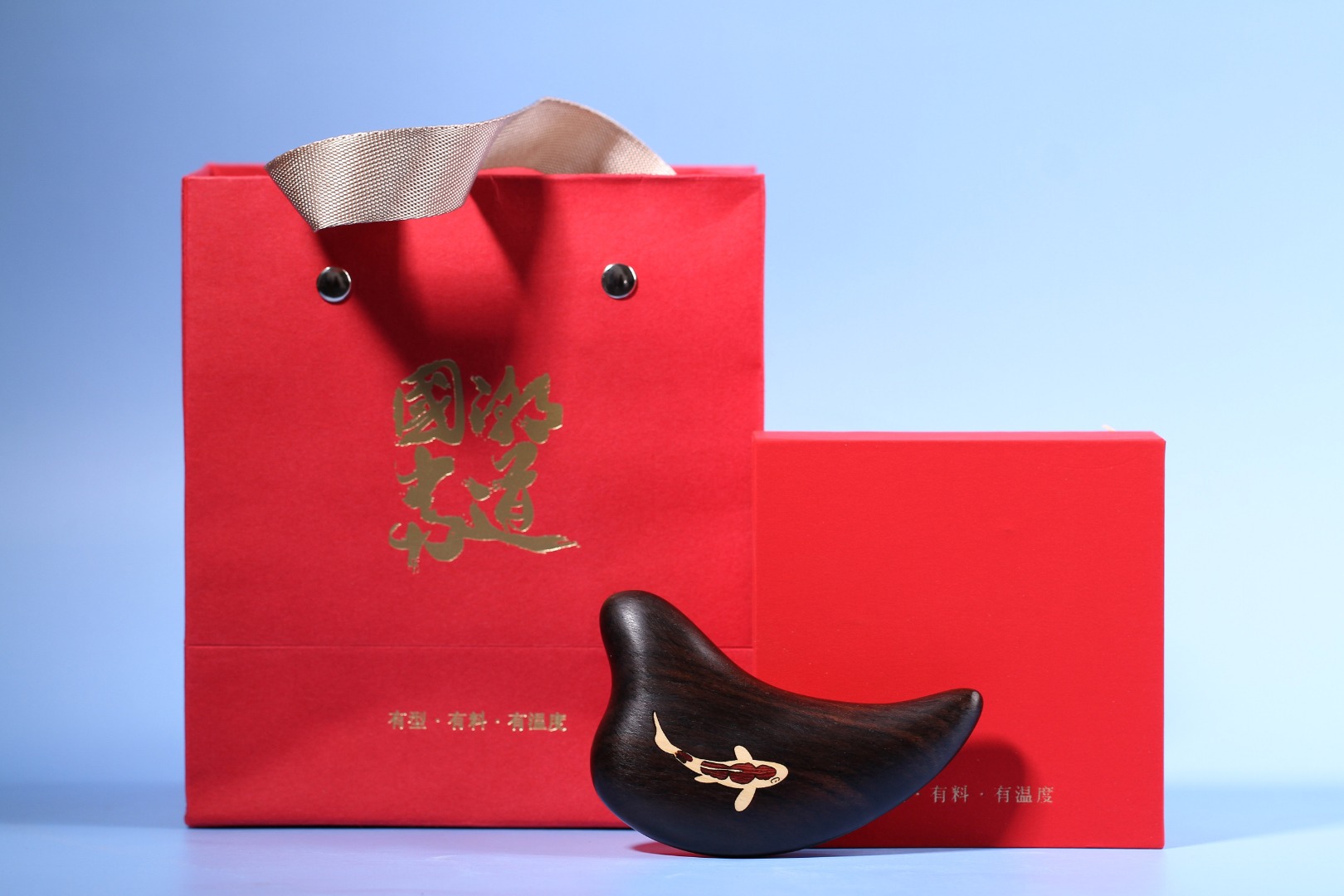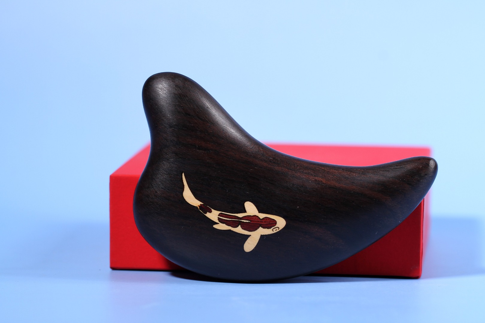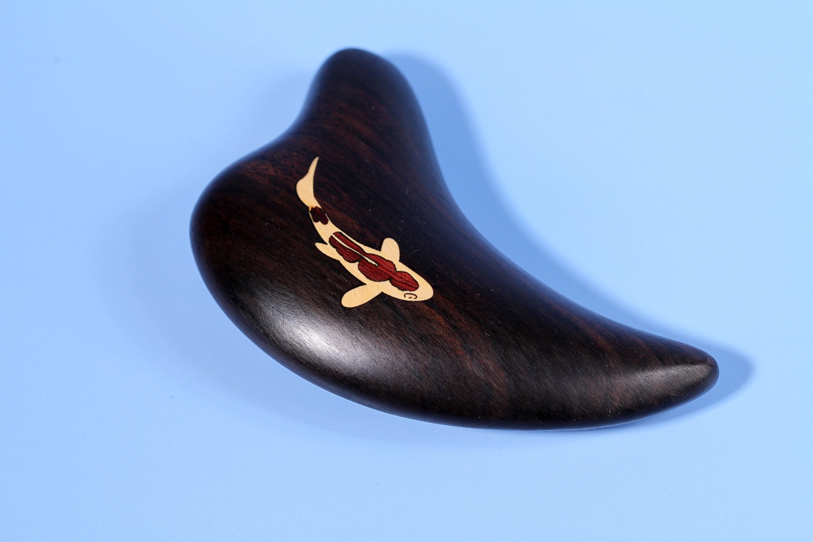 紫光檀刮痧板/镶嵌黄杨木+赞比亚紫檀锦鲤