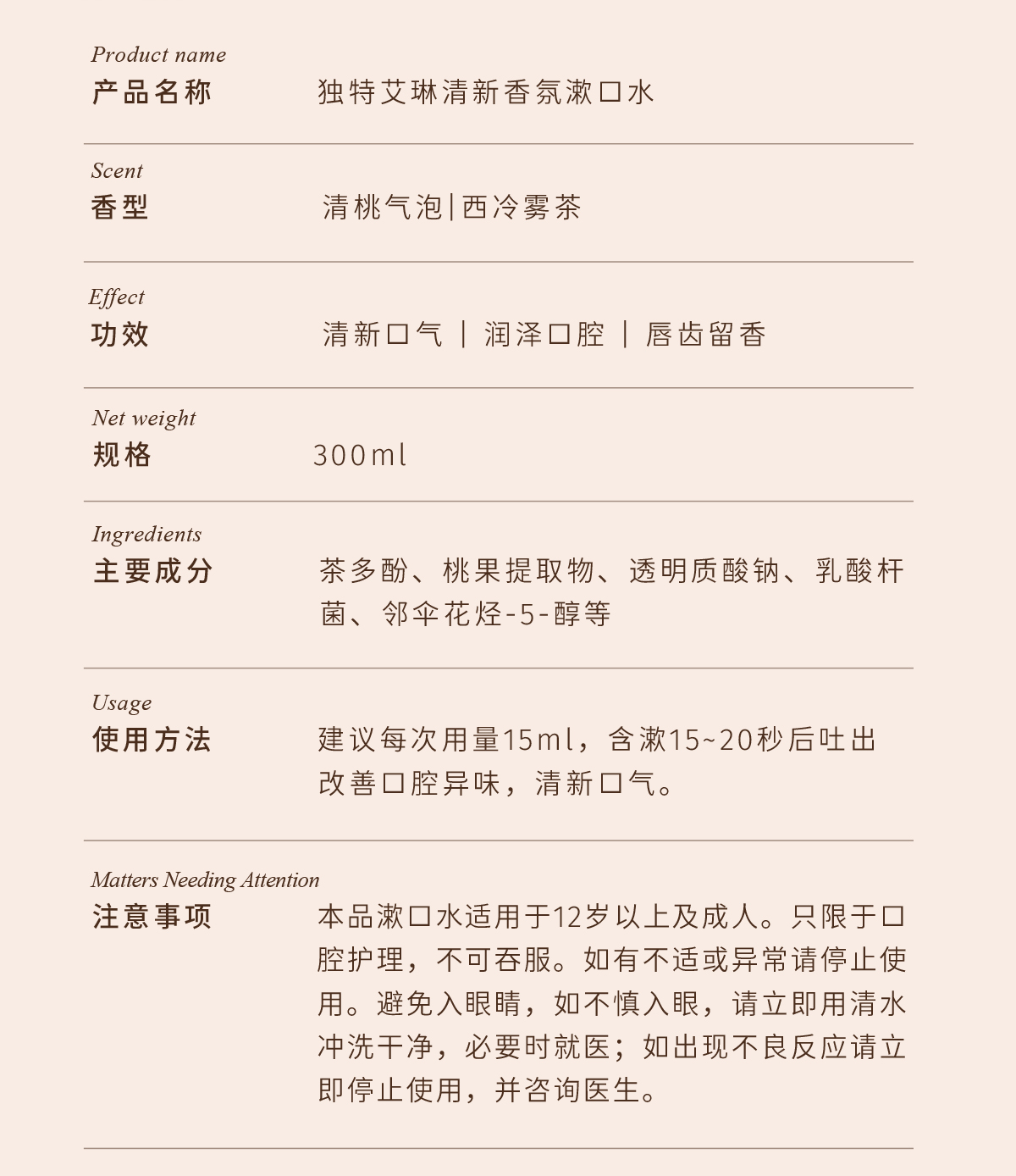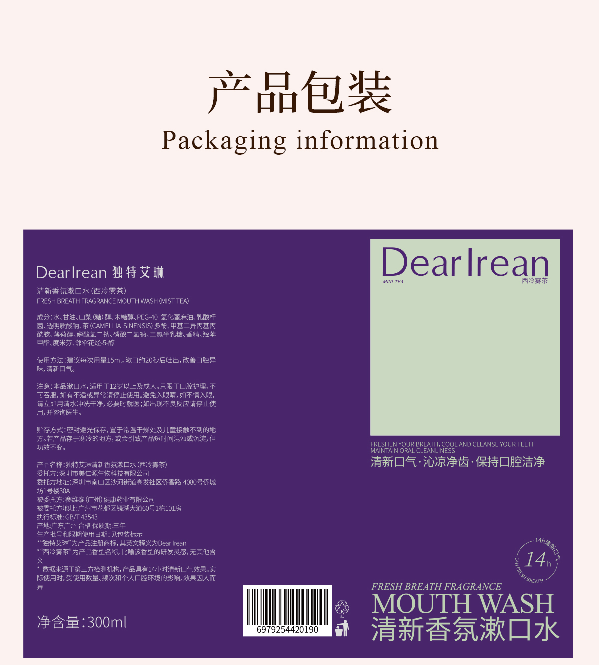 【现货速发】DearIrean 独特艾琳漱口水清新口气持久留香清洁口腔净白留香抑菌清新香氛漱口水300ml(官方自营)