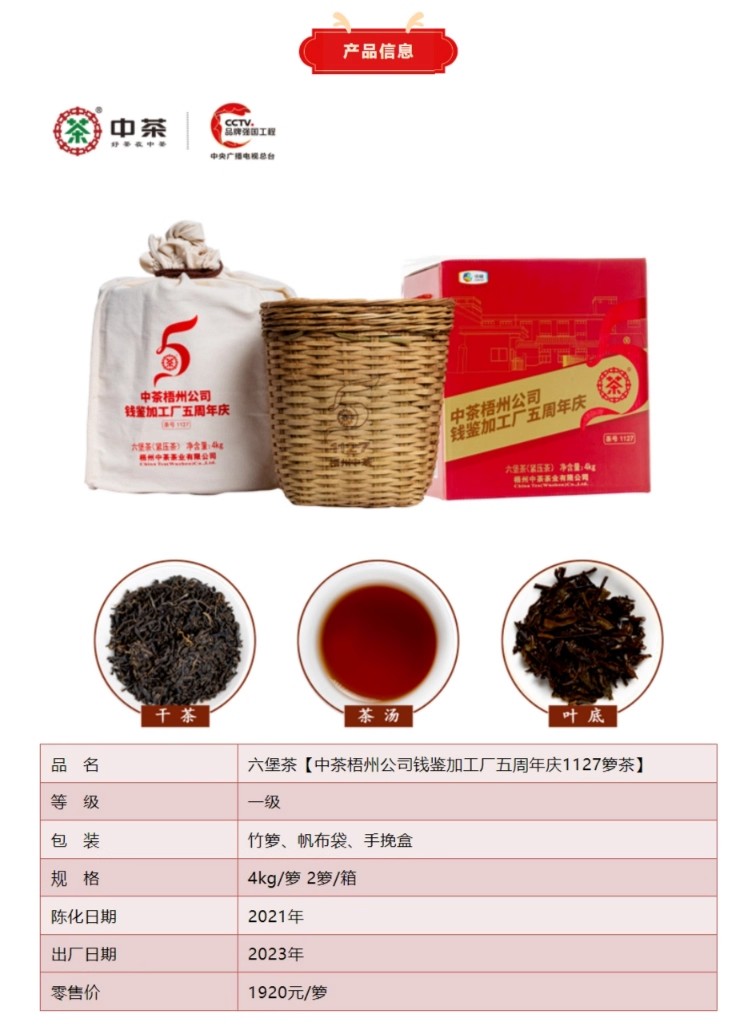 中粮-中茶2023年中茶1127六堡茶4kg 广西黑茶六堡茶纪念五周年散茶一级原料/原产地直发