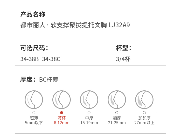 都市丽人美体纤塑调整型内衣BC薄3/4杯蕾丝塑身文胸四排树脂胶圈LJ32A9