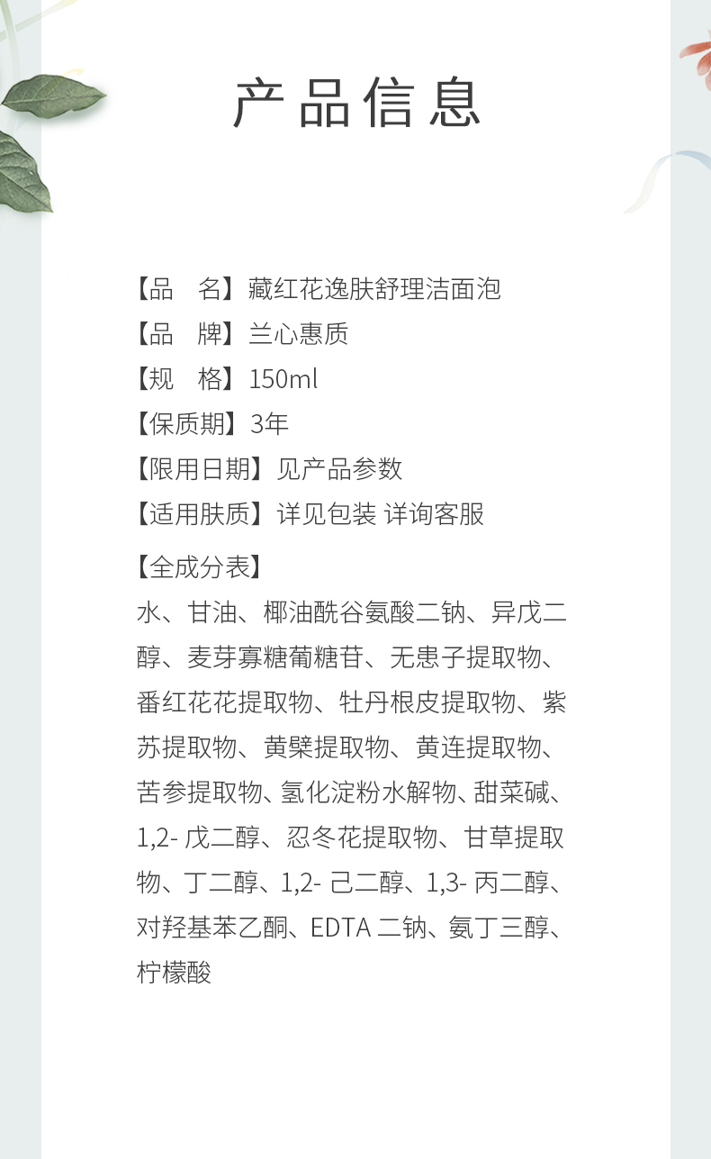 【温和洁净 保护屏障】藏红花氨基酸洁面泡 150ml 兰心惠质