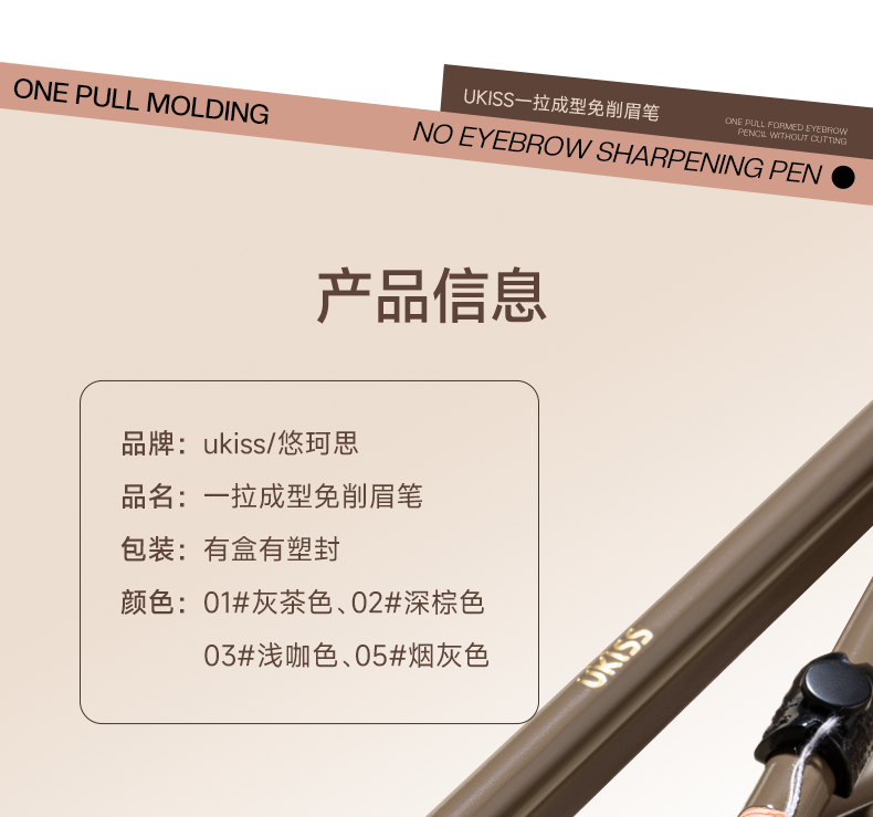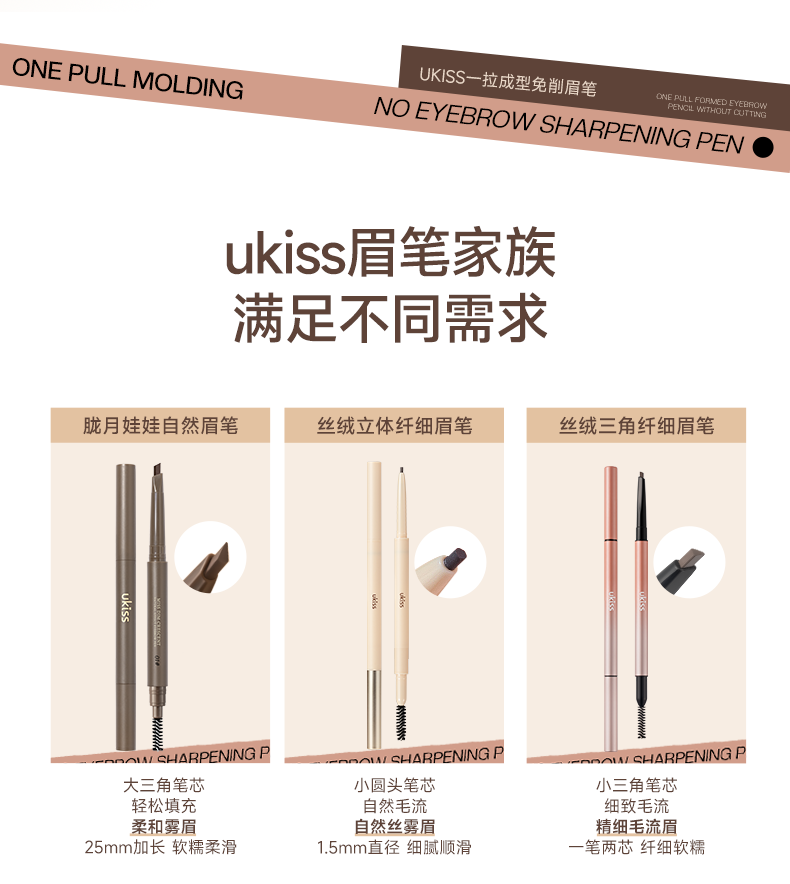 【拉线免削 根根分明】ukiss悠珂思一拉成型免削眉笔