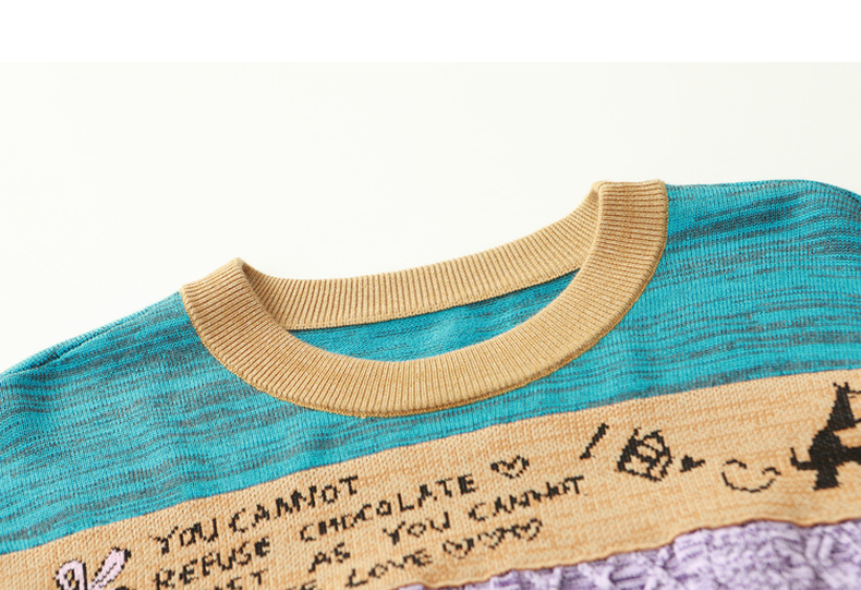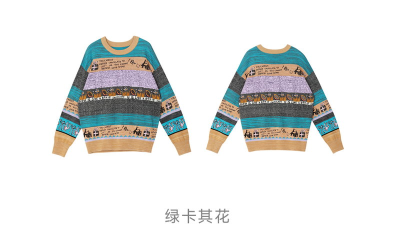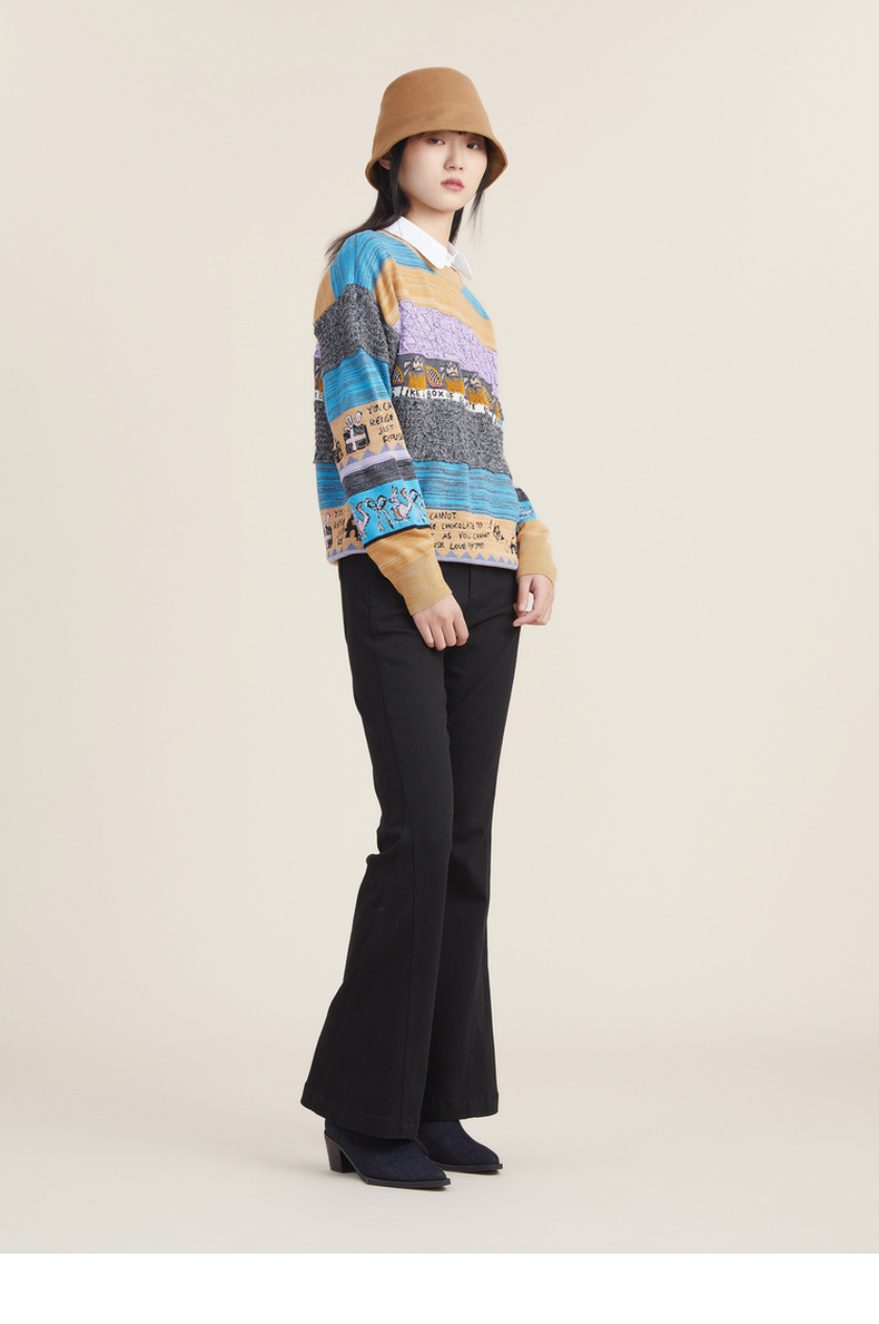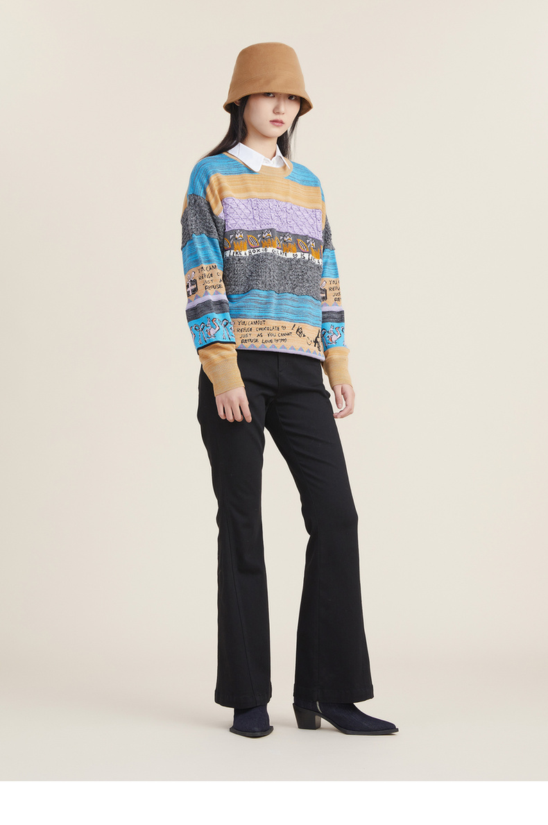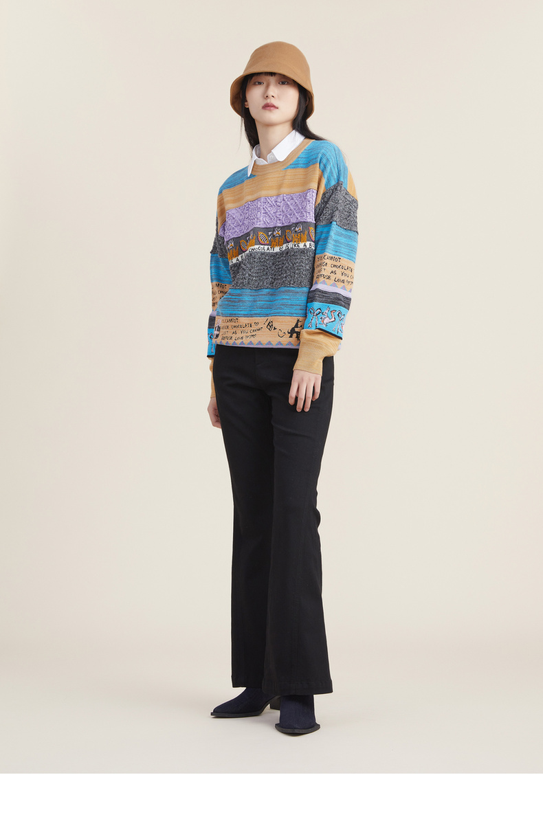 谜底2022秋新款复古文艺趣味图案绣花百搭套头针织衫女223MZ1372