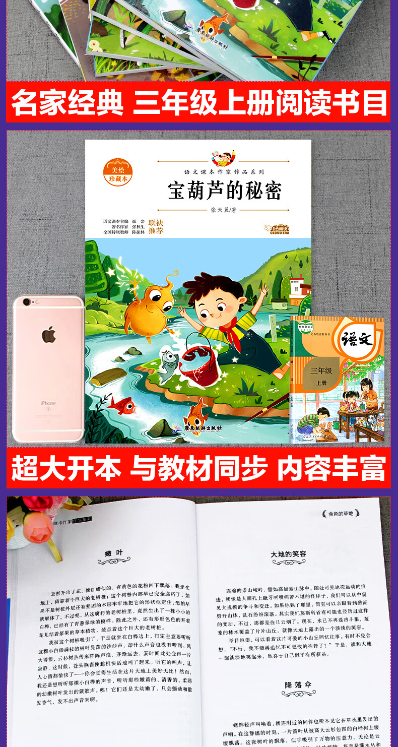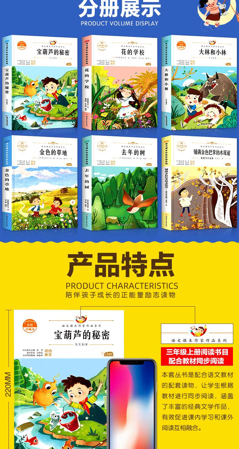 语文课本作家作品三年级上下册宝葫芦的秘密铺满金色巴掌的水泥道荷花童年的水墨画金色的草地
