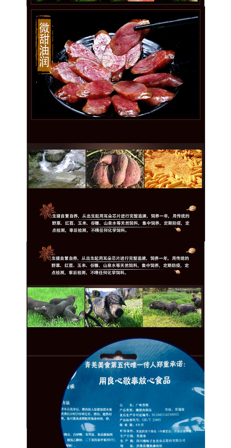 雅妹子 农家烟熏四川腌腊 广味香肠500克