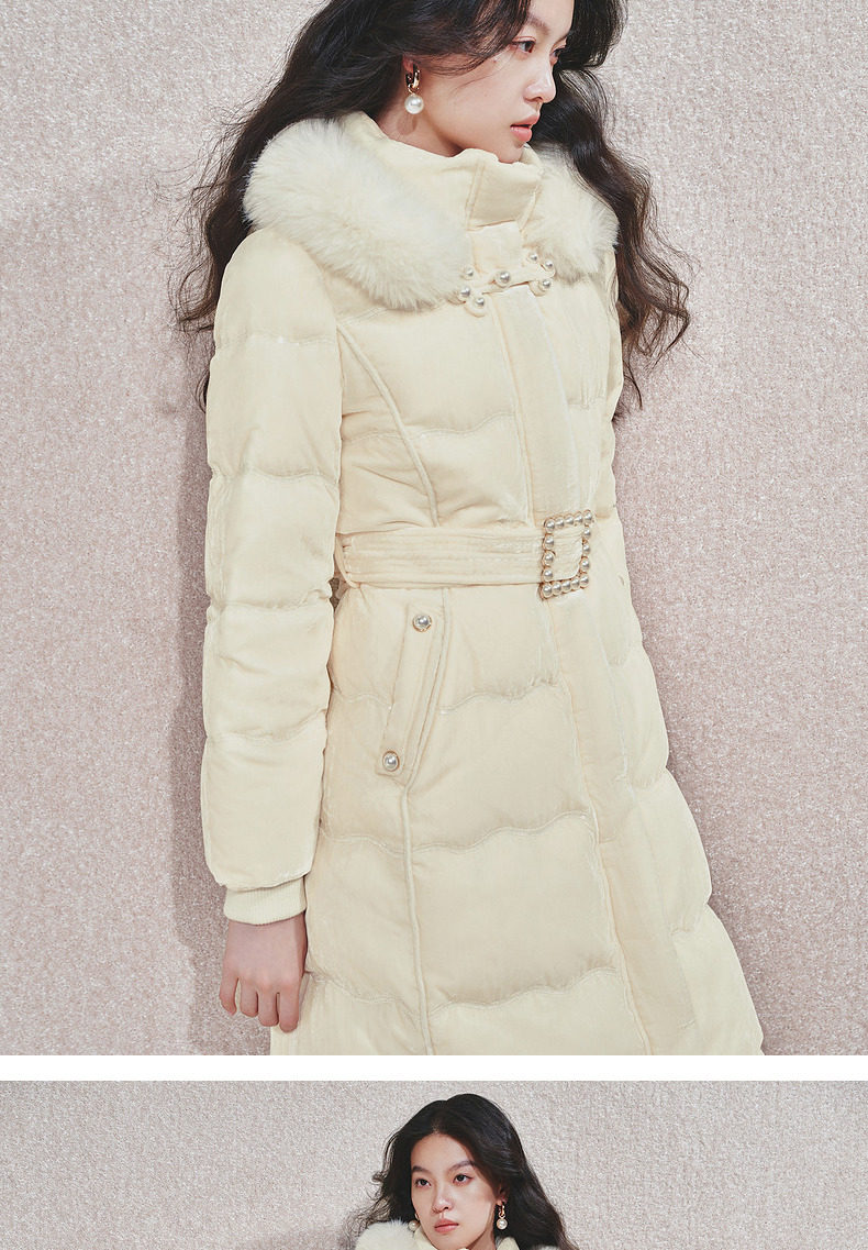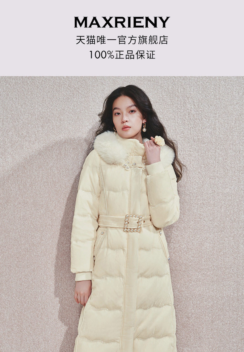 玛克门店发货:新中式刺绣丝绒米白色羽绒服(货号:MC85DC514)