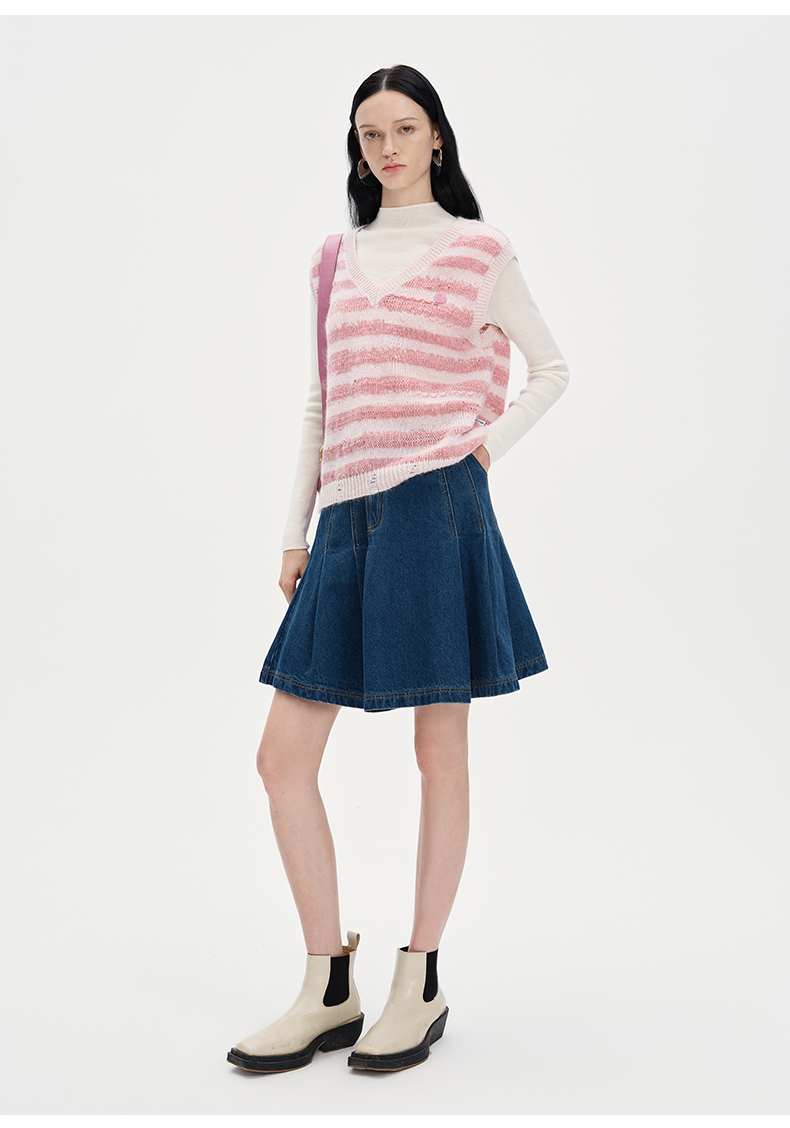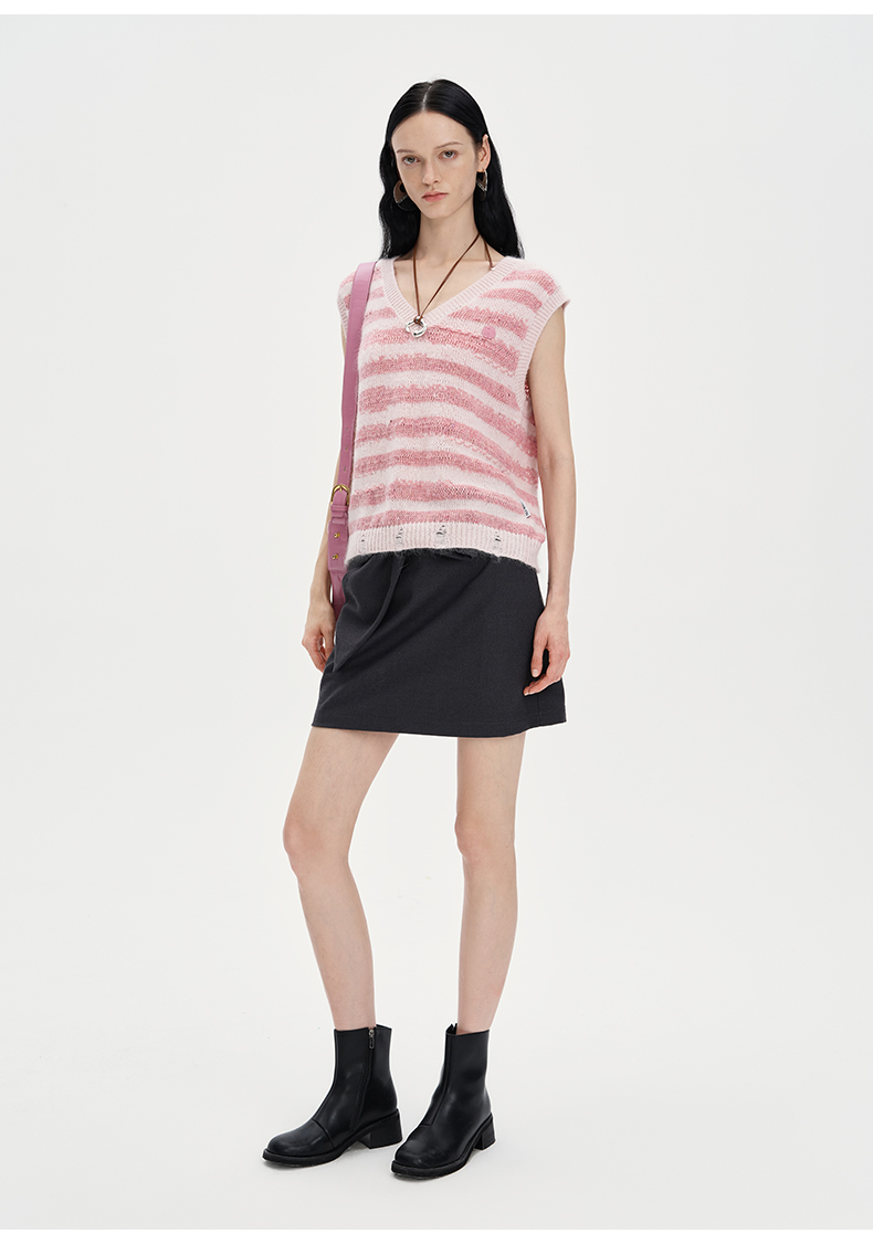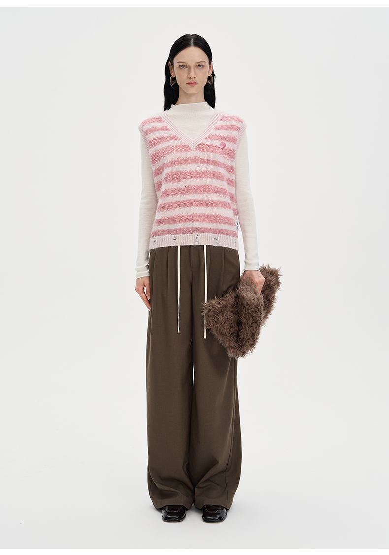 SELFWHO丝光马海毛混纺毛衣背心女2024秋新款小个子叠穿针织马甲
