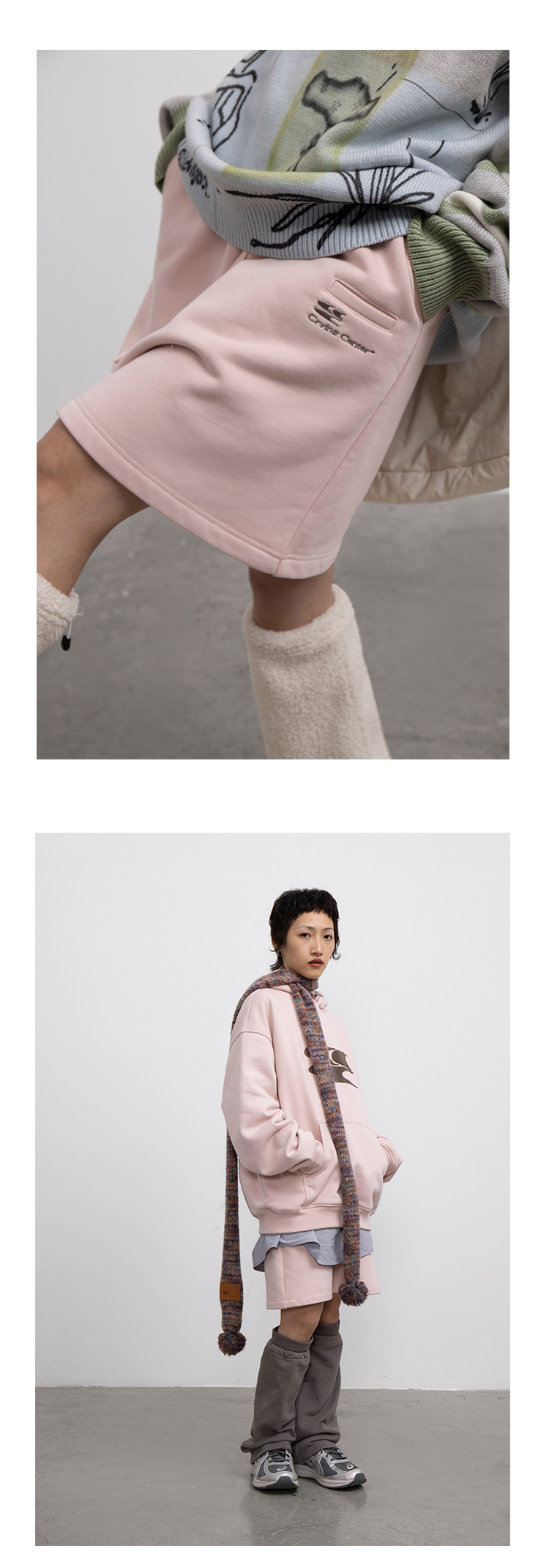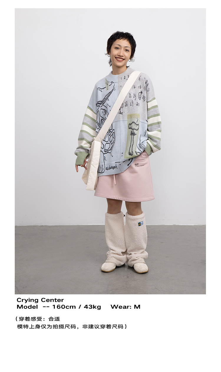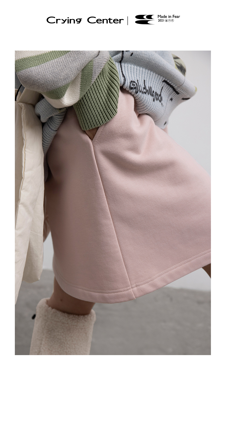 CryingCenter 浅花灰/泪粉色加绒磨毛卫衣裙A字裙半裙短裙橡筋头