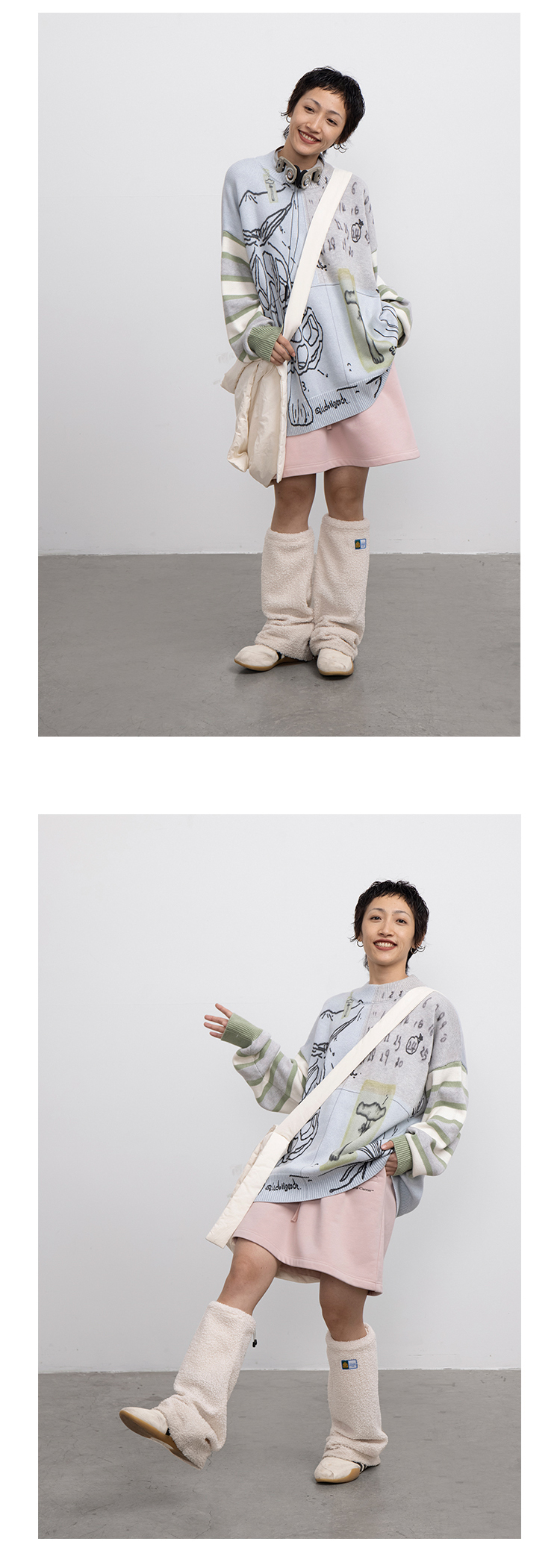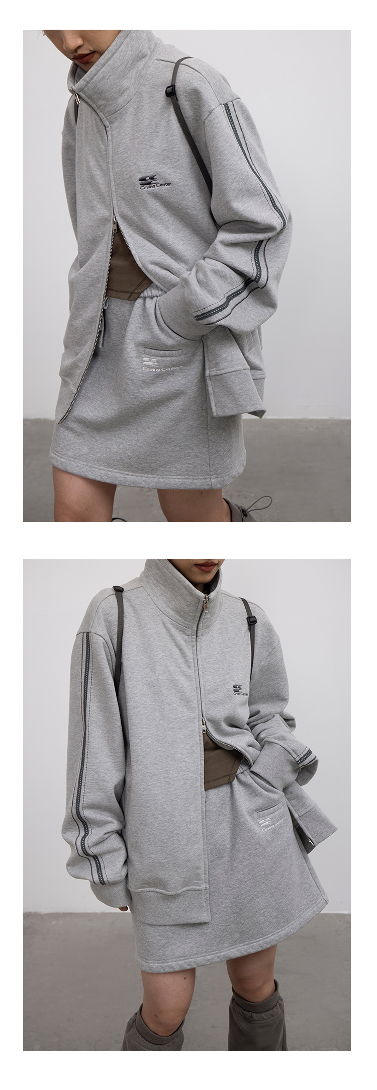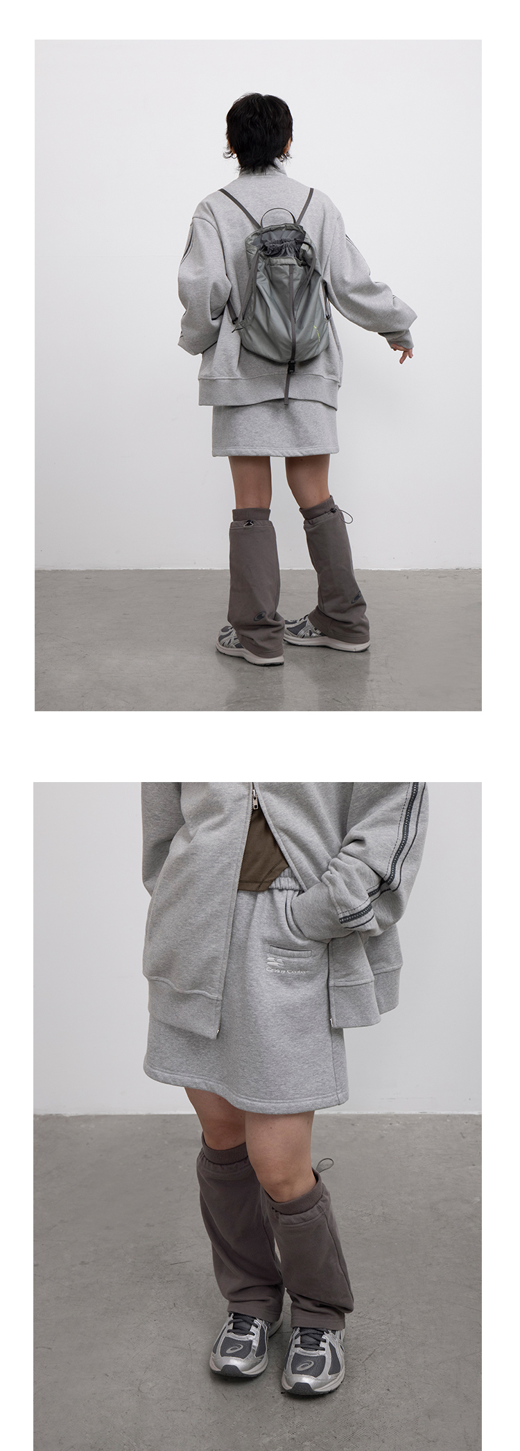 CryingCenter 浅花灰/泪粉色加绒磨毛卫衣裙A字裙半裙短裙橡筋头