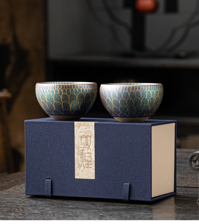 敦煌研究院【莲境窑变彩对盏套装】博物馆文创礼品茶具套装父亲节礼物