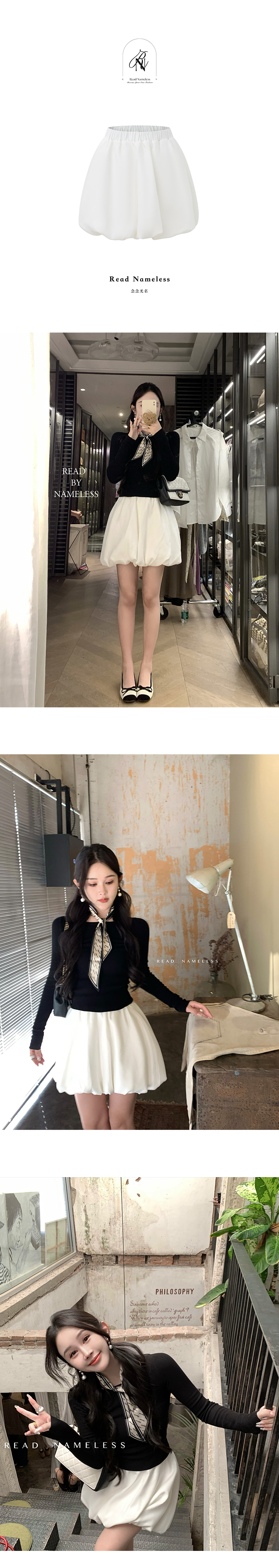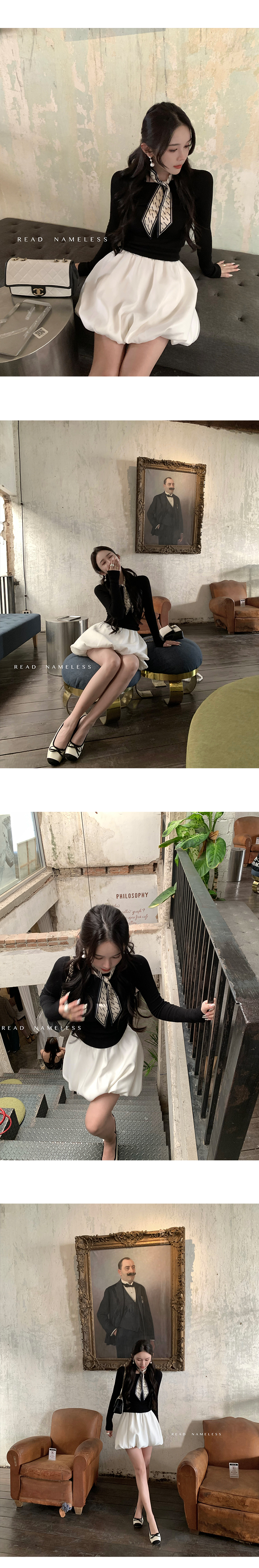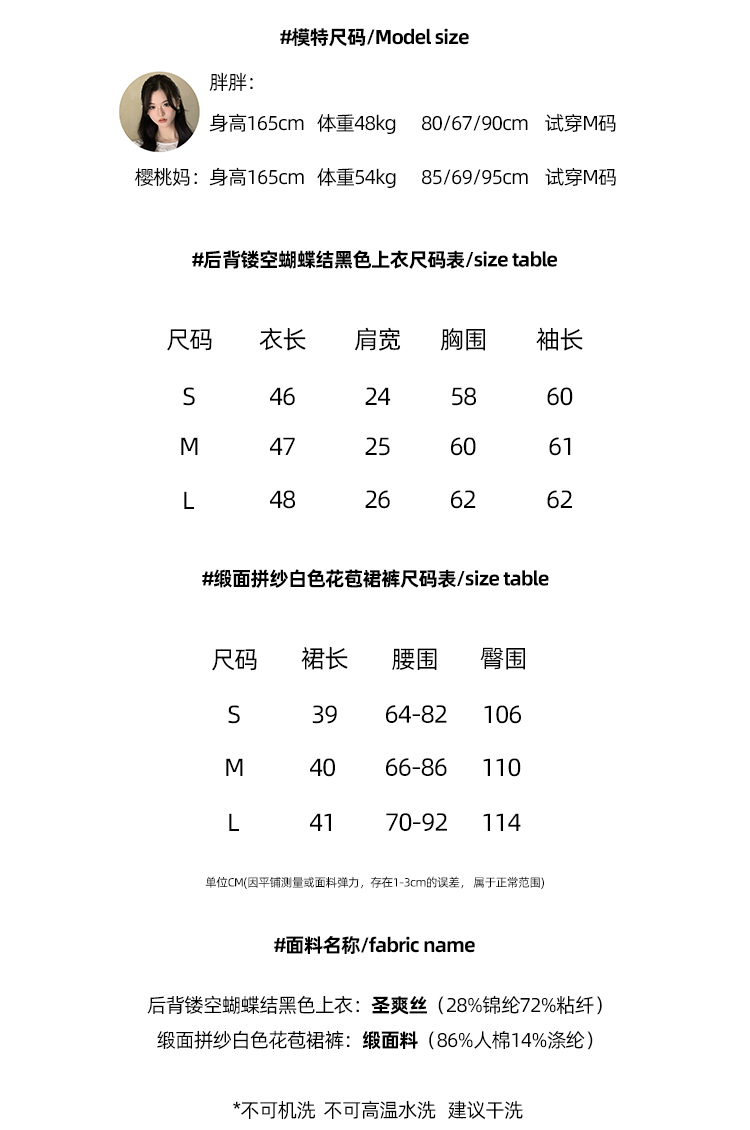 Read Nameless /后背镂空蝴蝶结黑色上衣+缎面拼纱白色花苞裙裤2025/3/15