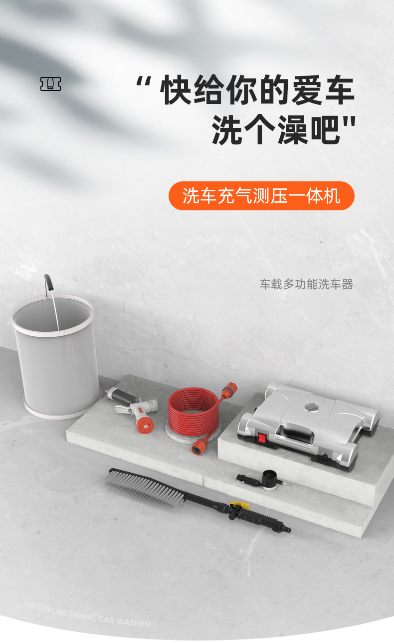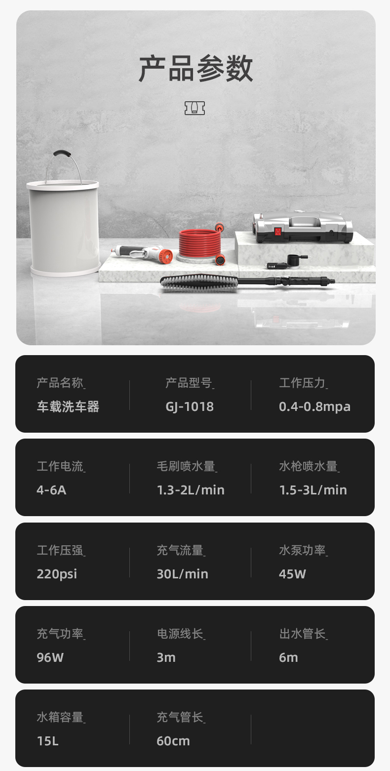 车管家 车载洗车器 12V高压清洗 洗车神器套装 GJ-1018 银灰色