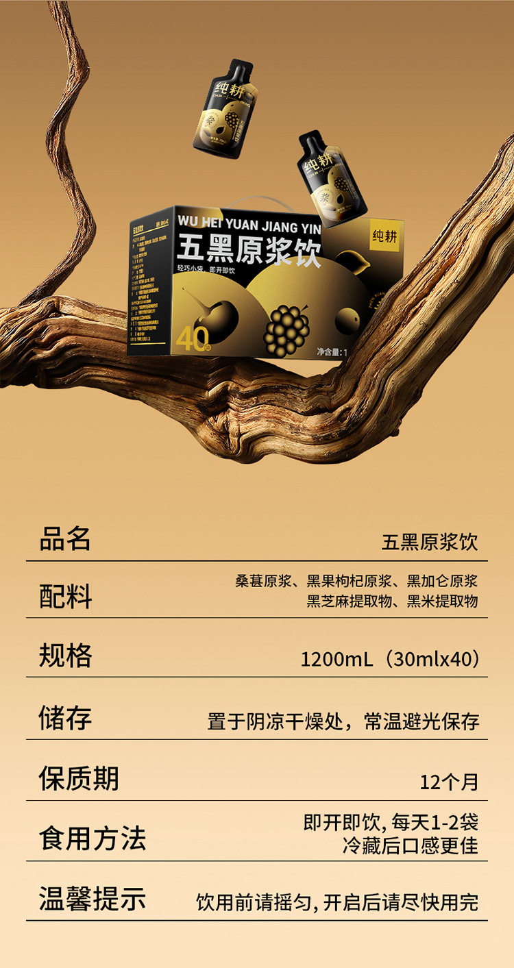 严选 | 杞里香纯耕五黑原浆饮量贩装 30ml*40袋/箱 古方焕新 科学配比 元气活力