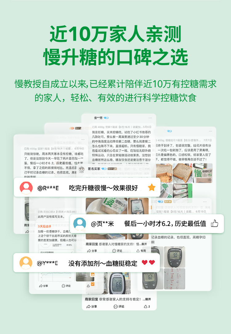 「慢教授ProfSlow」(原慢糖家),专注于科学控糖的健康营养品牌。由2位浙大校友创立,联合全球优秀的食品科学家和健康营养专家,为有控糖需求的用户研发好吃、低升糖的健康食品和营养补充剂。