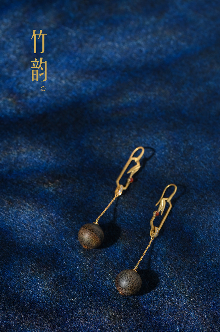 以 “竹” 为灵感,耳环的金属部分做了竹节形态的线条设计。