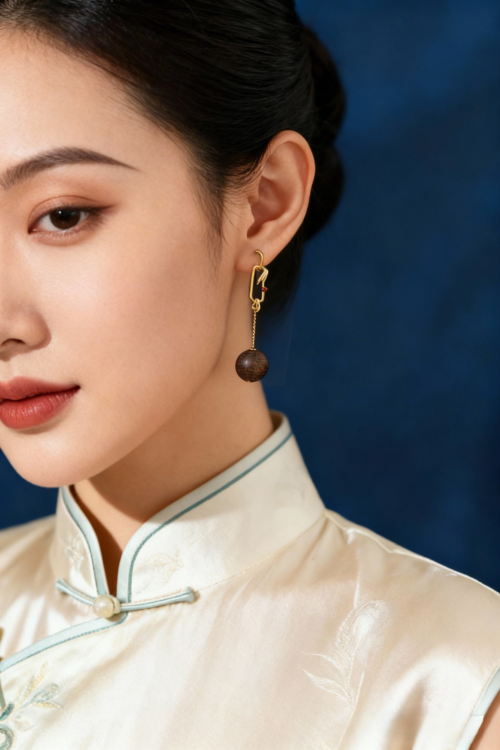 中式简约风:新中式改良旗袍能呼应耳环的东方雅致感。