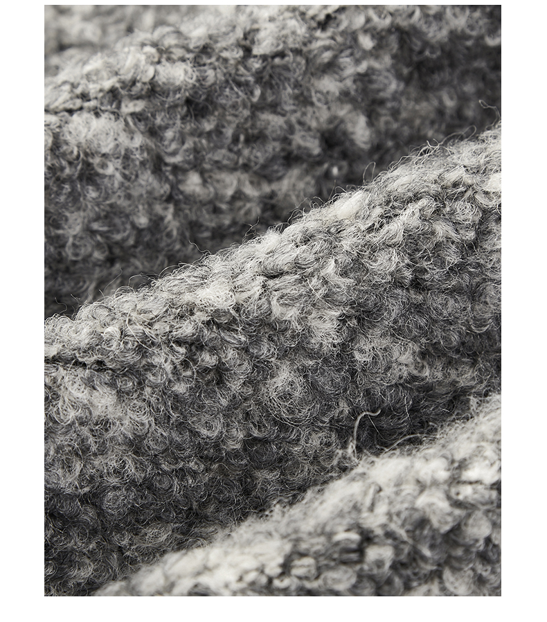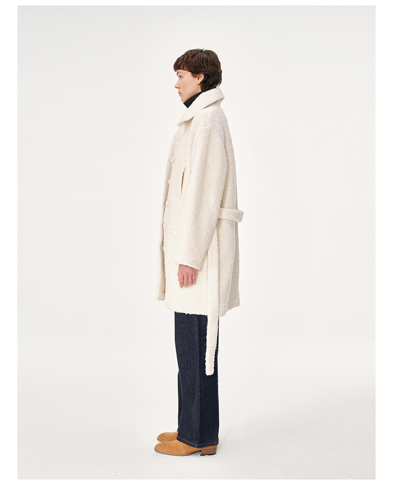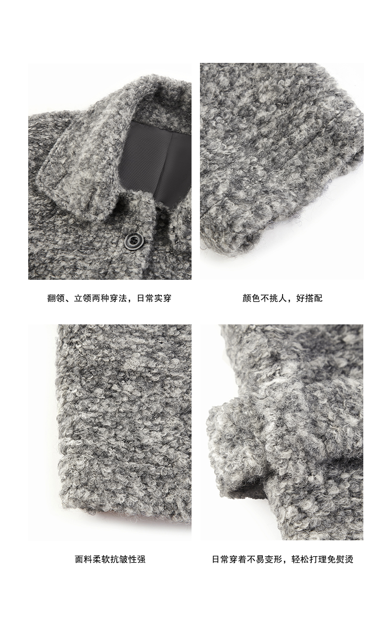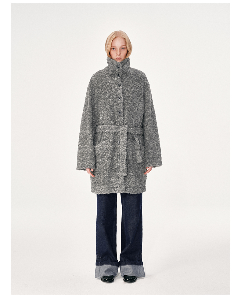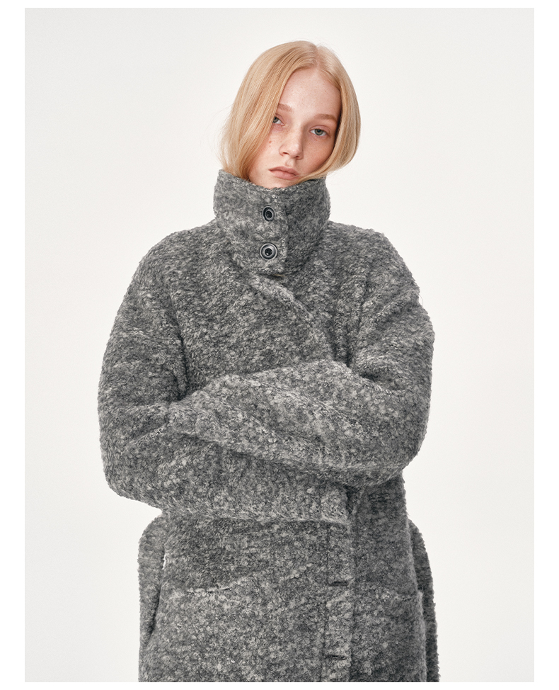 NUTH 羊毛混纺宽松保暖中长款毛呢大衣外套女 灰色/白色