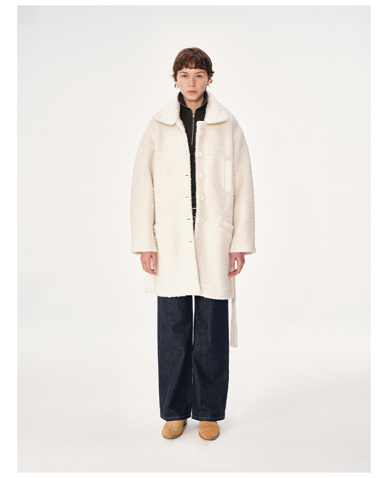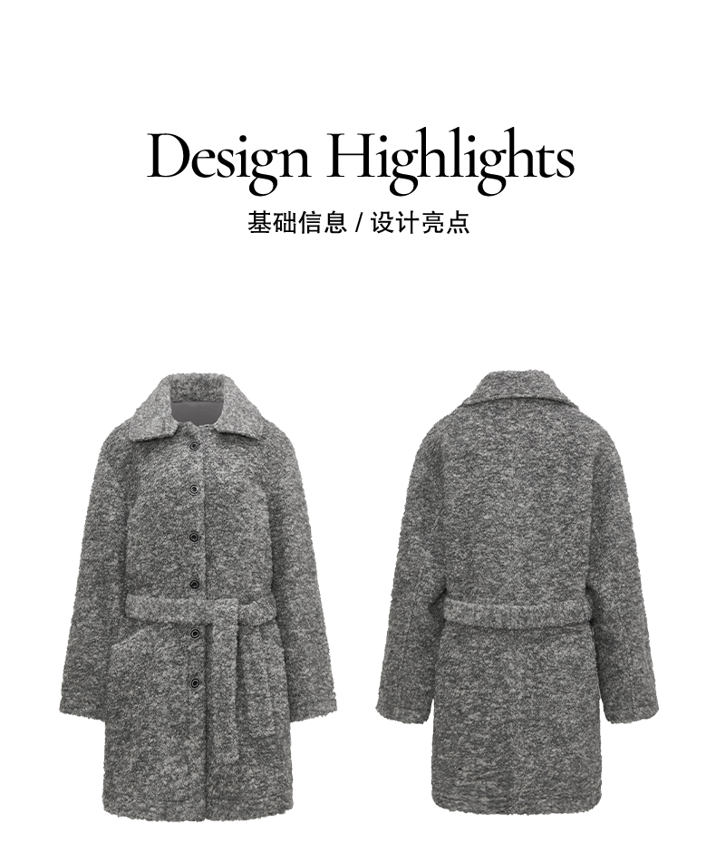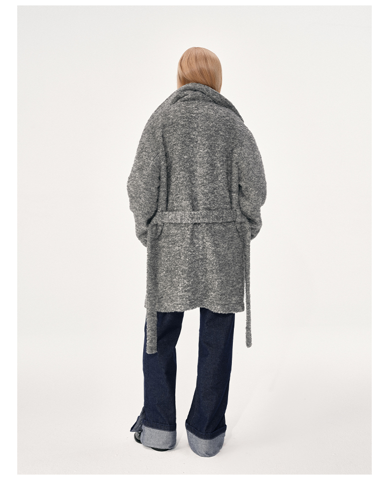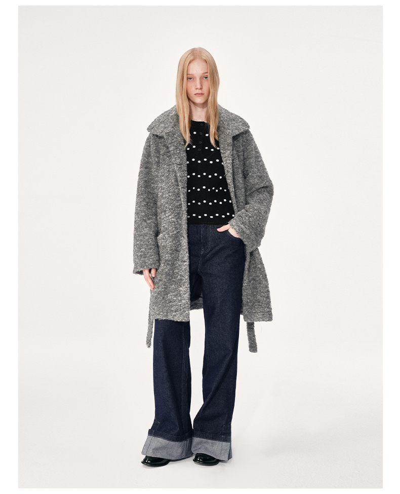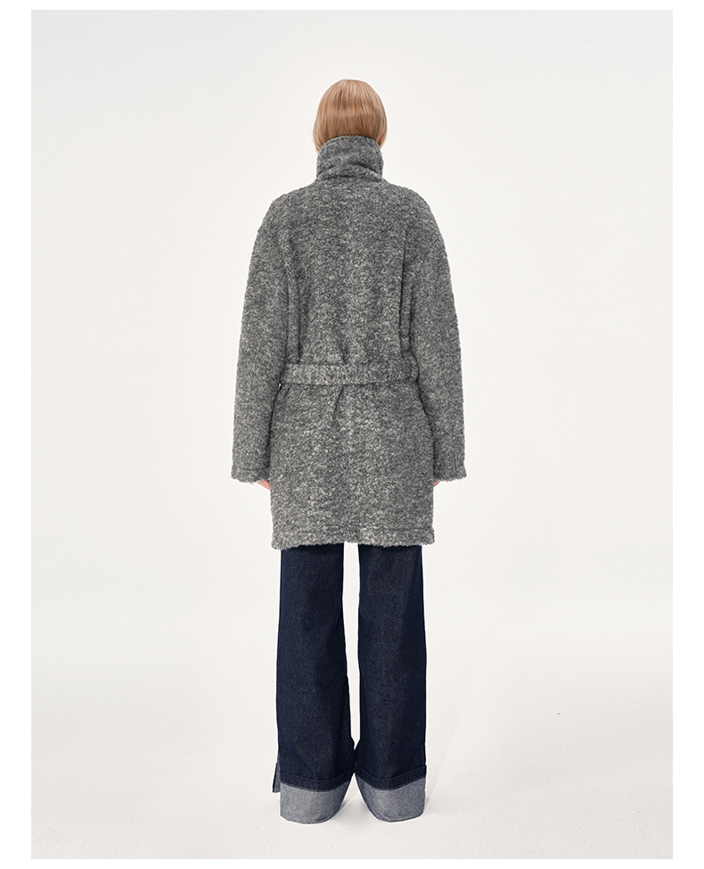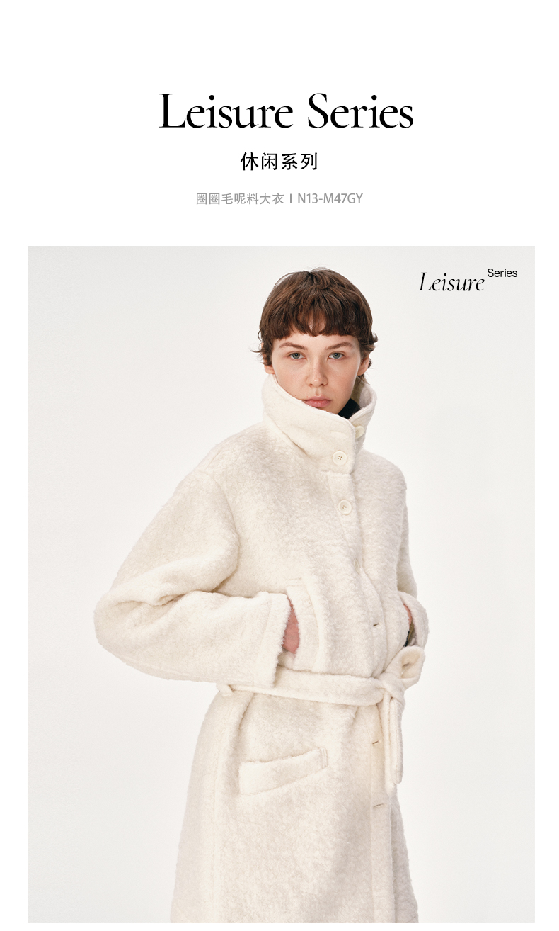NUTH 羊毛混纺宽松保暖中长款毛呢大衣外套女 灰色/白色