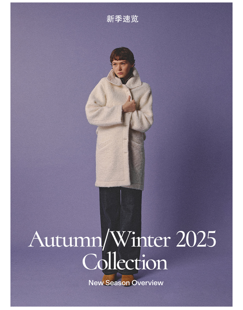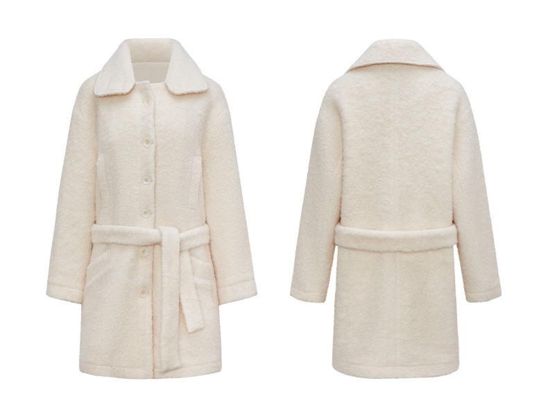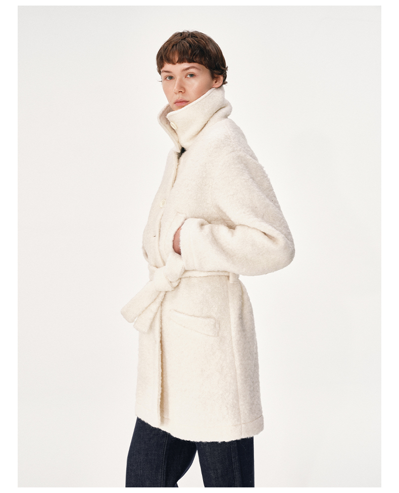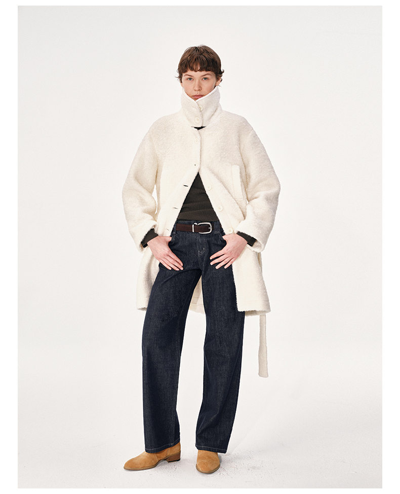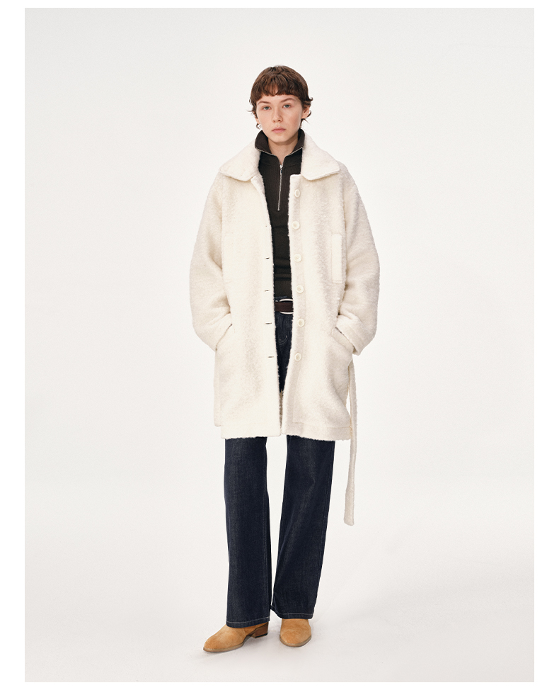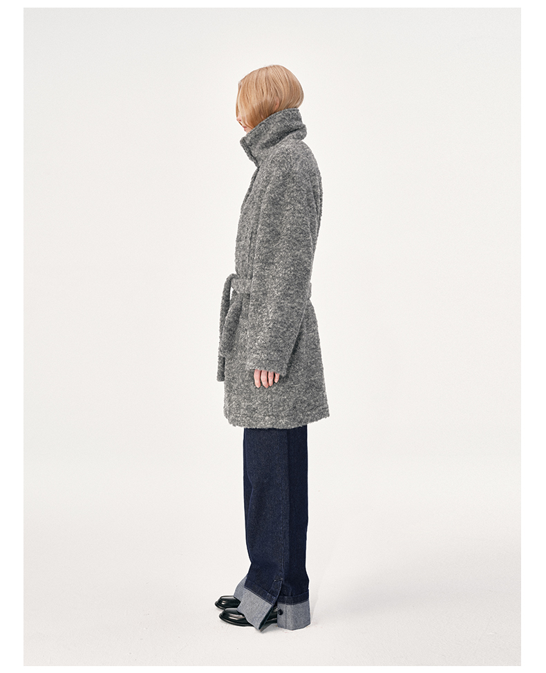 NUTH 羊毛混纺宽松保暖中长款毛呢大衣外套女 灰色/白色
