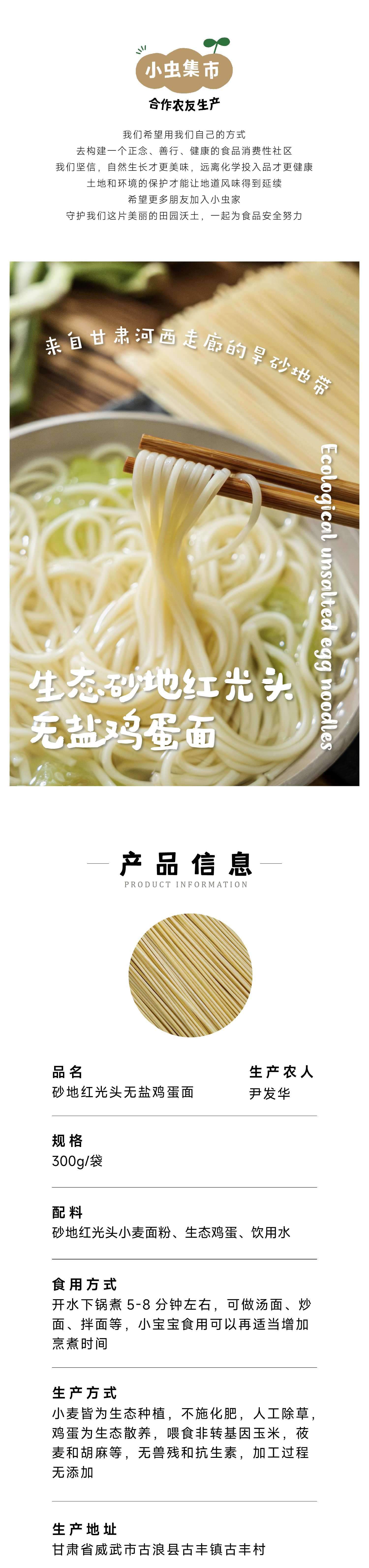 生态砂地红光头无盐鸡蛋面 300g/袋 I 来自甘肃河西走廊的旱砂地带,生产者:尹发华 &【公平贸易农人定价】