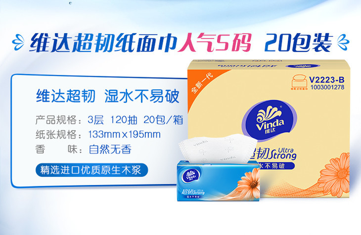 维达婴儿抽纸S码100抽24包整箱装(自然无香)/维达抽纸超韧纸巾3层S码120抽20包/维达卷纸蓝色经典 超韧有芯卷纸巾4层200g卫生纸卷筒纸厕所纸