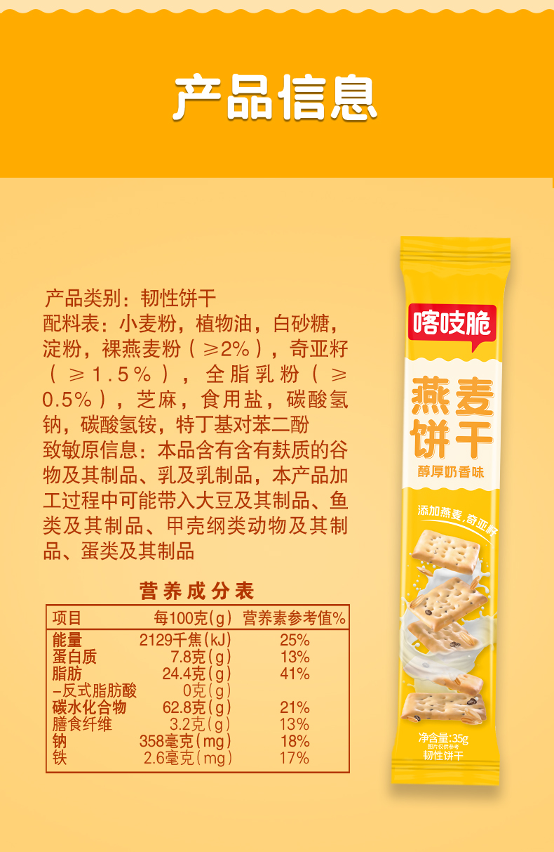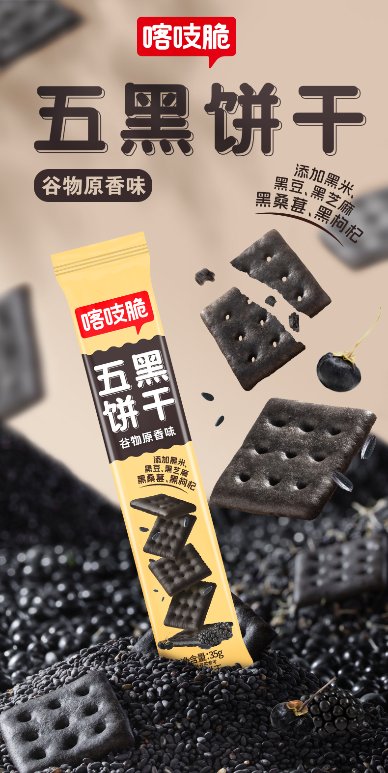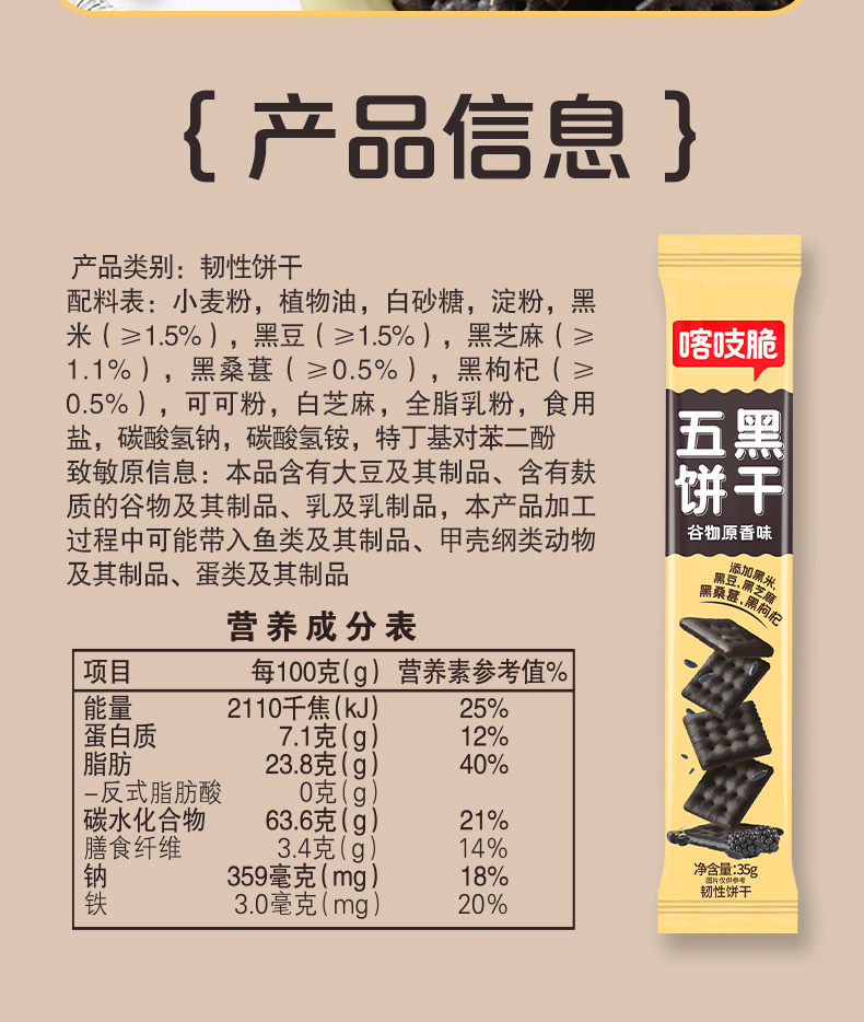 洽洽喀吱脆五黑饼干 燕麦饼干 35g*12支 非油炸 含有蛋白质 膳食纤维 0反式脂肪酸