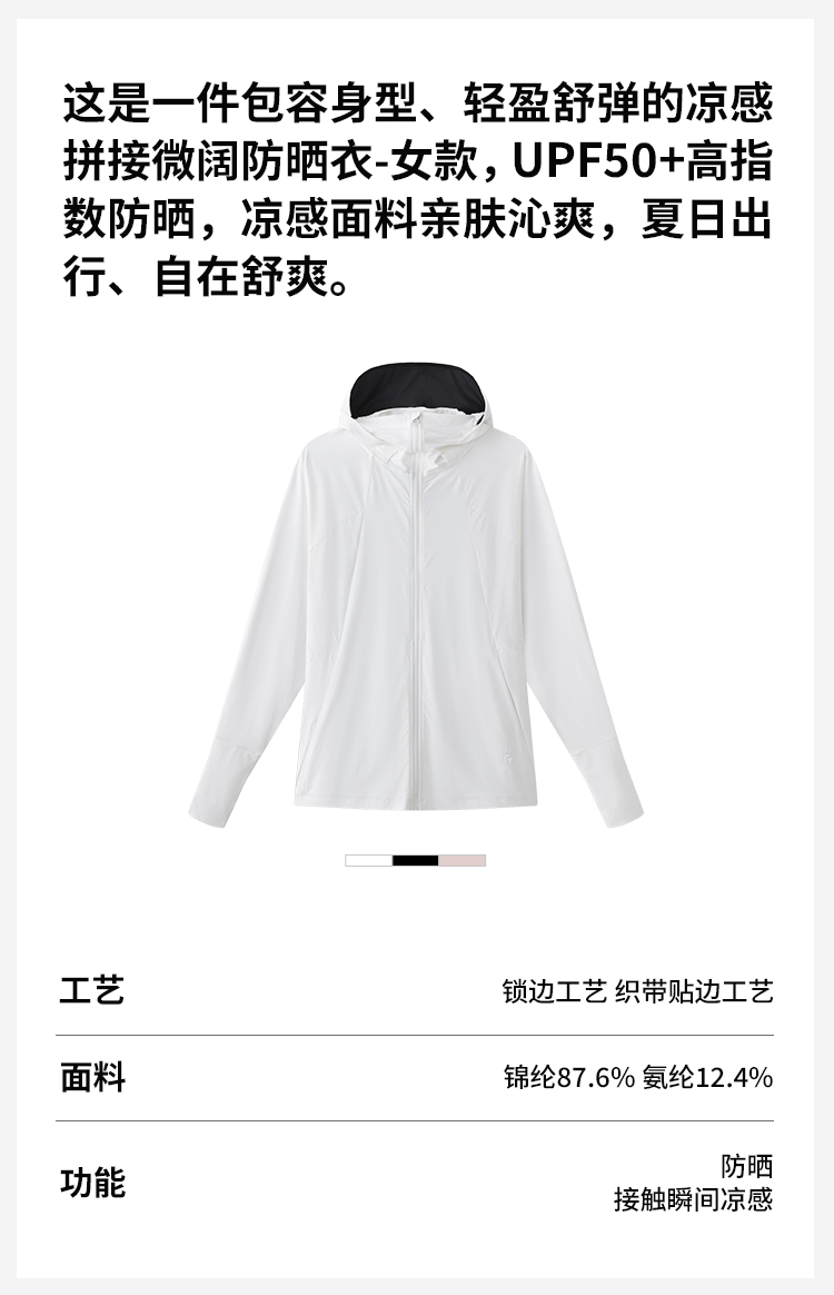 拇指白小衫凉感拼接微阔防晒衣-女款无限系列