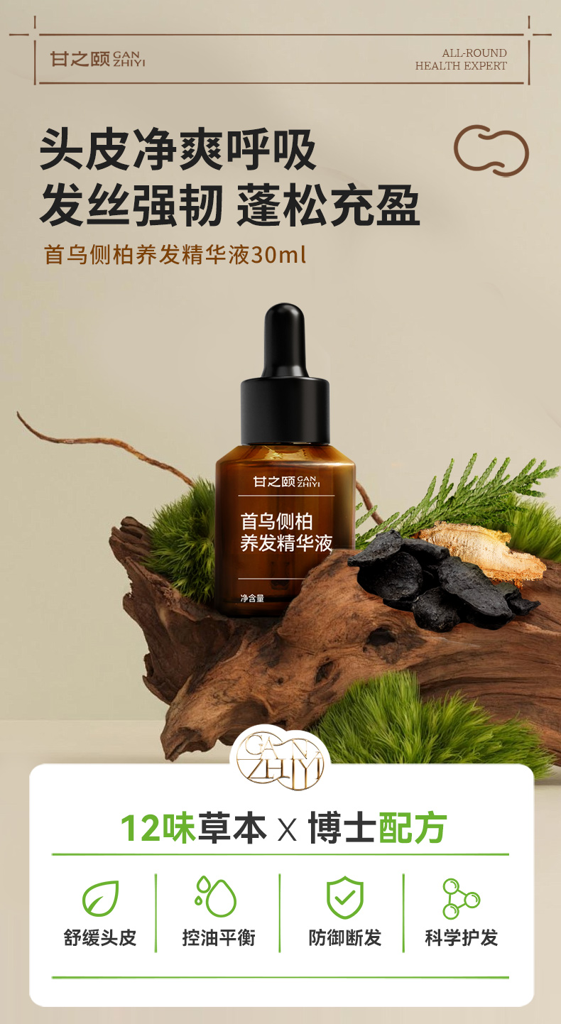 甘之颐 首乌侧柏养发精华液 30ml/瓶 草本液 线下同款(2件8.5折,送1个导液梳)