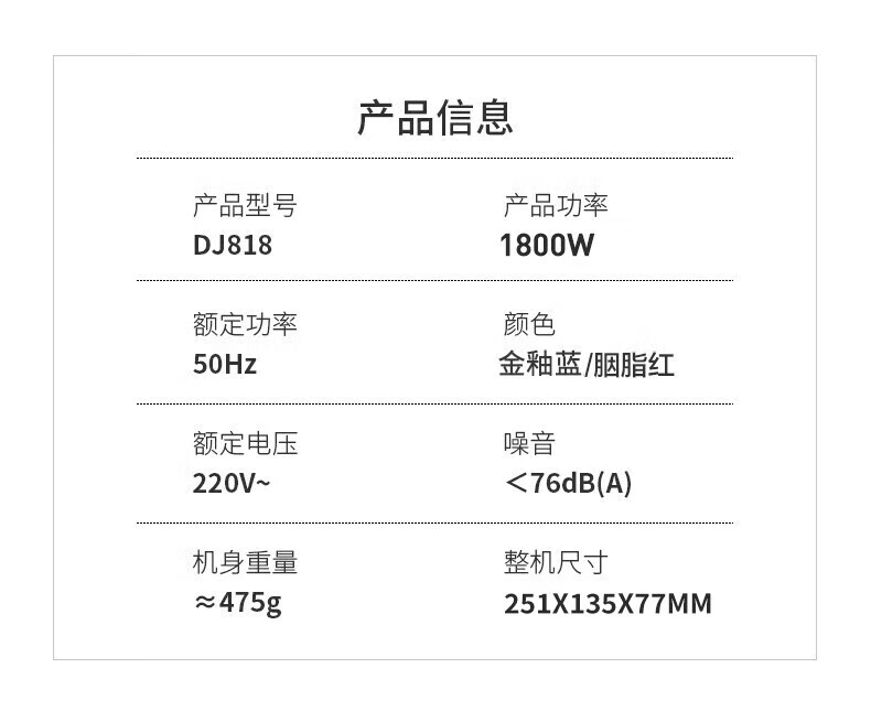 超人电吹风家用吹风机大功率负离子大风力速干低噪音便携吹风筒 DJ818