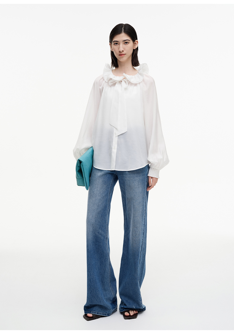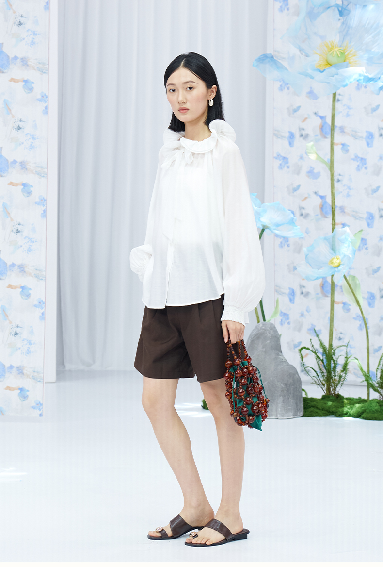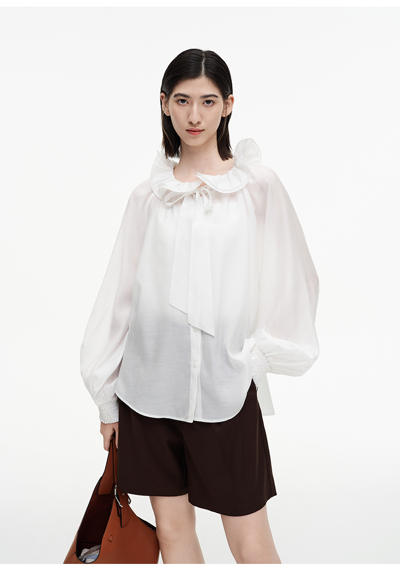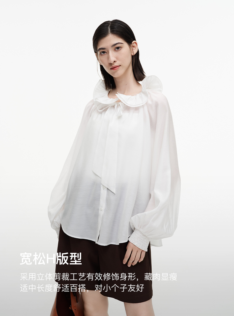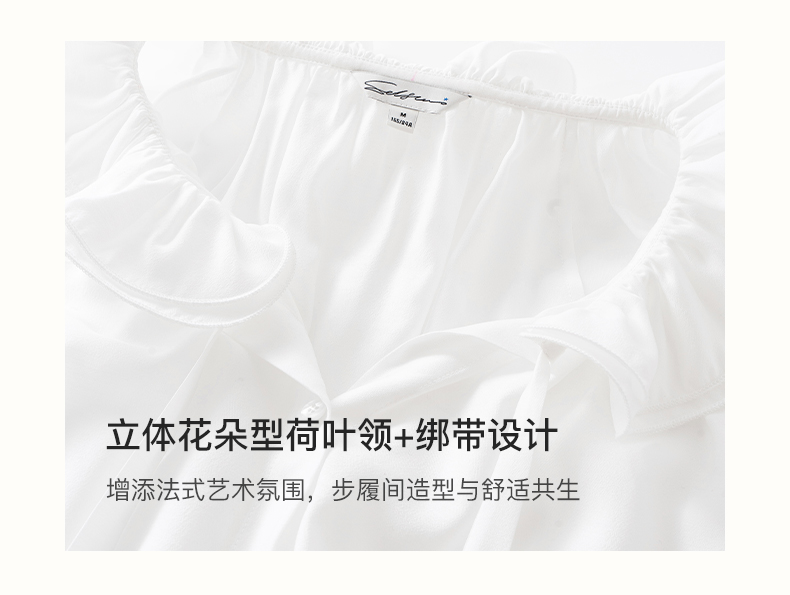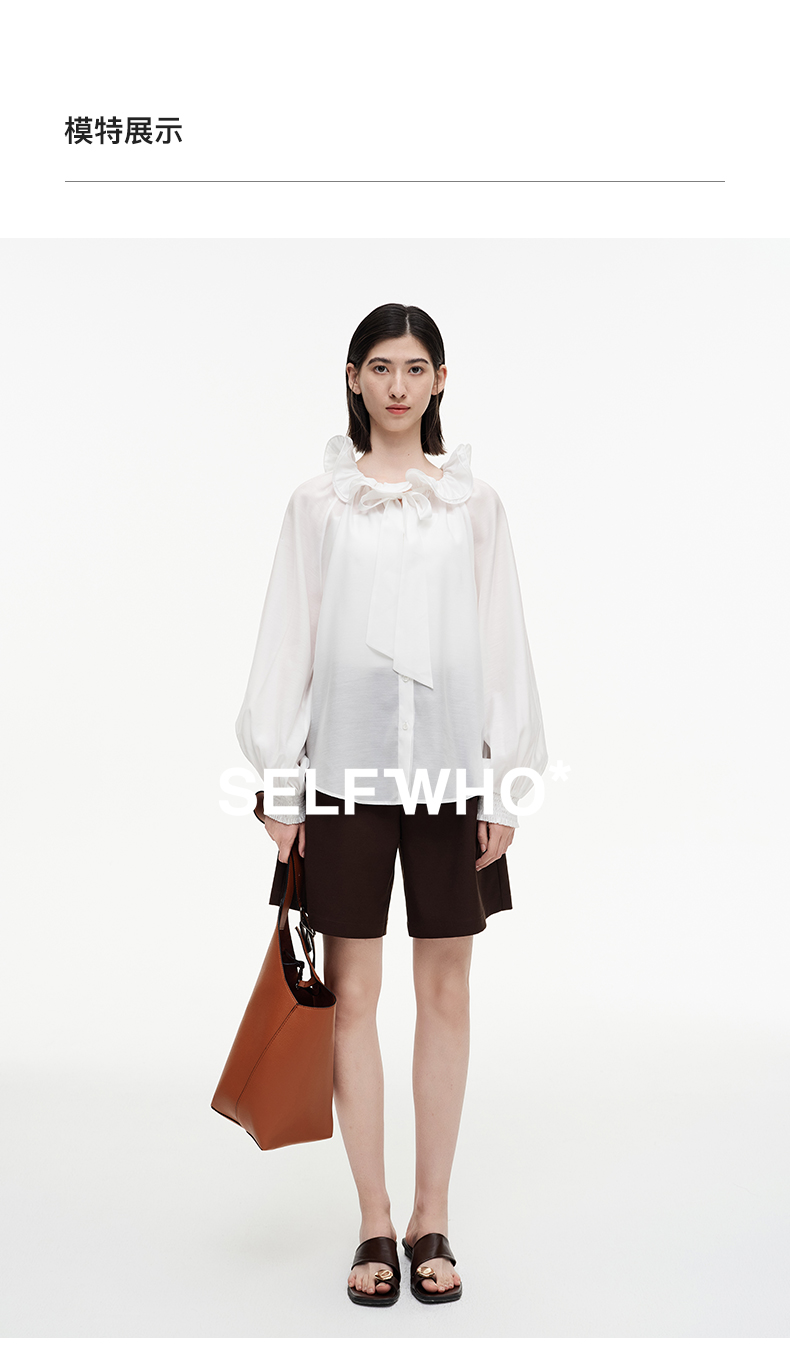 SELFWHO绿绒蒿系列莱赛尔醋酯荷叶领衬衫女2025秋新款花苞绑带衫