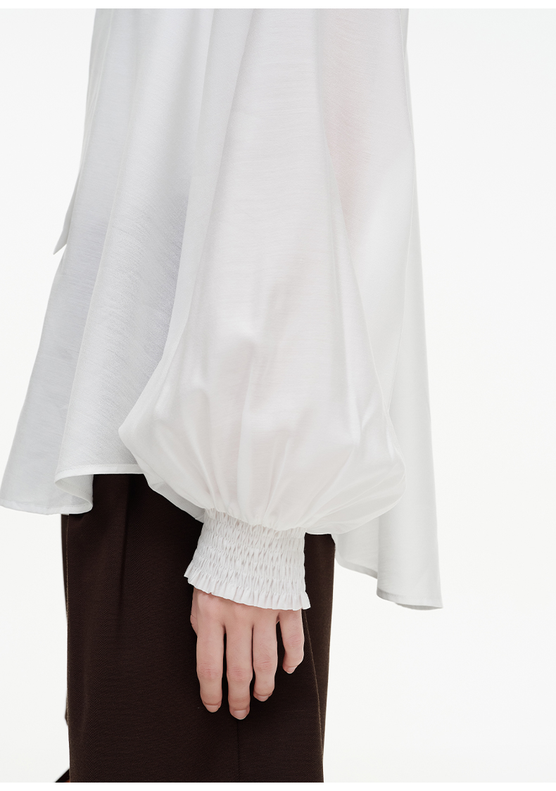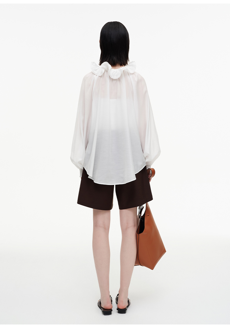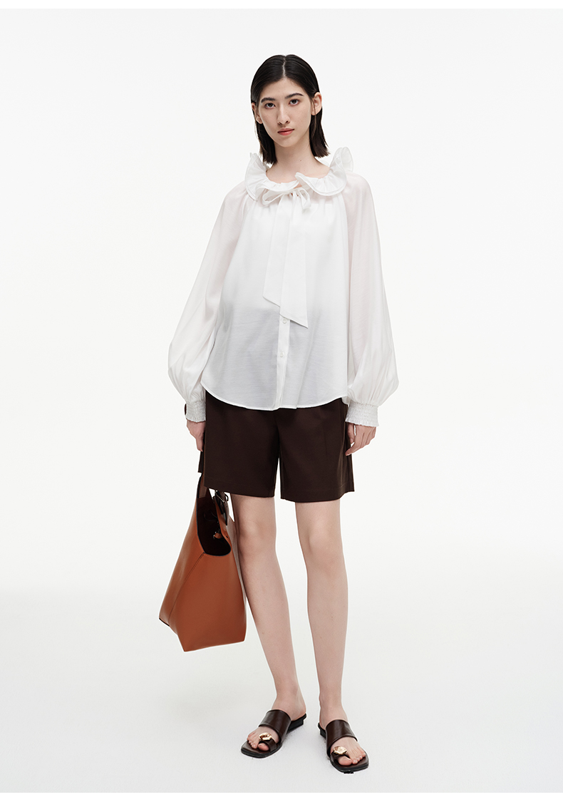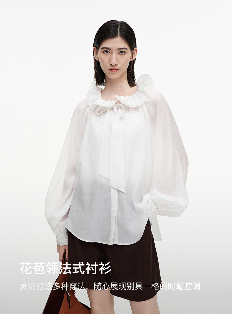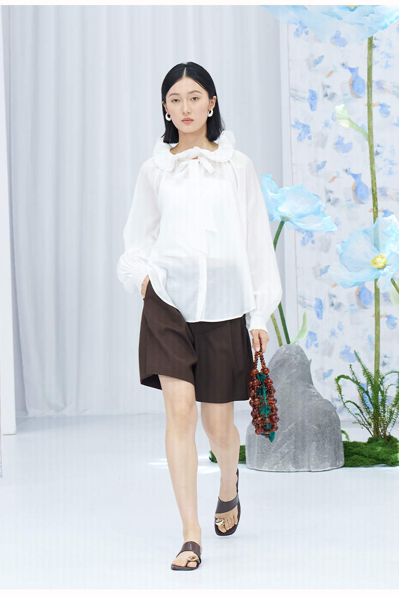 SELFWHO绿绒蒿系列莱赛尔醋酯荷叶领衬衫女2025秋新款花苞绑带衫