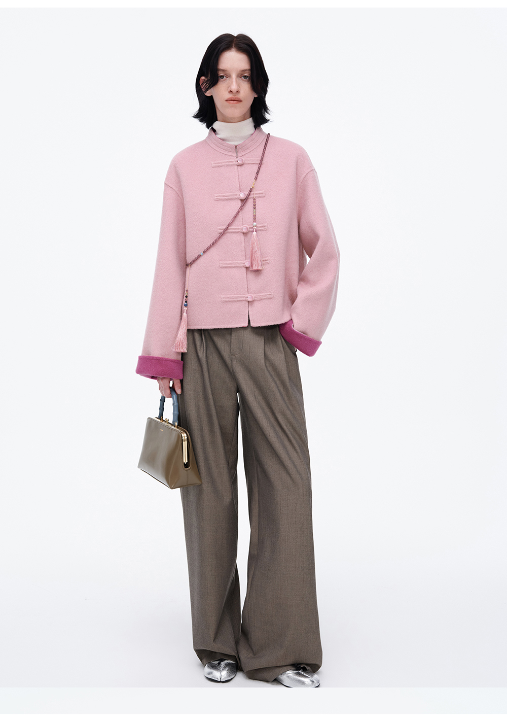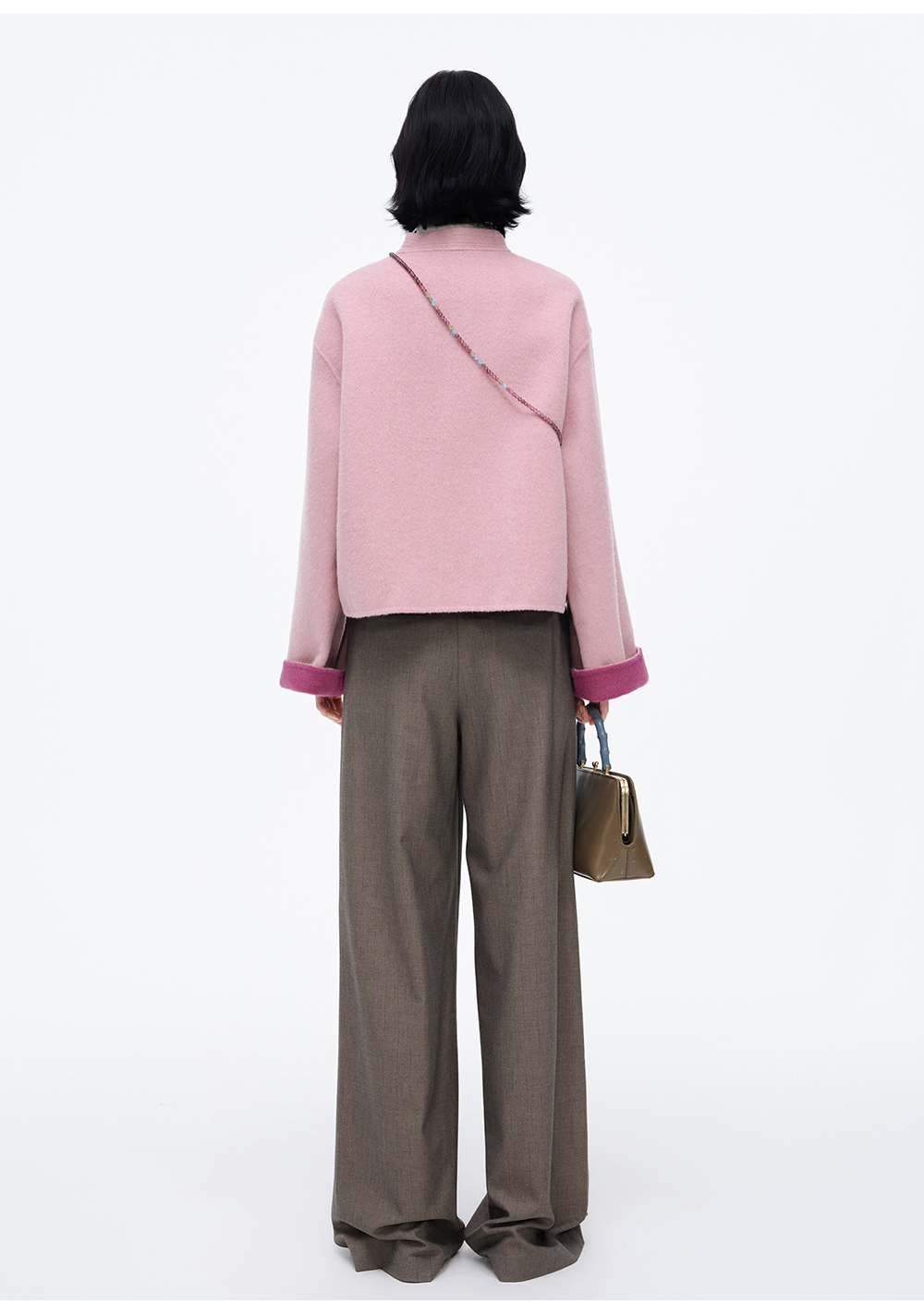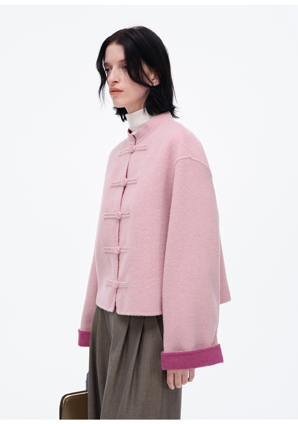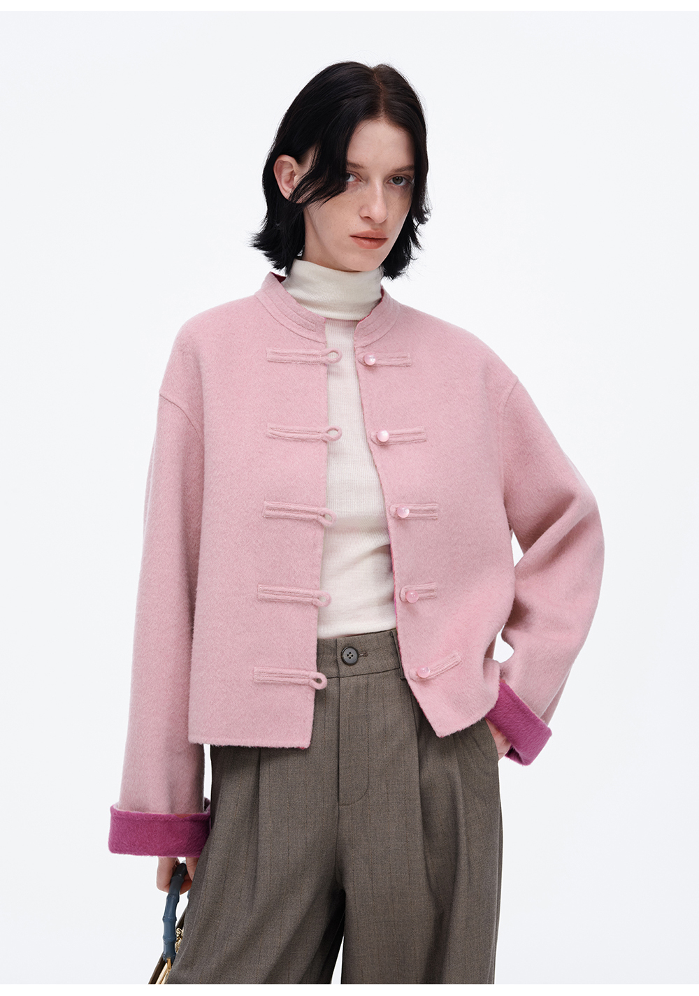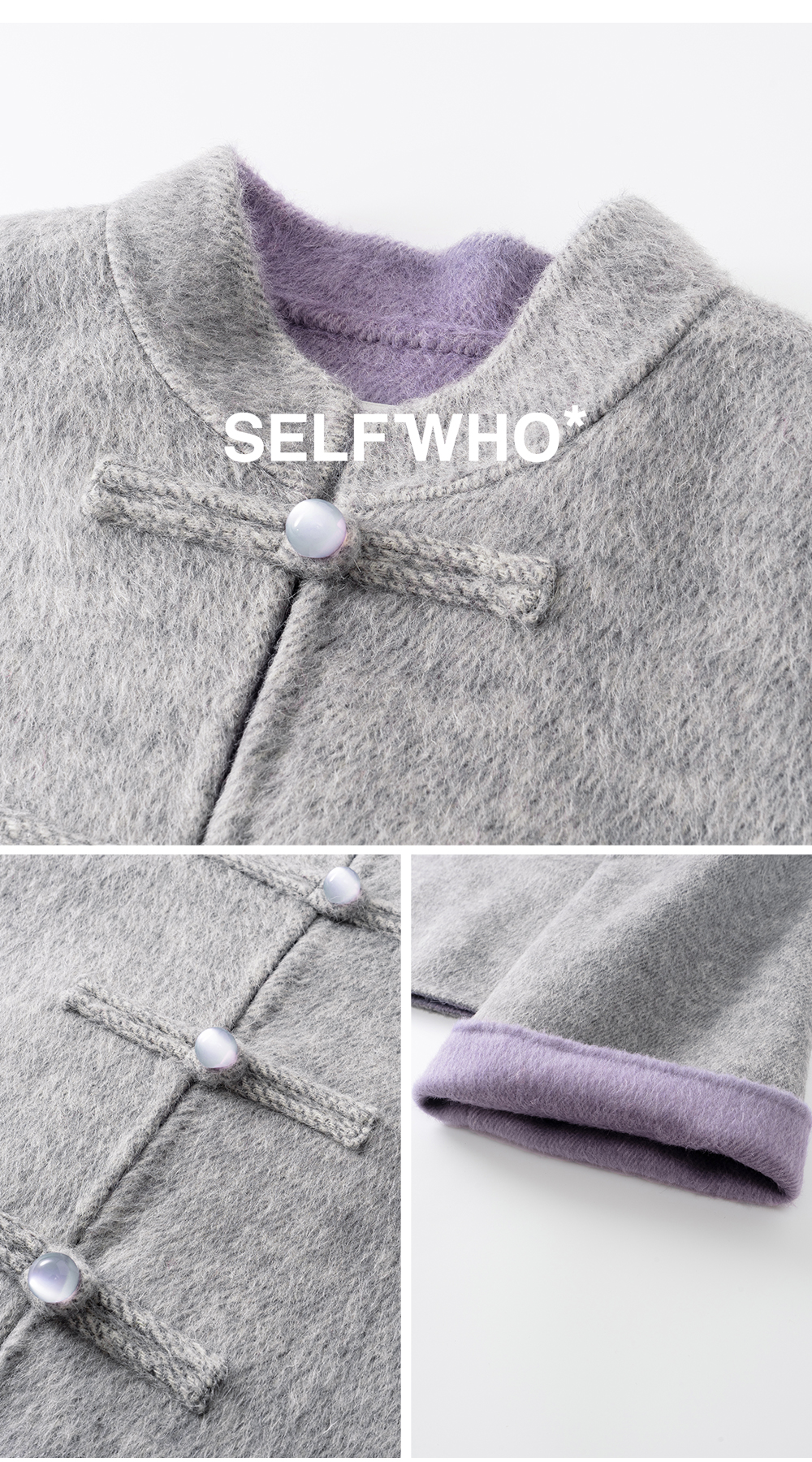 SELFWHO70支绵羊毛新中式盘扣双面呢外套女2025冬季新款撞色上衣