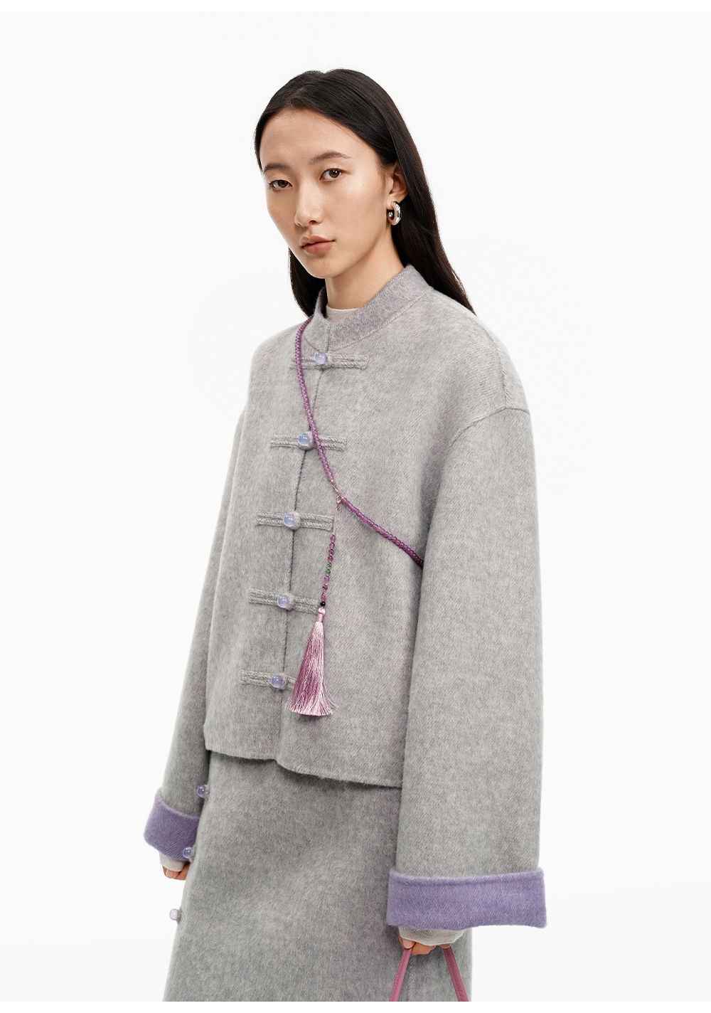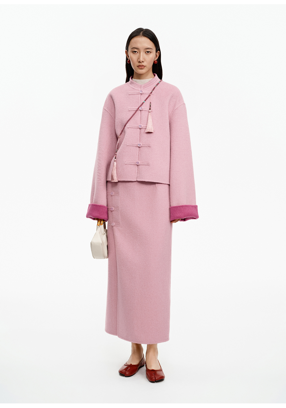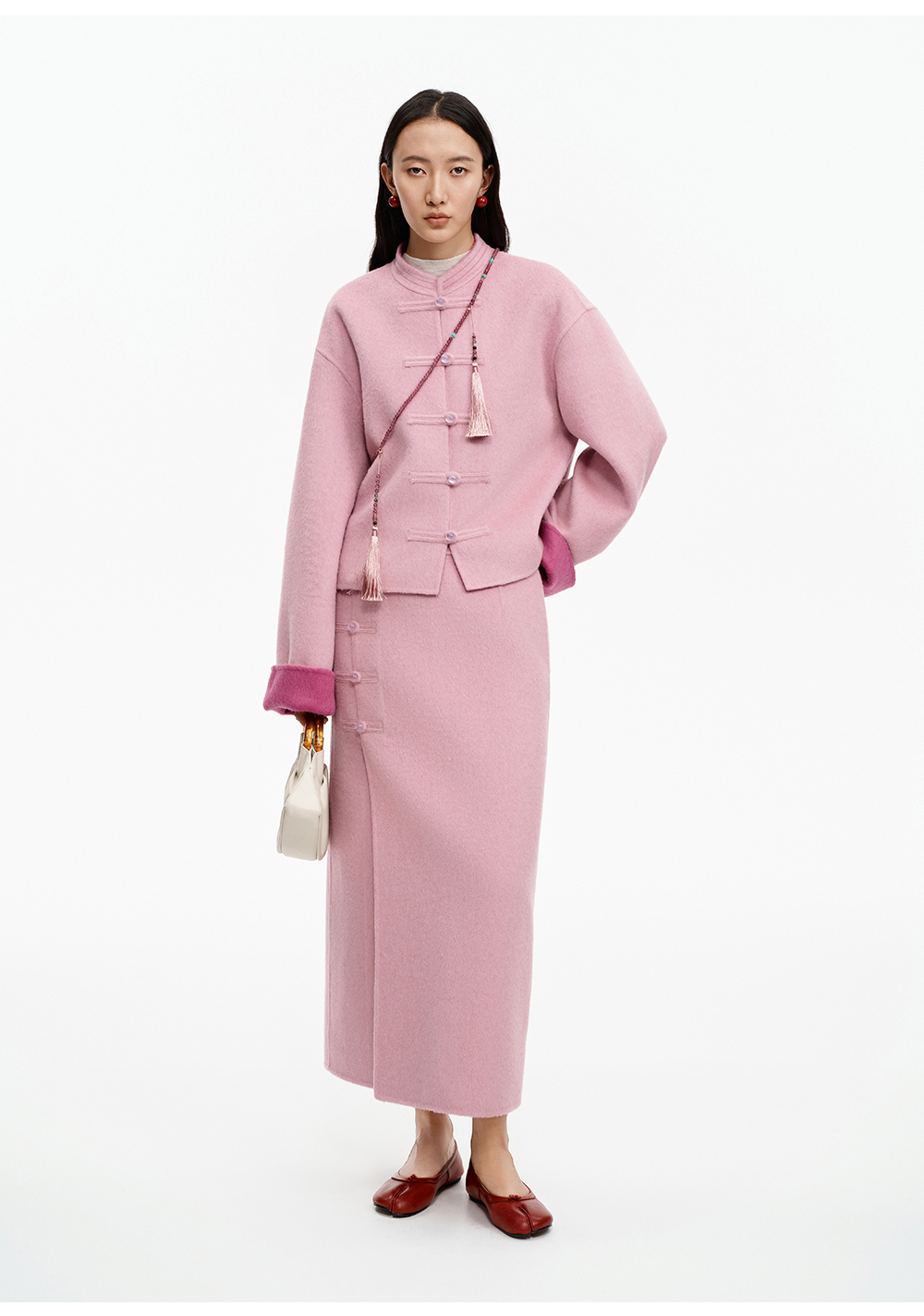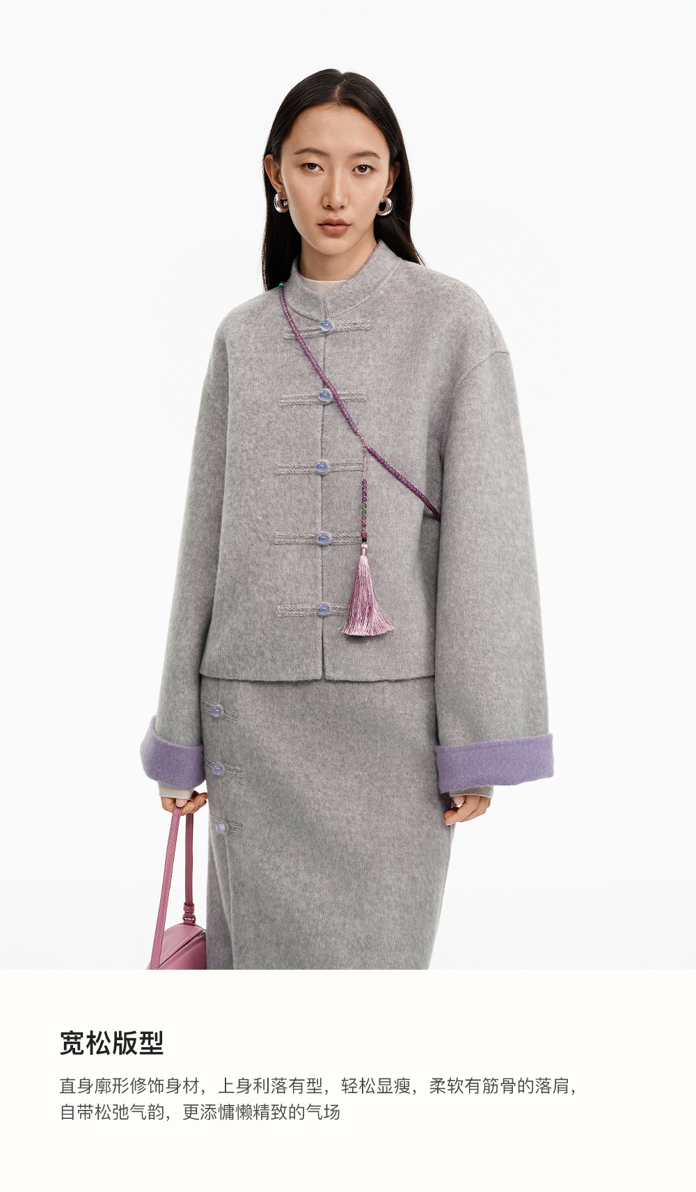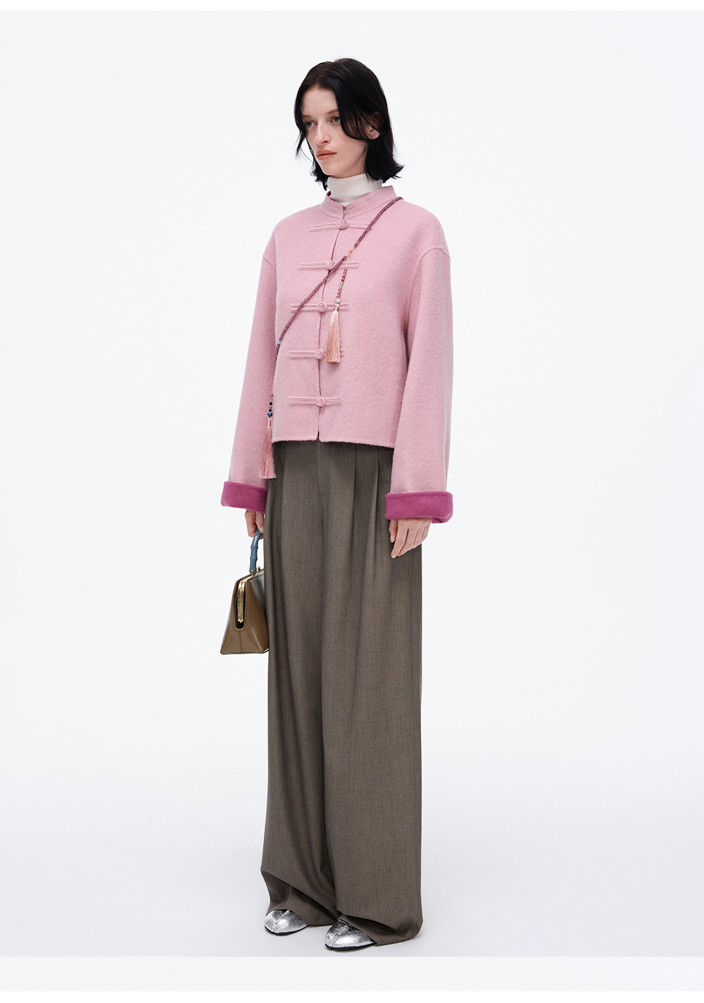SELFWHO70支绵羊毛新中式盘扣双面呢外套女2025冬季新款撞色上衣