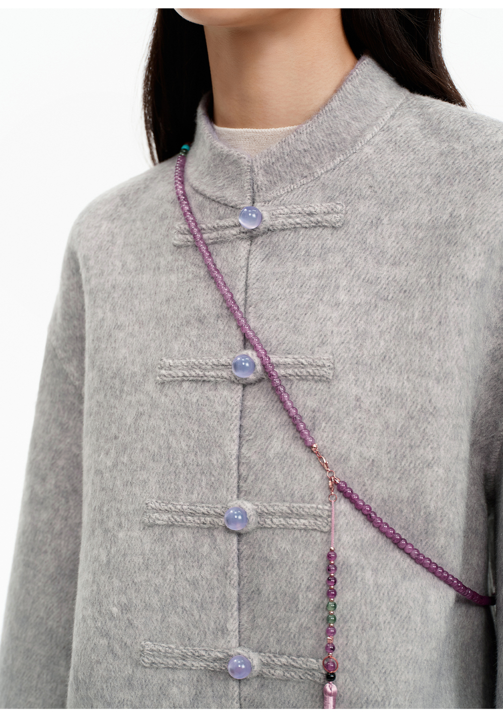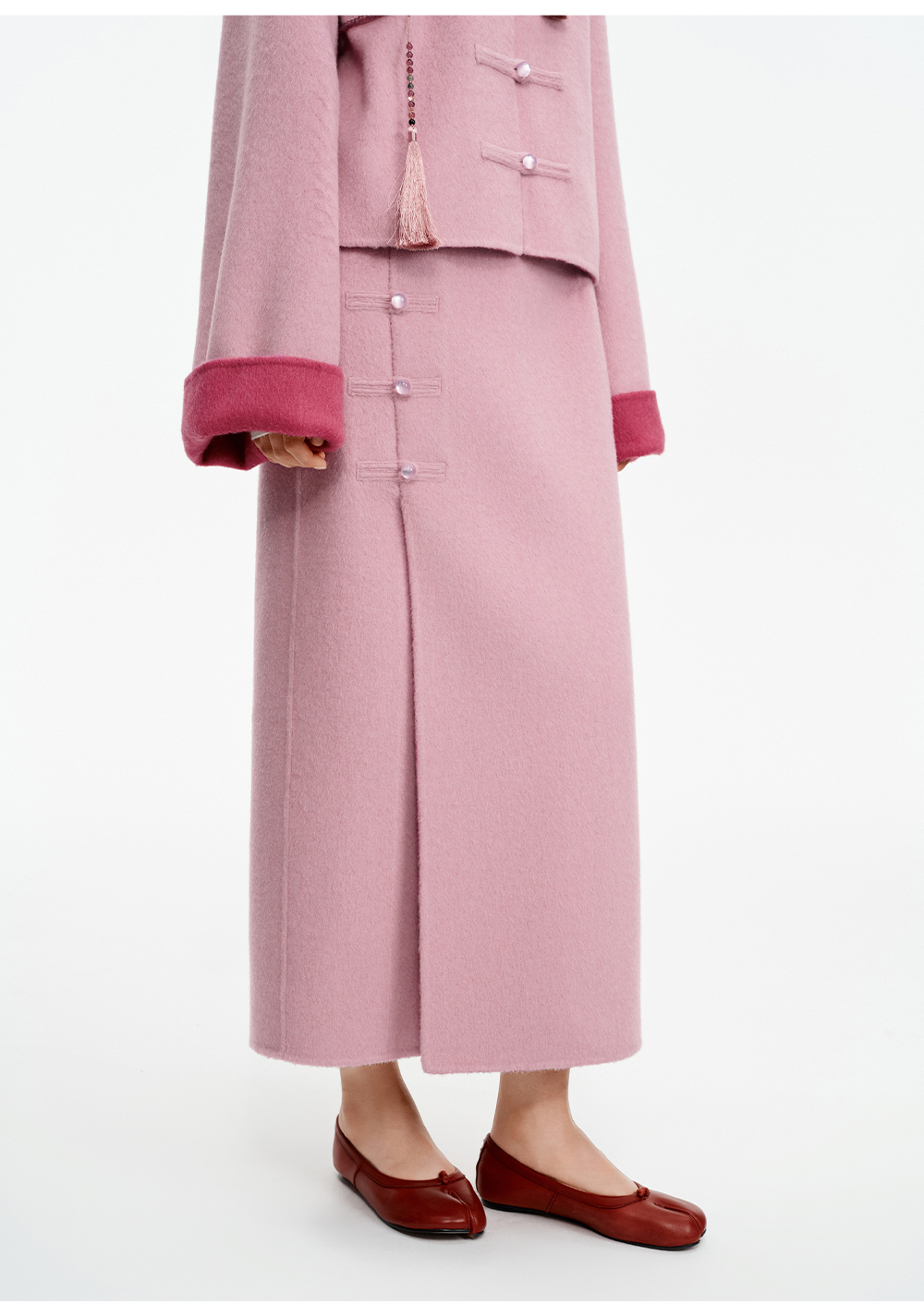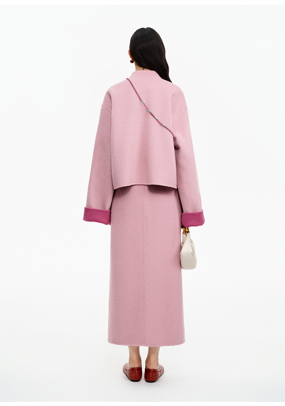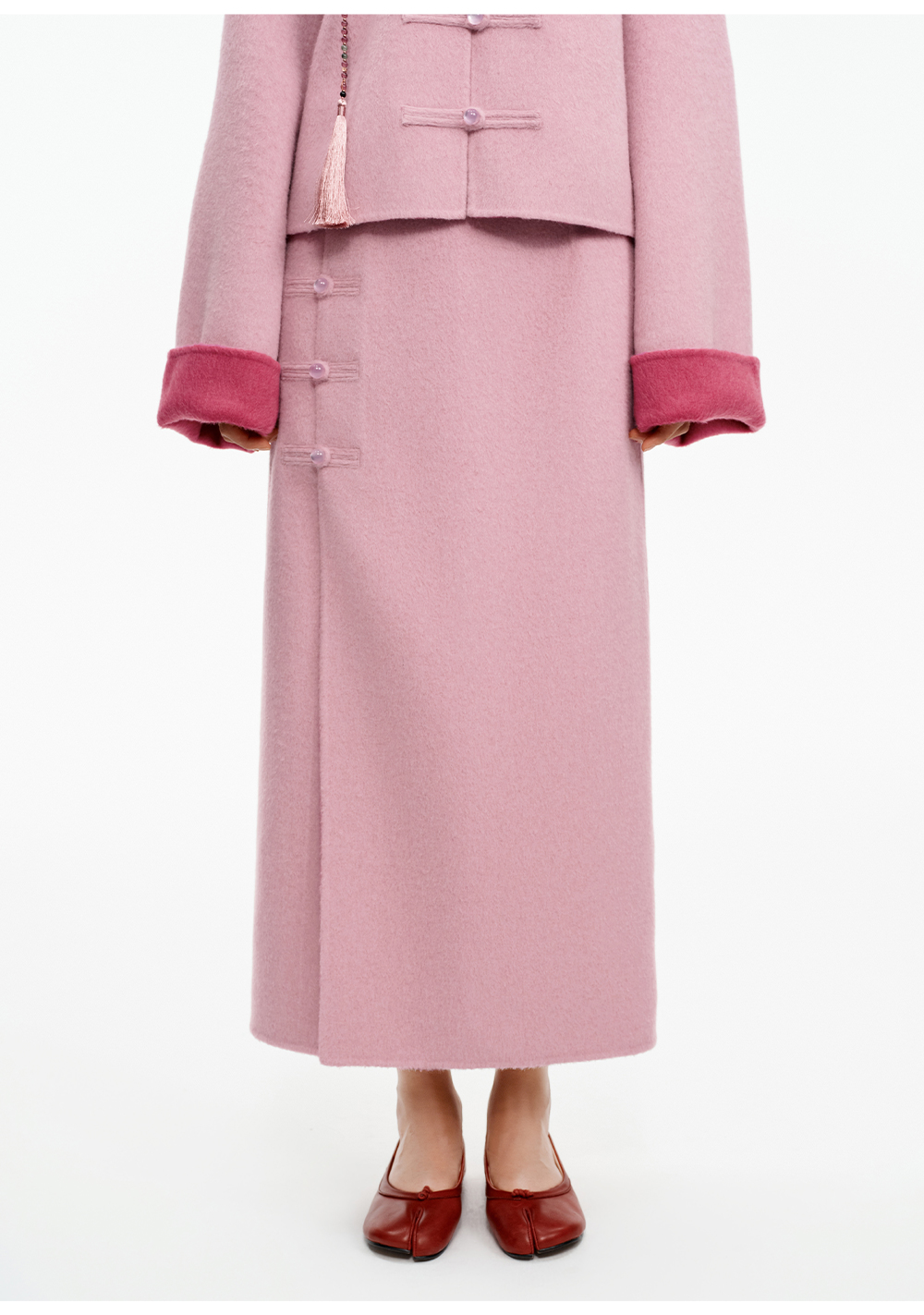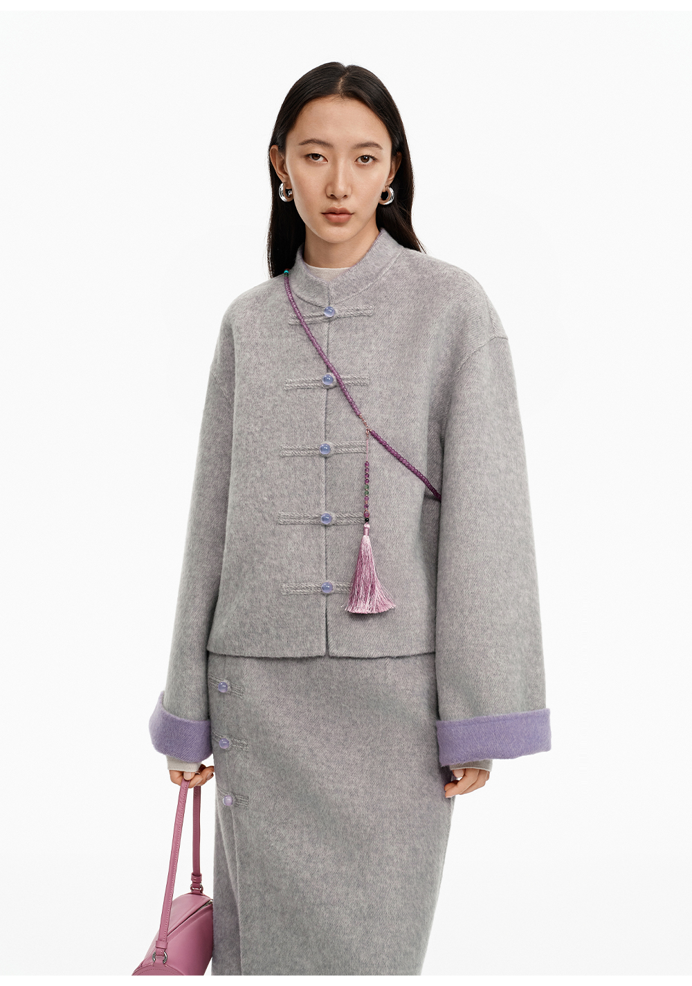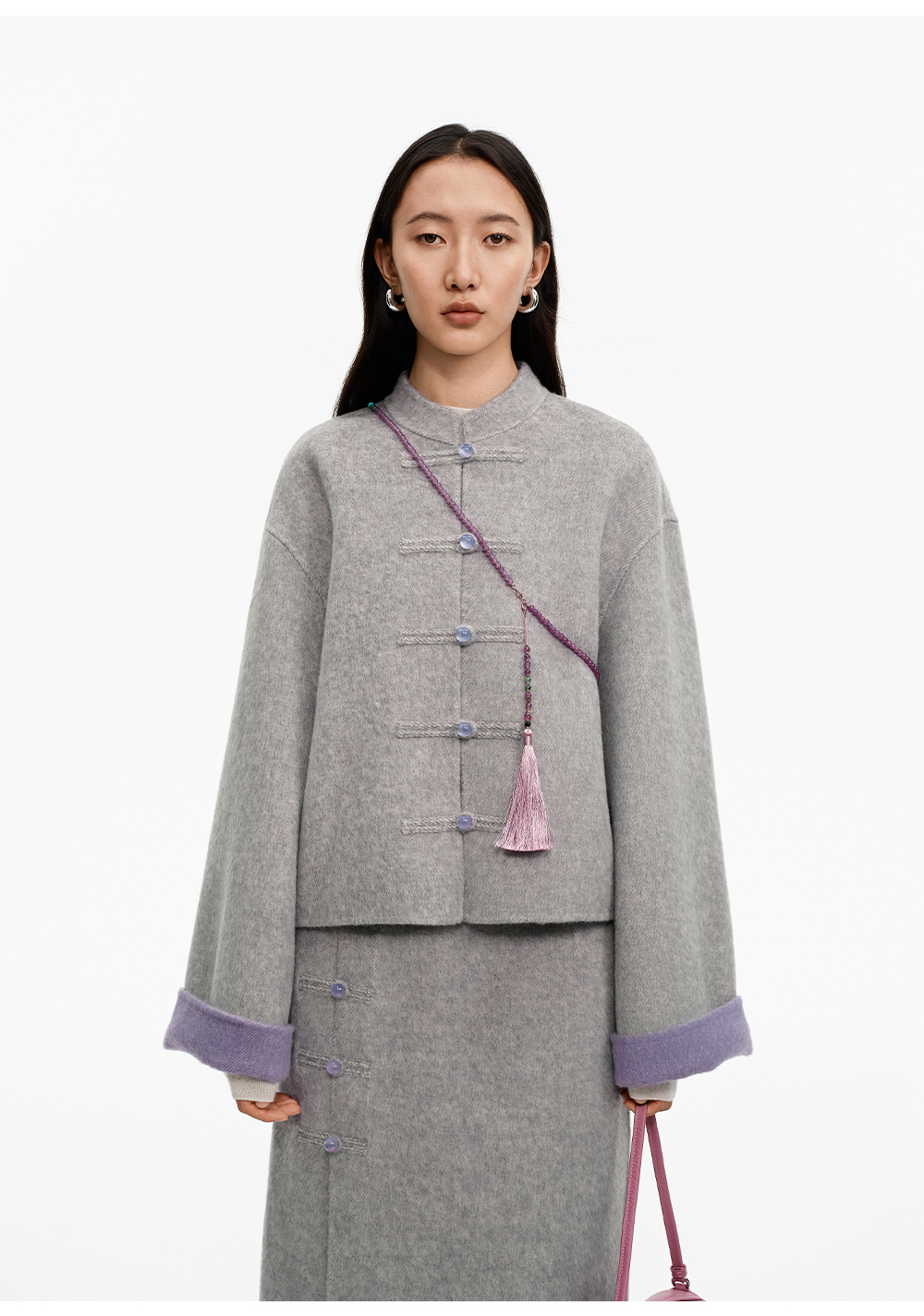 SELFWHO70支绵羊毛新中式盘扣双面呢外套女2025冬季新款撞色上衣