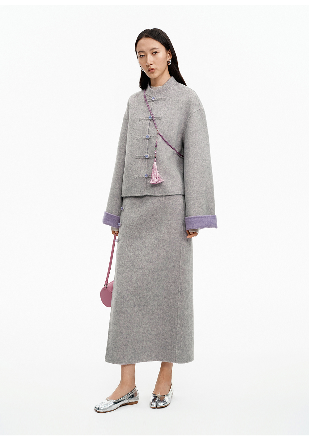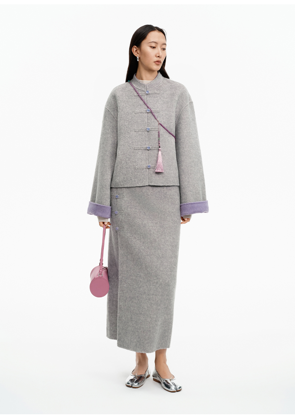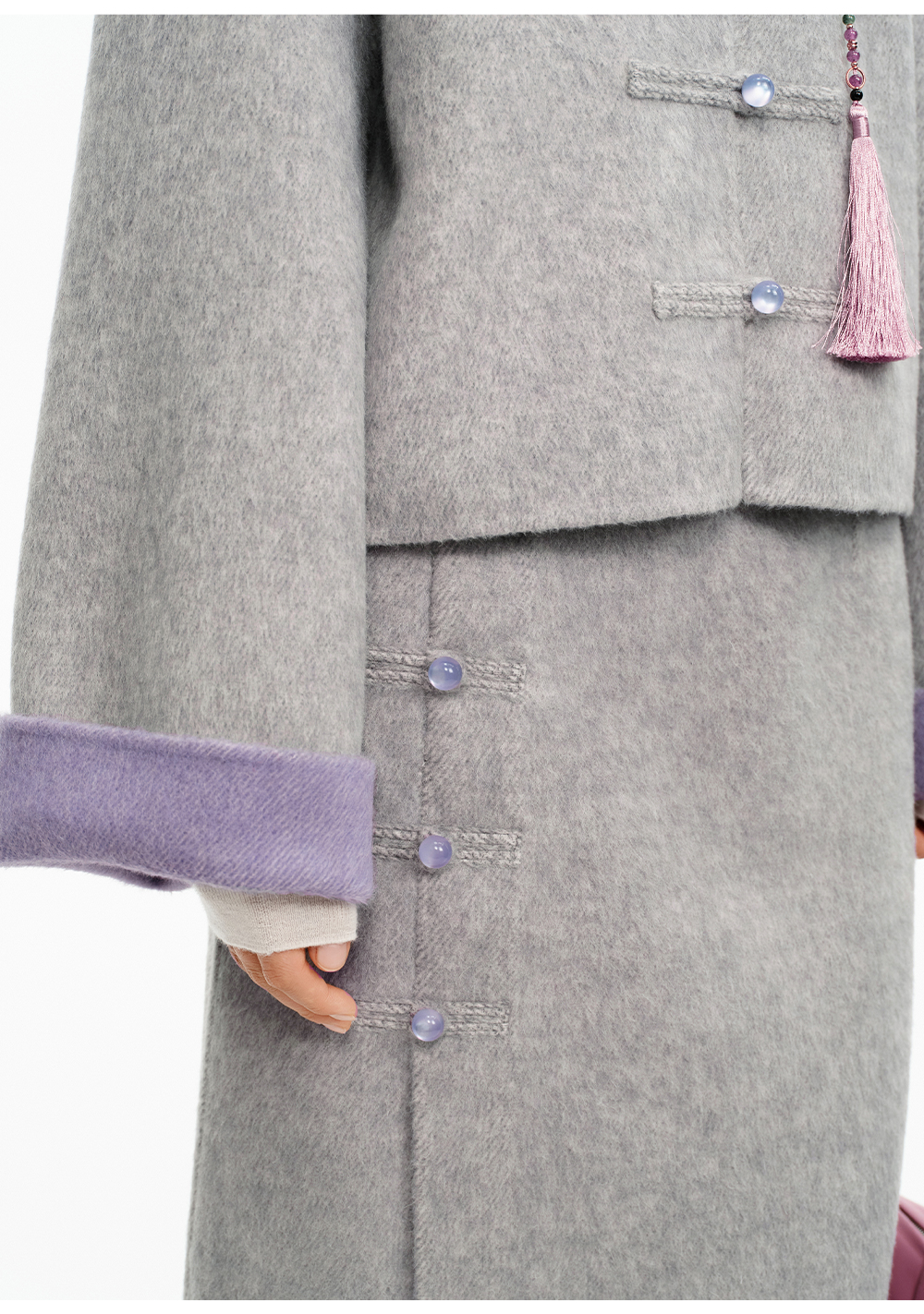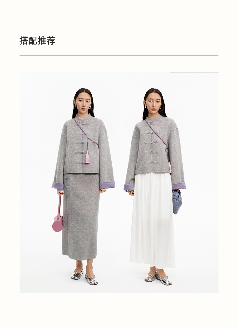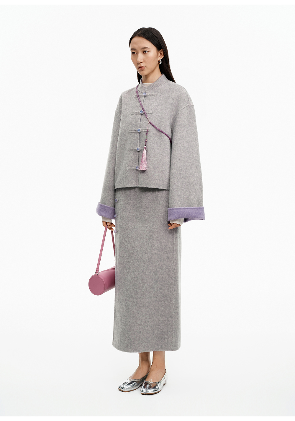 SELFWHO70支绵羊毛新中式盘扣双面呢外套女2025冬季新款撞色上衣